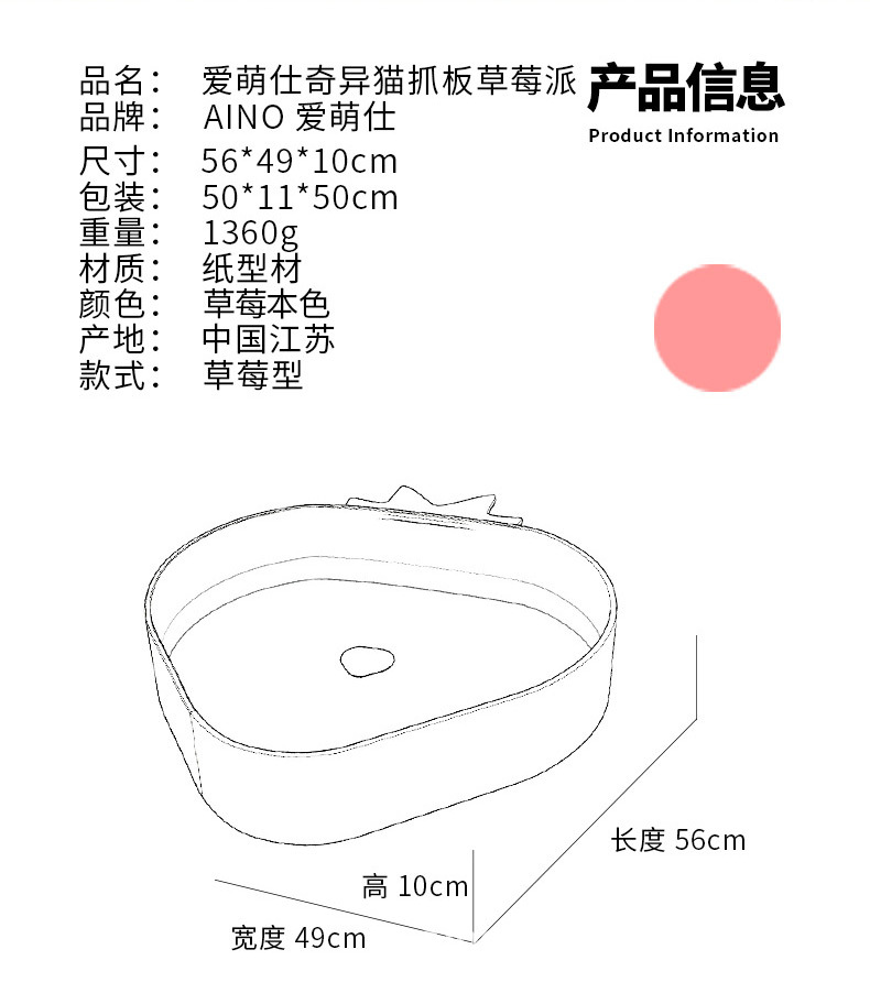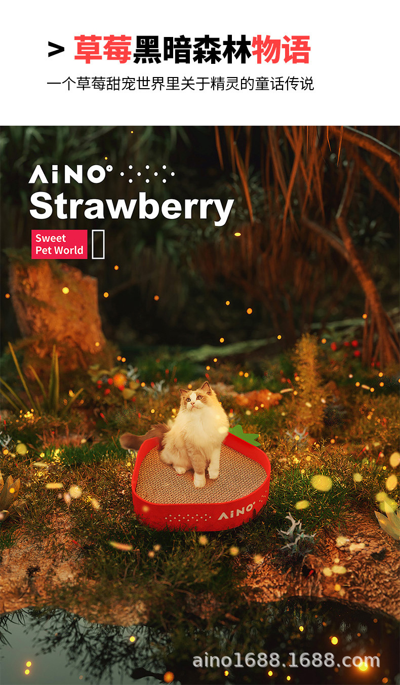 Aimoe 헤르메스 AINO 딸기 파이 고양이 스크래치 보드 양면 교체 가능한 코어 딸기 고양이 스크래치 보드 목재 섬유