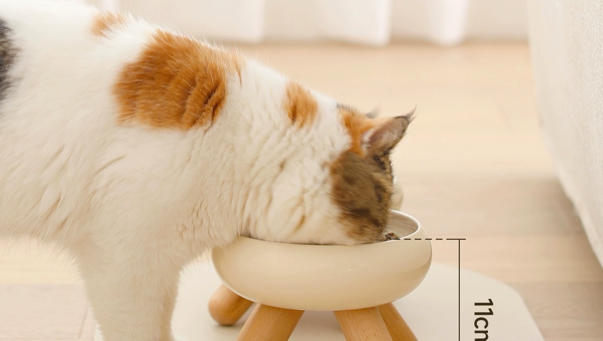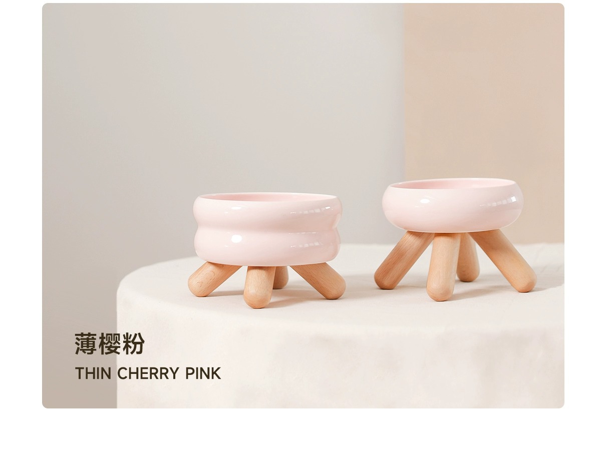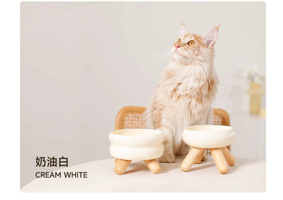 Meoof 음식 그릇 고양이 물 그릇 gulu 애완 동물 그릇 높은 발 목 보호 귀여운 세라믹 그릇 미노 애완 동물 용품