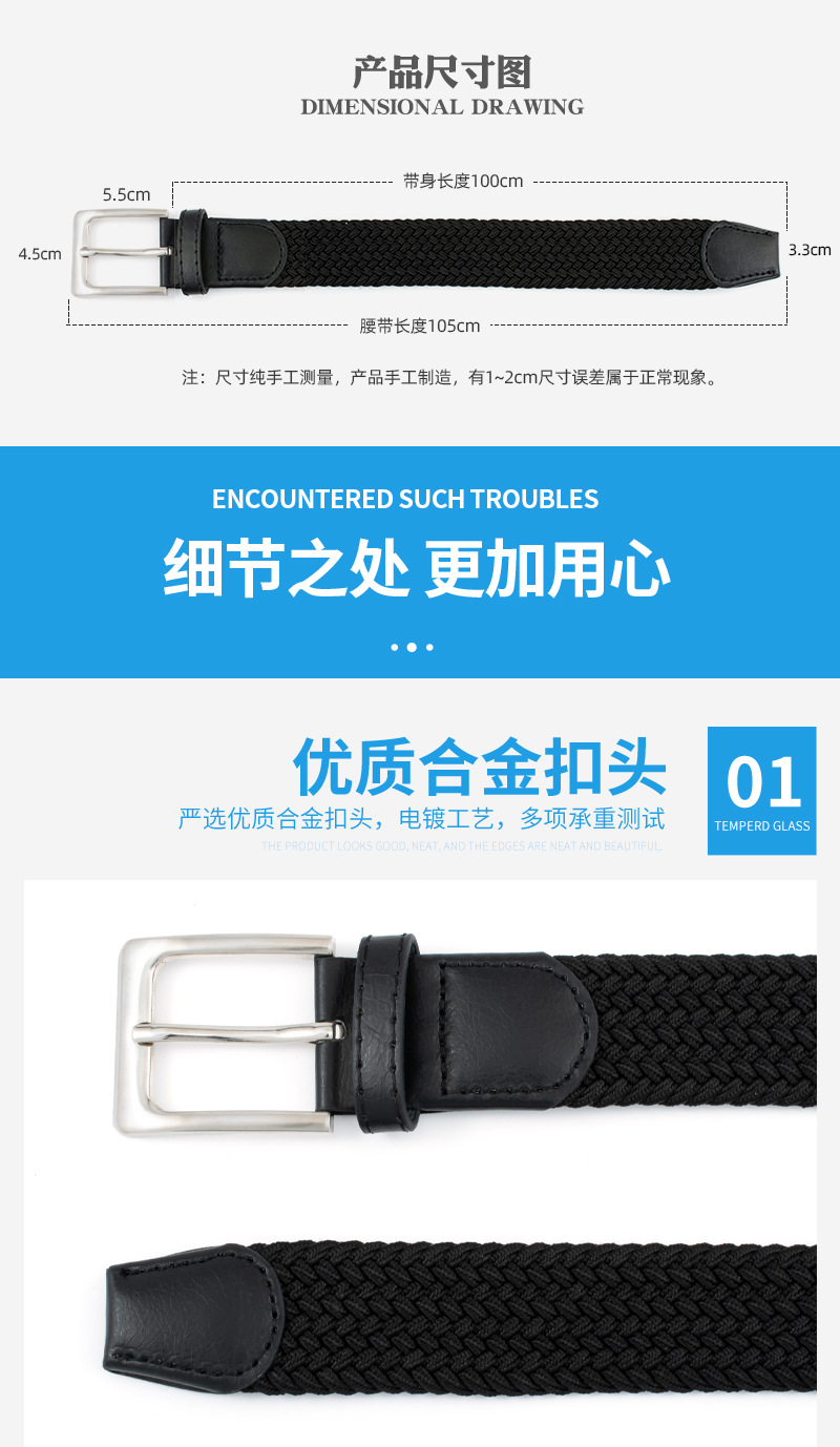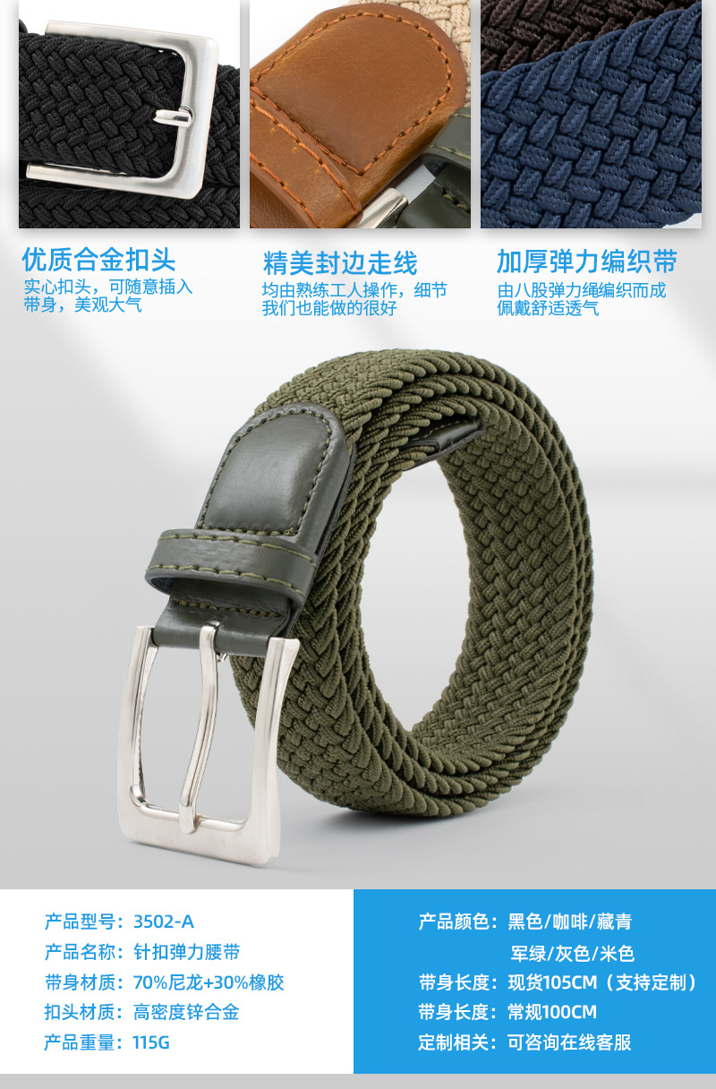 새로운 통기성 탄성 벨트 남성 및 여성 캐주얼 짠 벨트 기본 펀치 프리 핀치 버클 벨트
