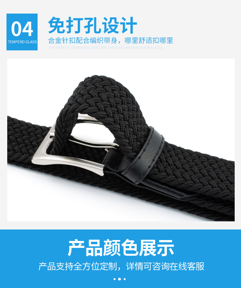 새로운 통기성 탄성 벨트 남성 및 여성 캐주얼 짠 벨트 기본 펀치 프리 핀치 버클 벨트스토어 가기