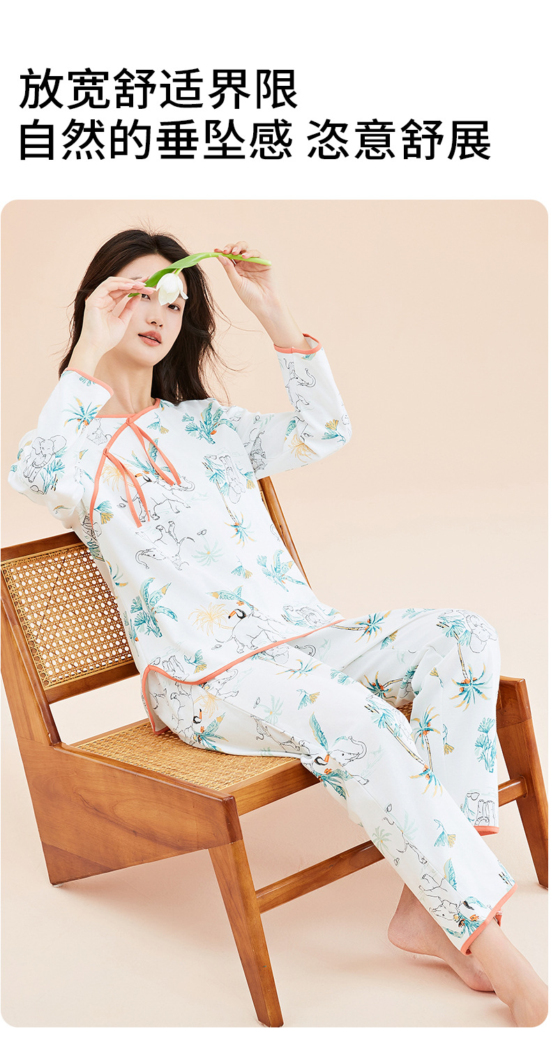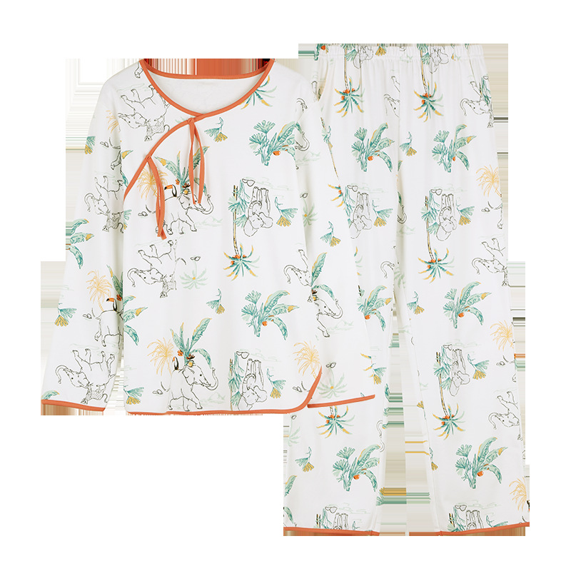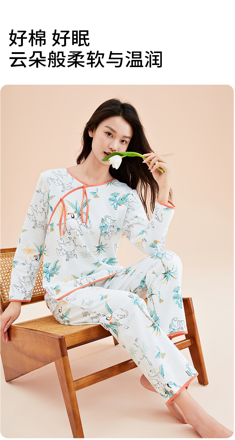 가을 2023 신상품 여성용 8 점 슬리브 잠옷 복고풍 스타일 크루넥 피부 친화적 인 코끼리 겉옷 가정복 여성스토어 가기