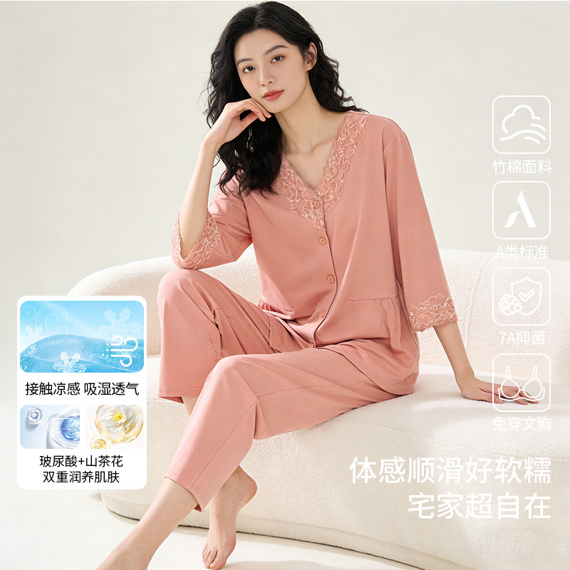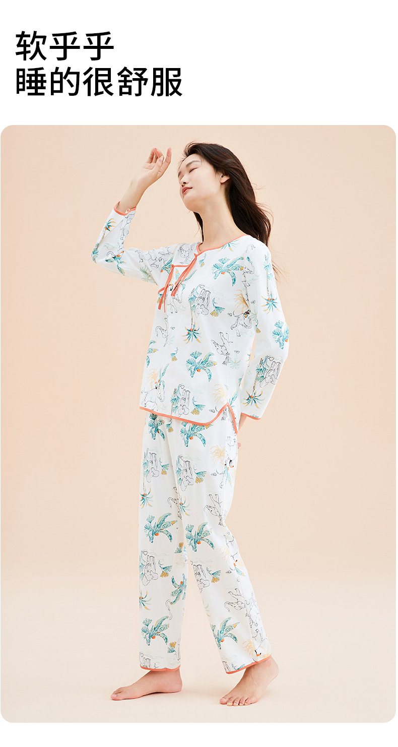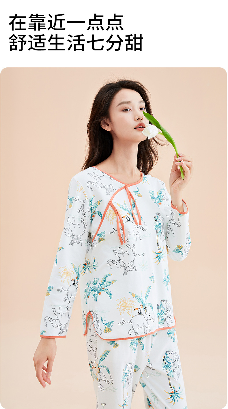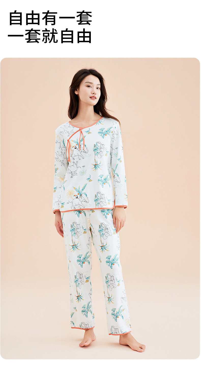 가을 2023 신상품 여성용 8 점 슬리브 잠옷 복고풍 스타일 크루넥 피부 친화적 인 코끼리 겉옷 가정복 여성스토어 가기