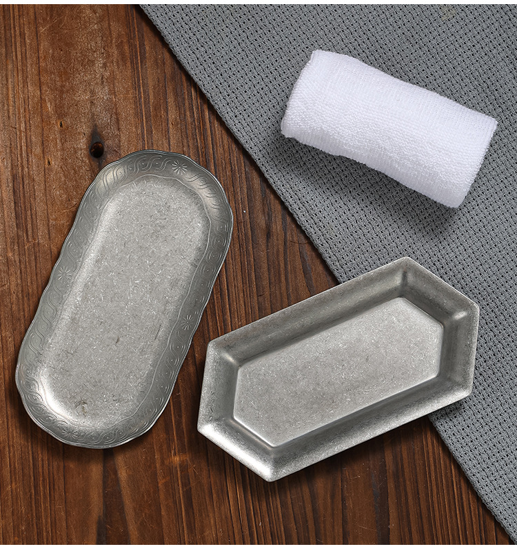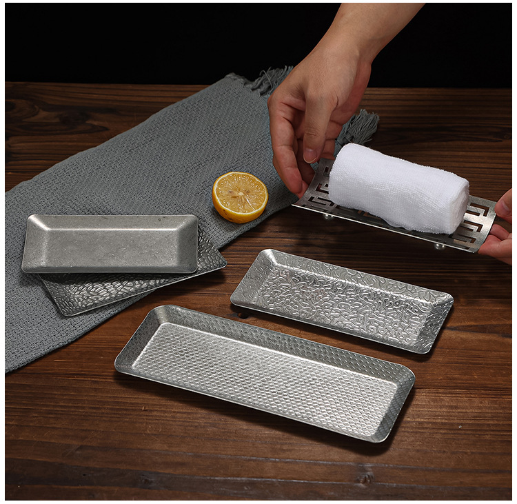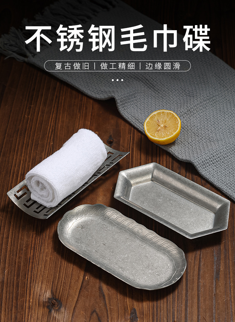 빈티지 스테인레스 스틸 타월 트레이 고민 호텔 레스토랑 타월 트레이 스낵 트레이 바베큐 트레이 디저트 트레이 빈티지 트레이