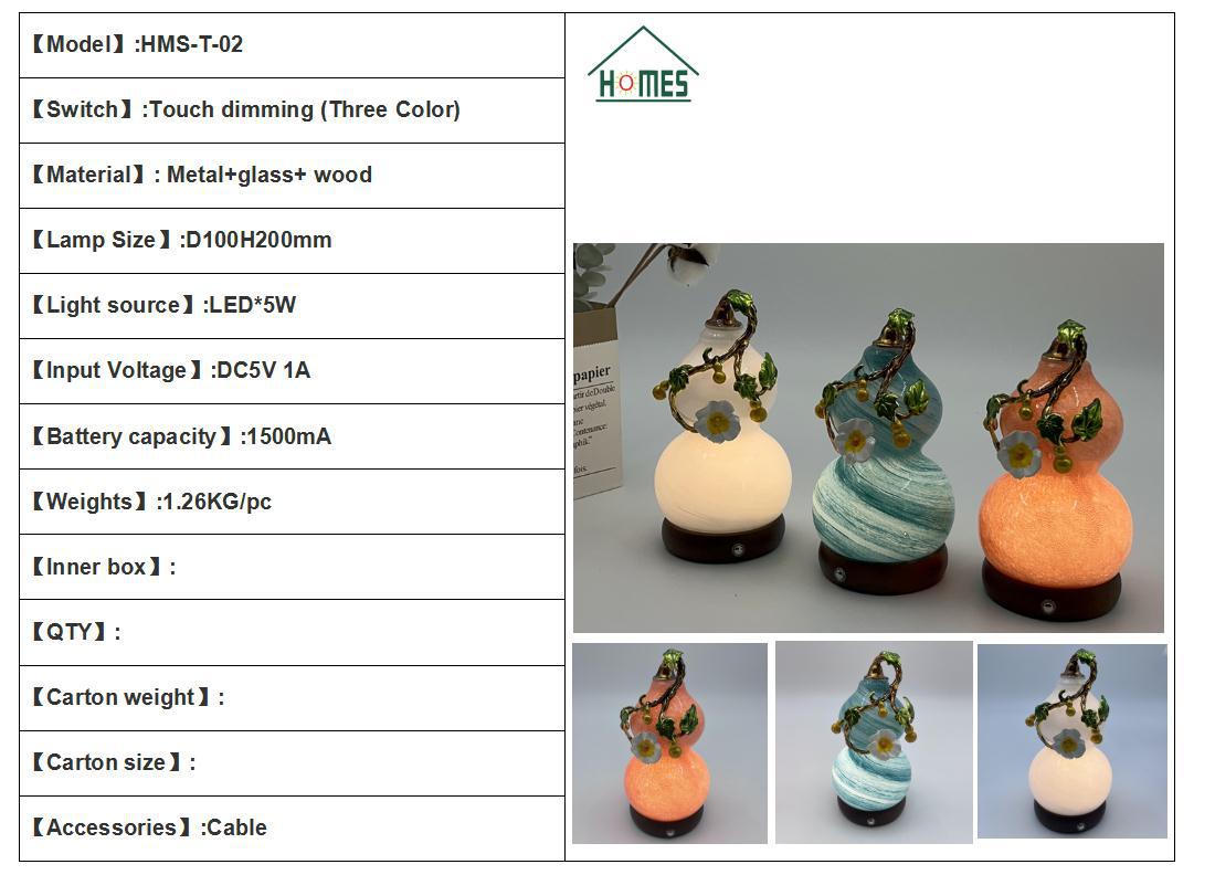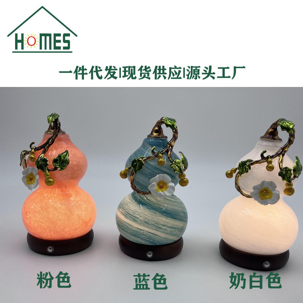 복과 풍요를 기원하는 장식품 유리 공예품 호리병 모양 야간등 터치식 소형 테이블 램프 선물용 야간등