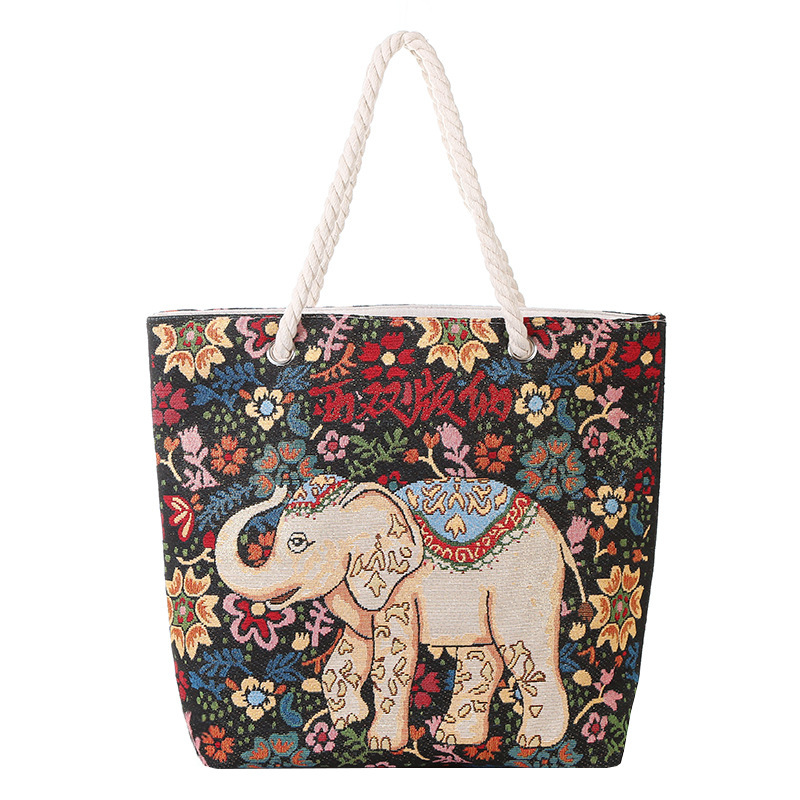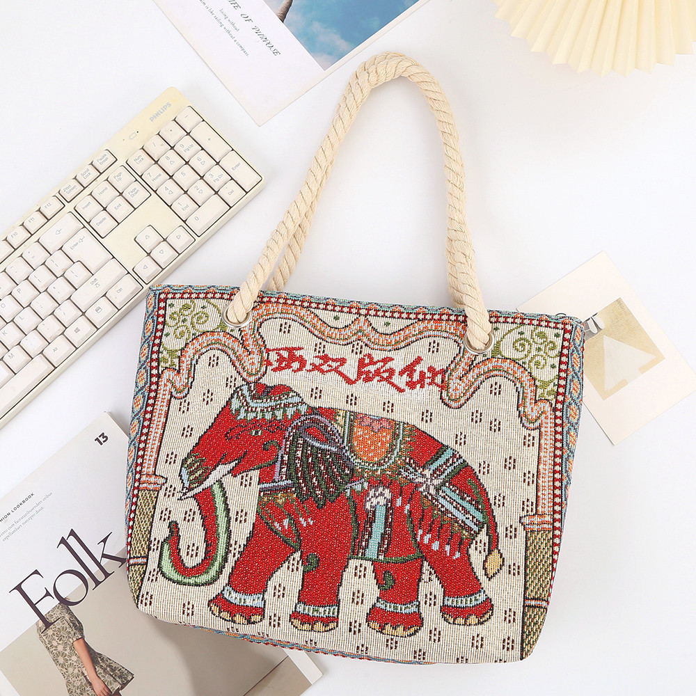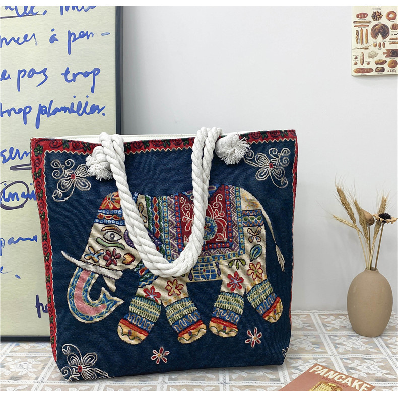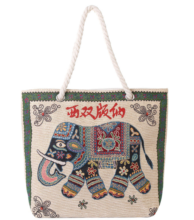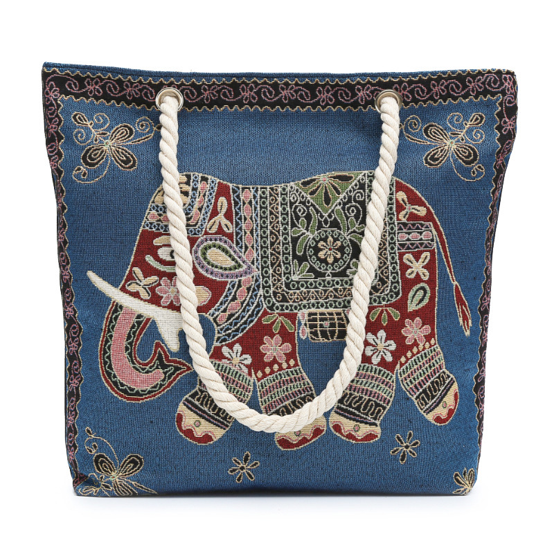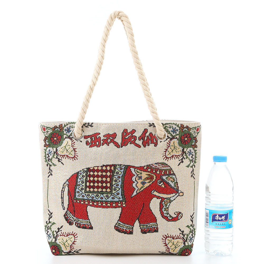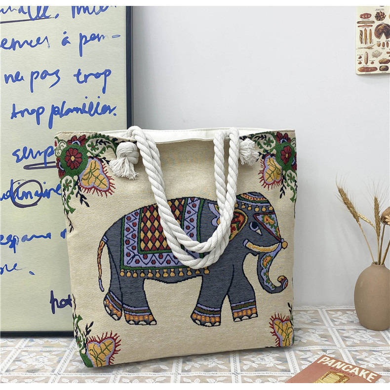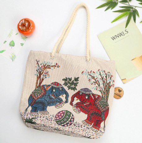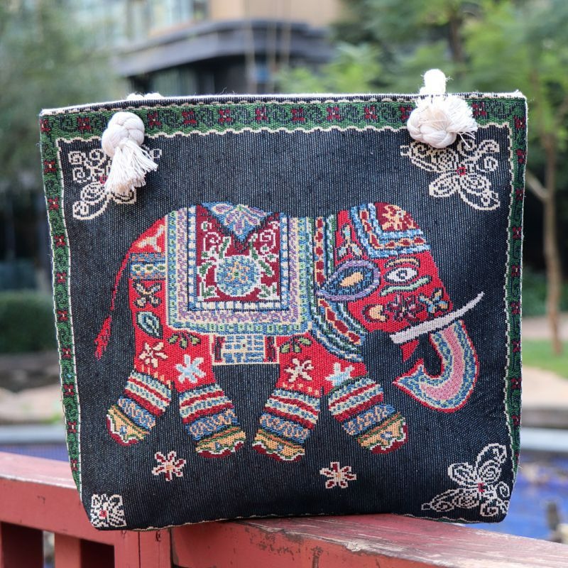 민족 스타일 중간 캔버스 가방 태국 양면 자수 코끼리 어깨 가방 여성 대용량 관광 명소 가방스토어 가기