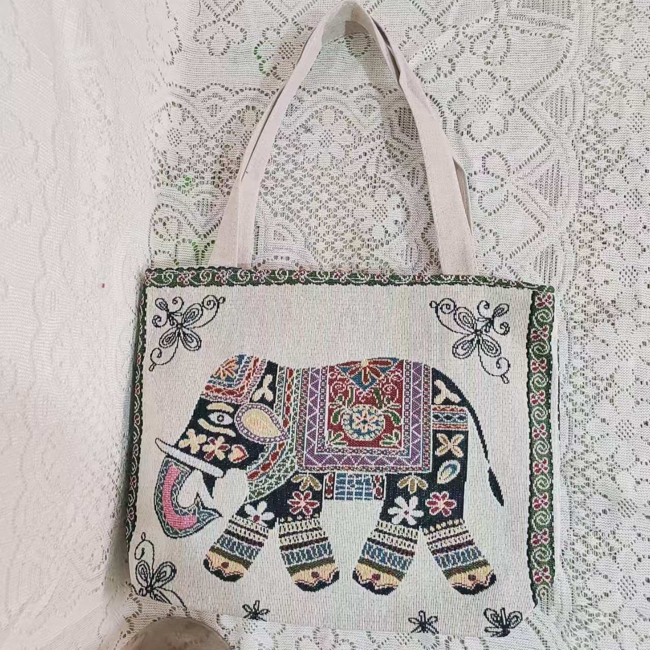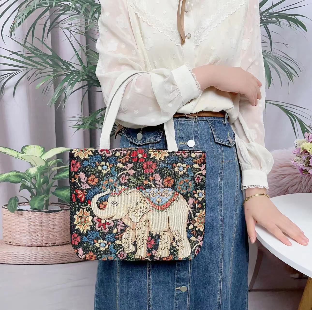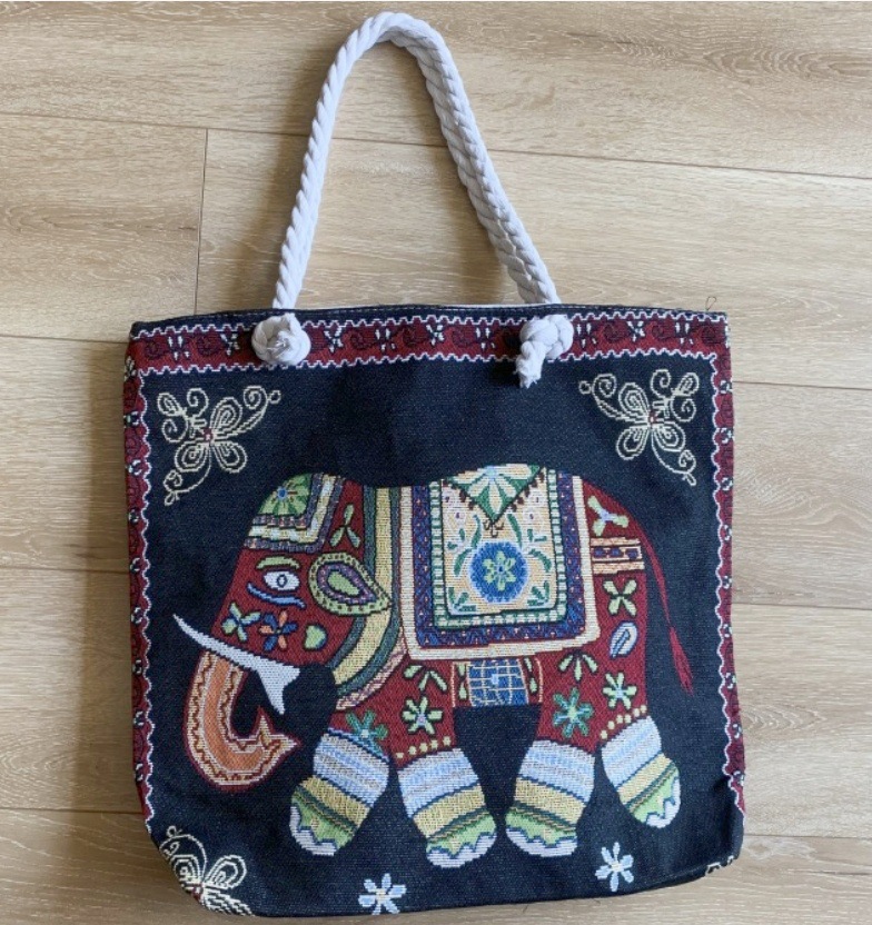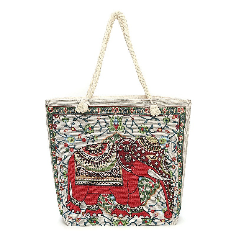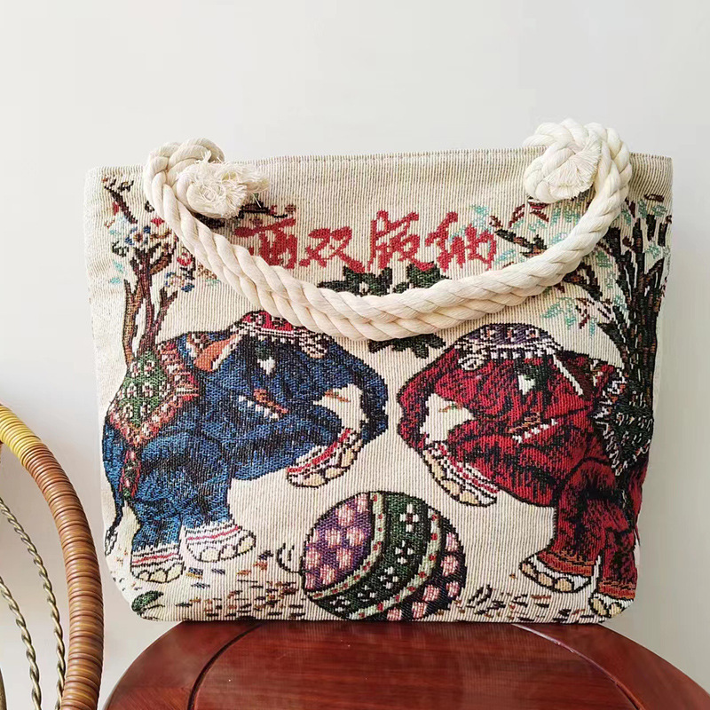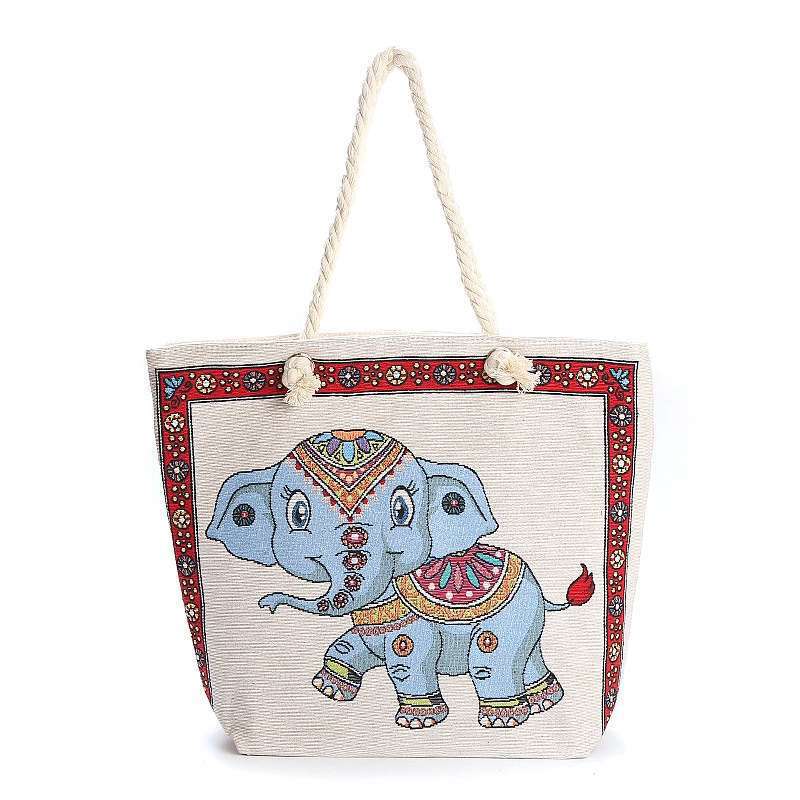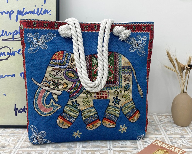 민족 스타일 중간 캔버스 가방 태국 양면 자수 코끼리 어깨 가방 여성 대용량 관광 명소 가방스토어 가기