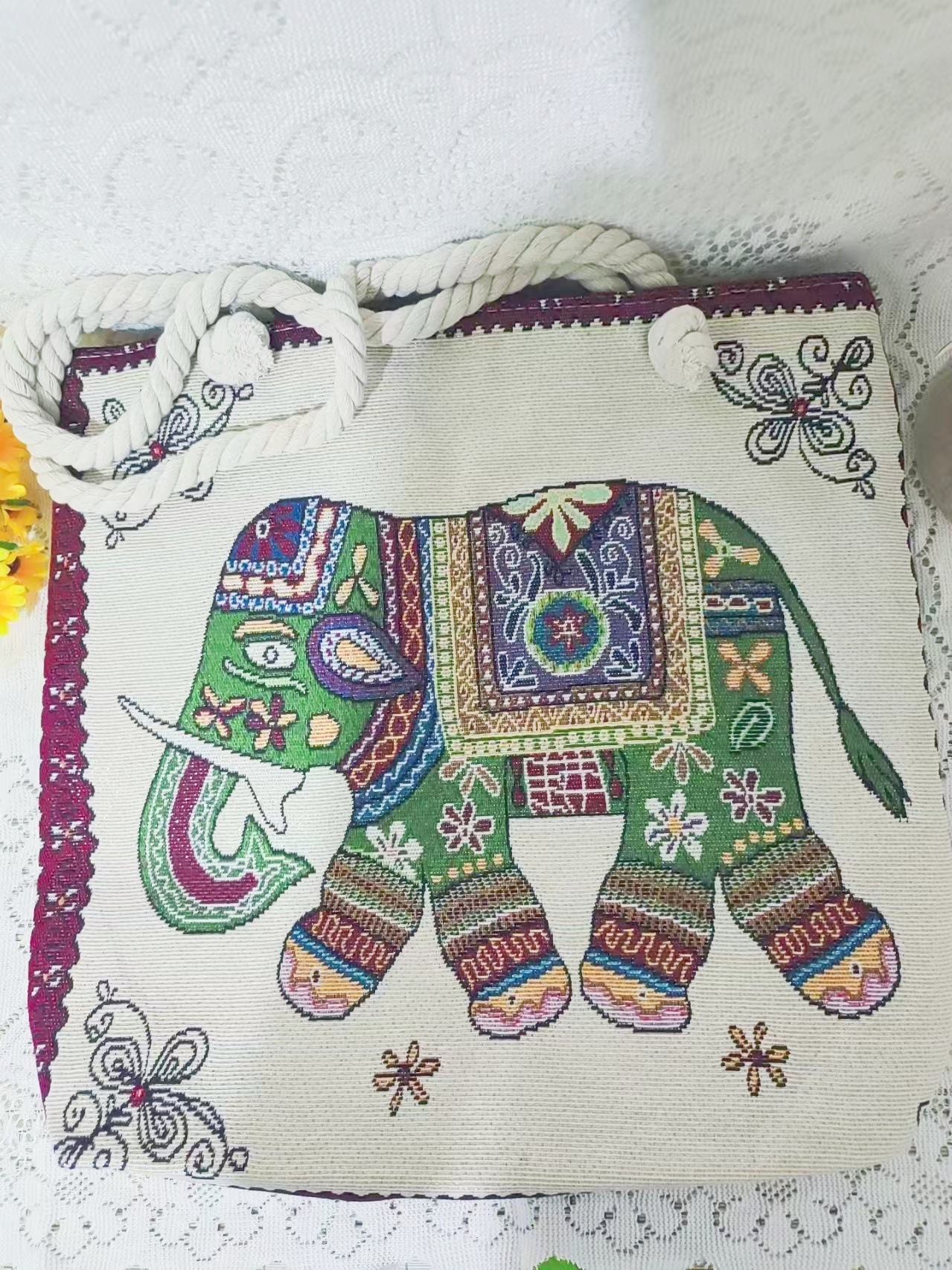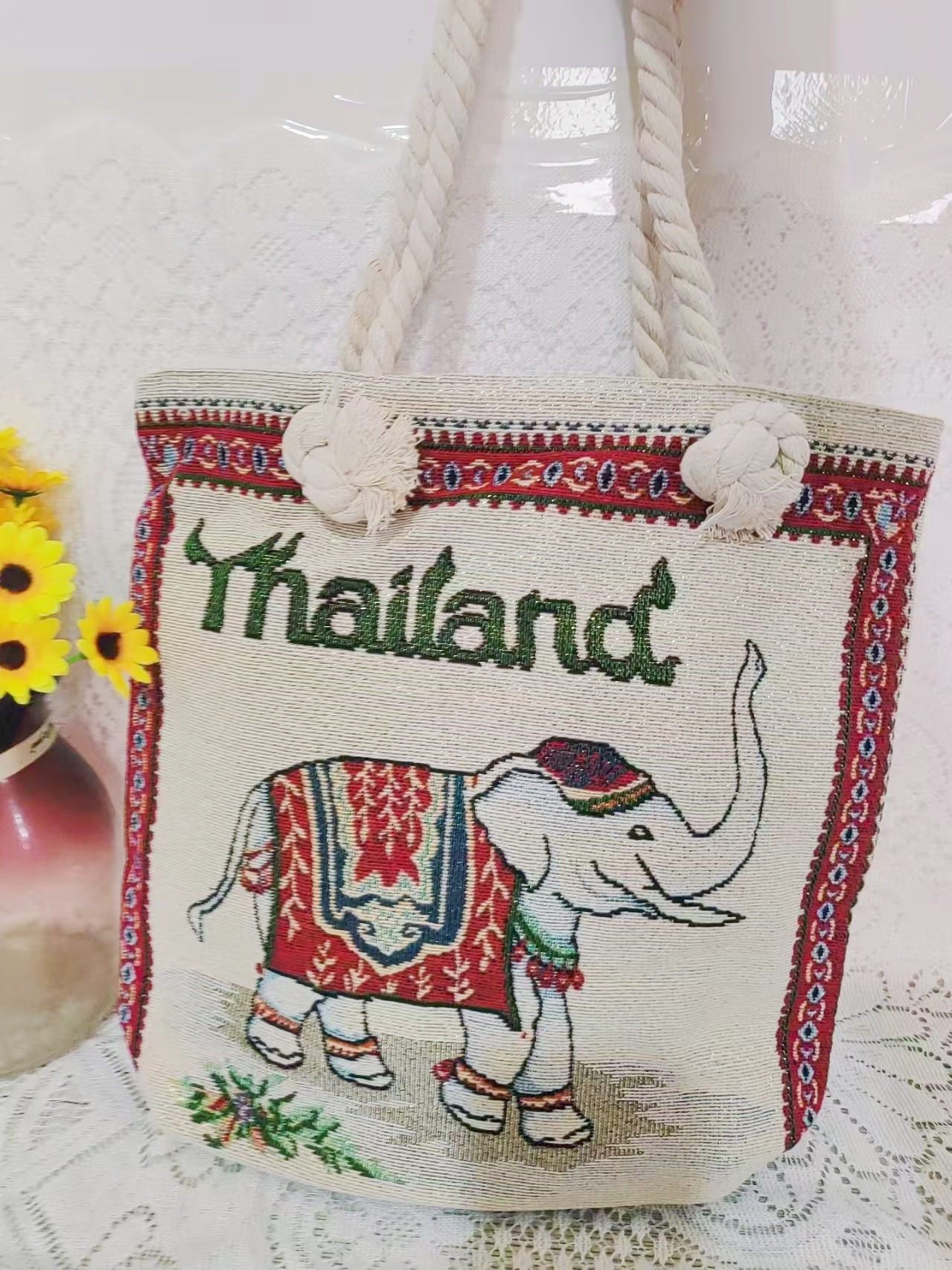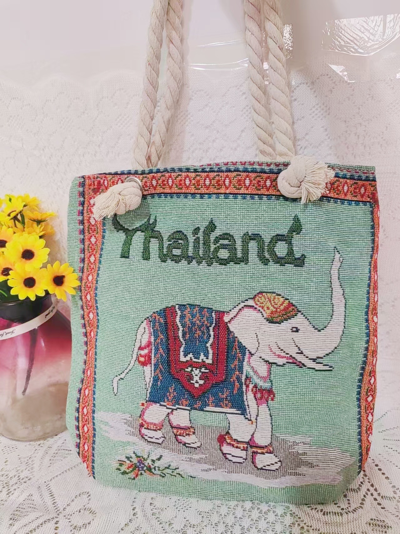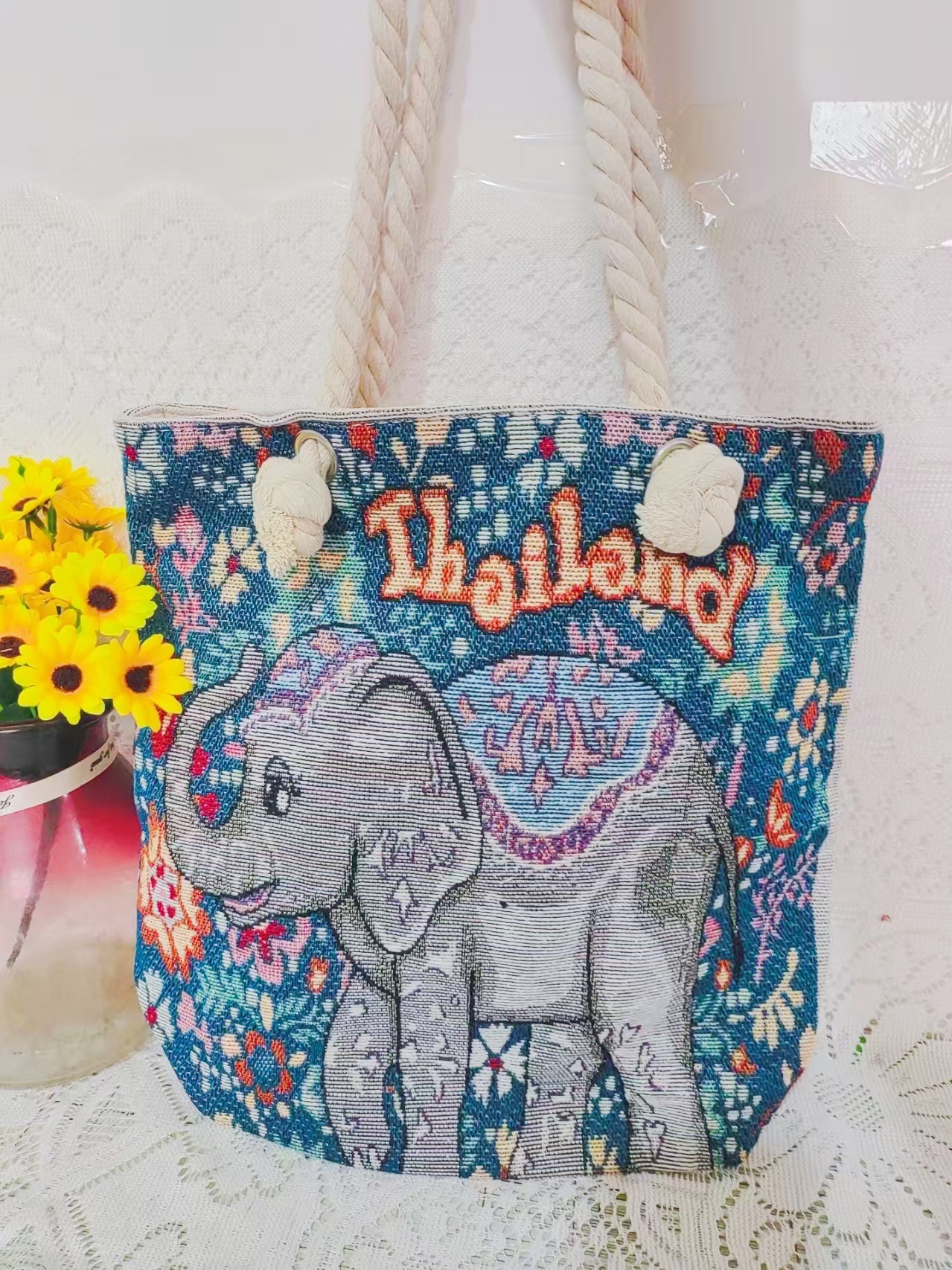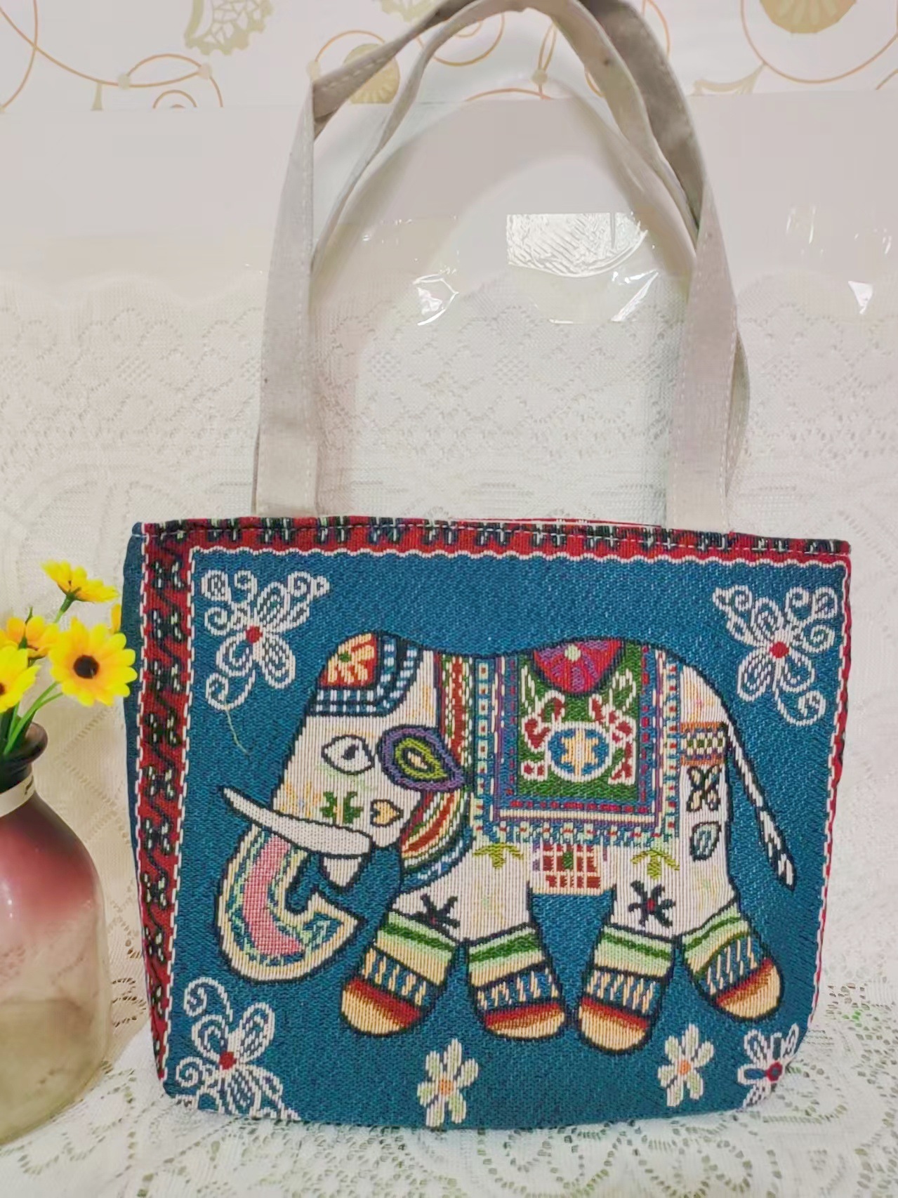 민족 스타일 중간 캔버스 가방 태국 양면 자수 코끼리 어깨 가방 여성 대용량 관광 명소 가방스토어 가기