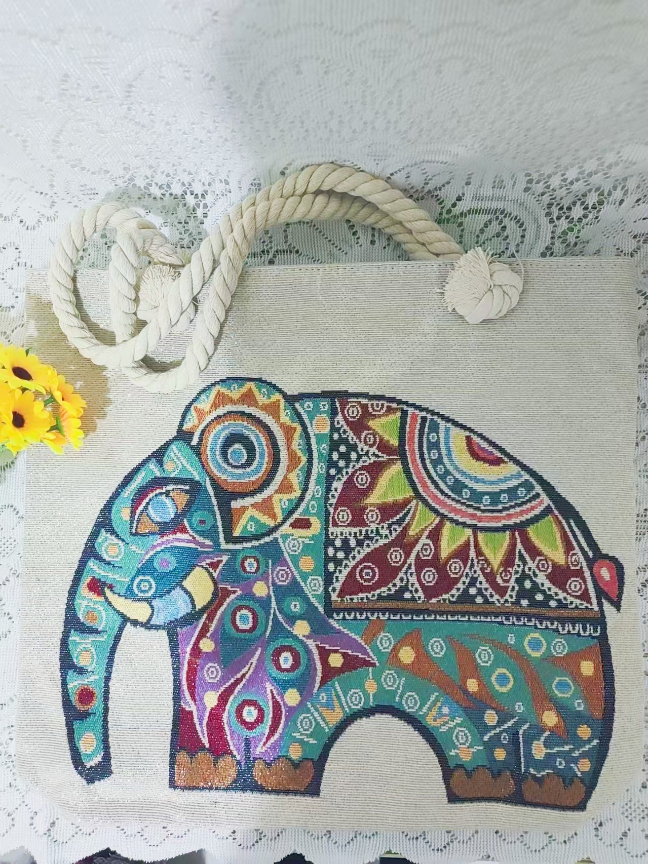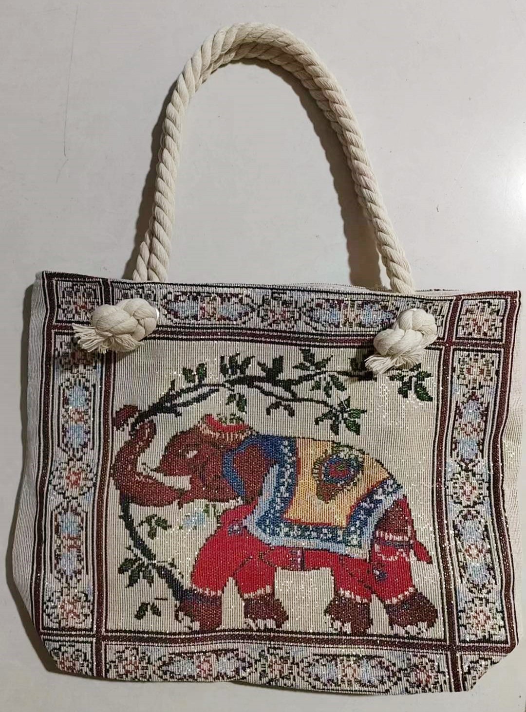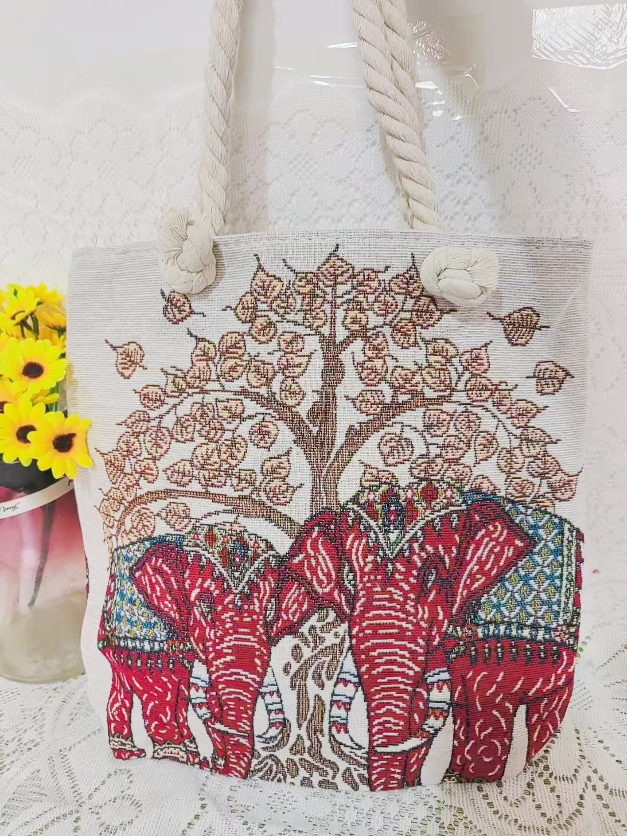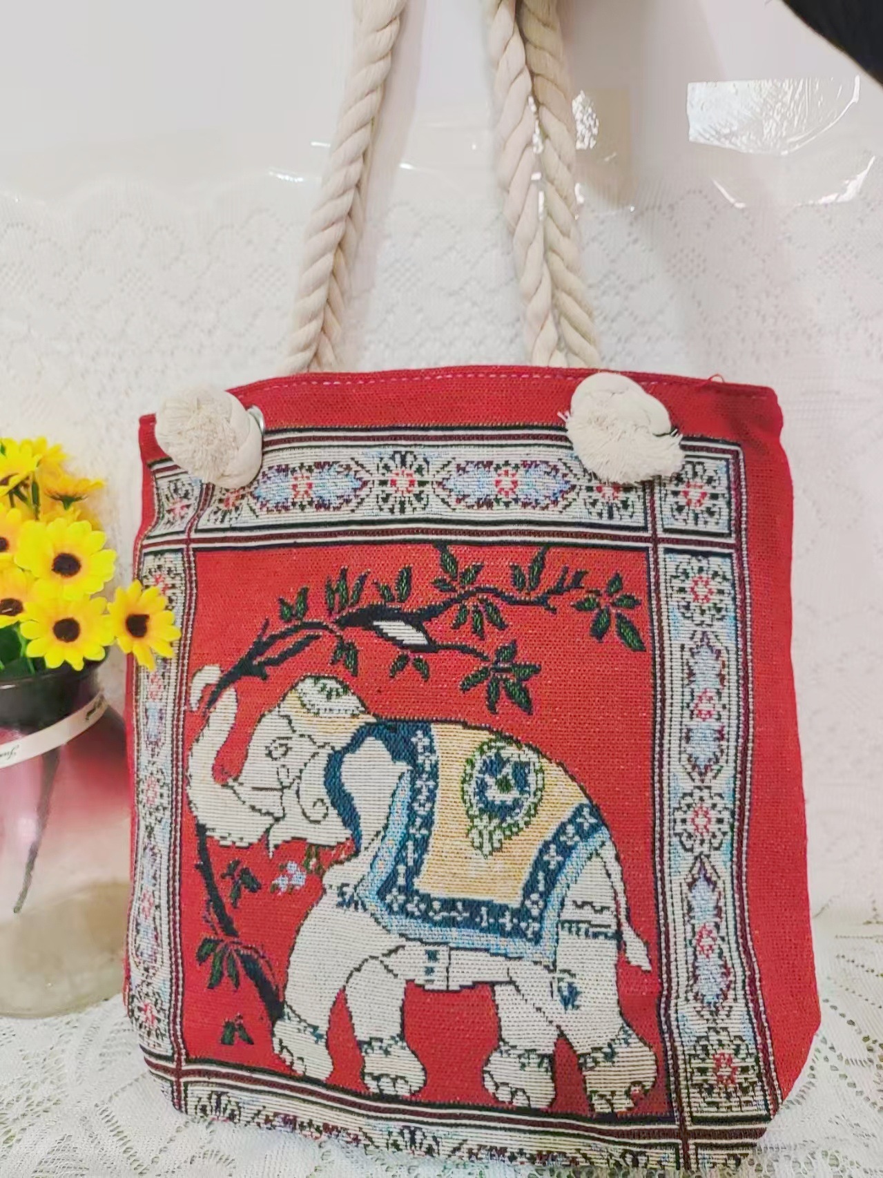 민족 스타일 중간 캔버스 가방 태국 양면 자수 코끼리 어깨 가방 여성 대용량 관광 명소 가방스토어 가기
