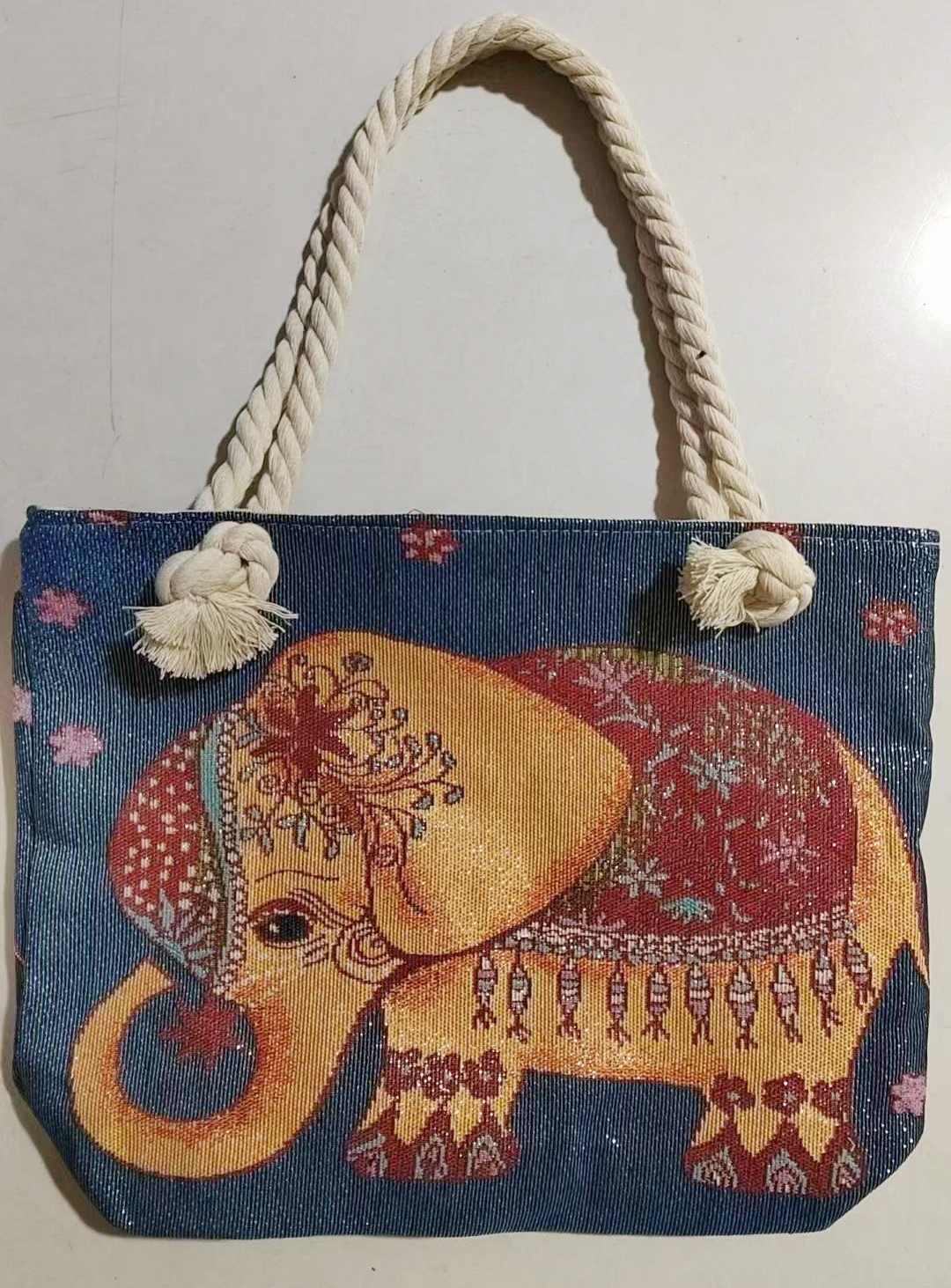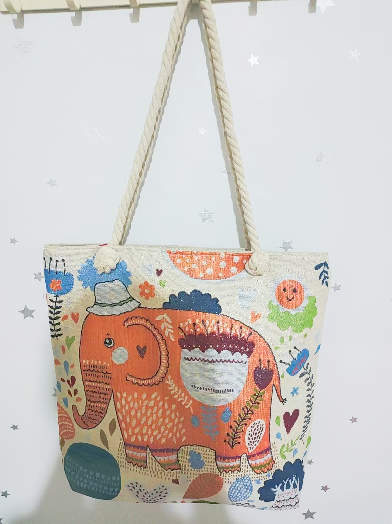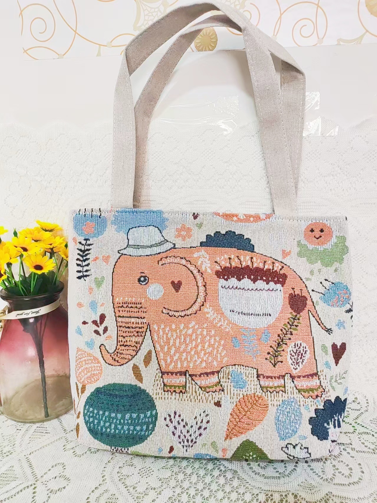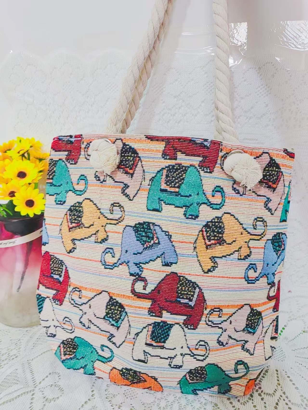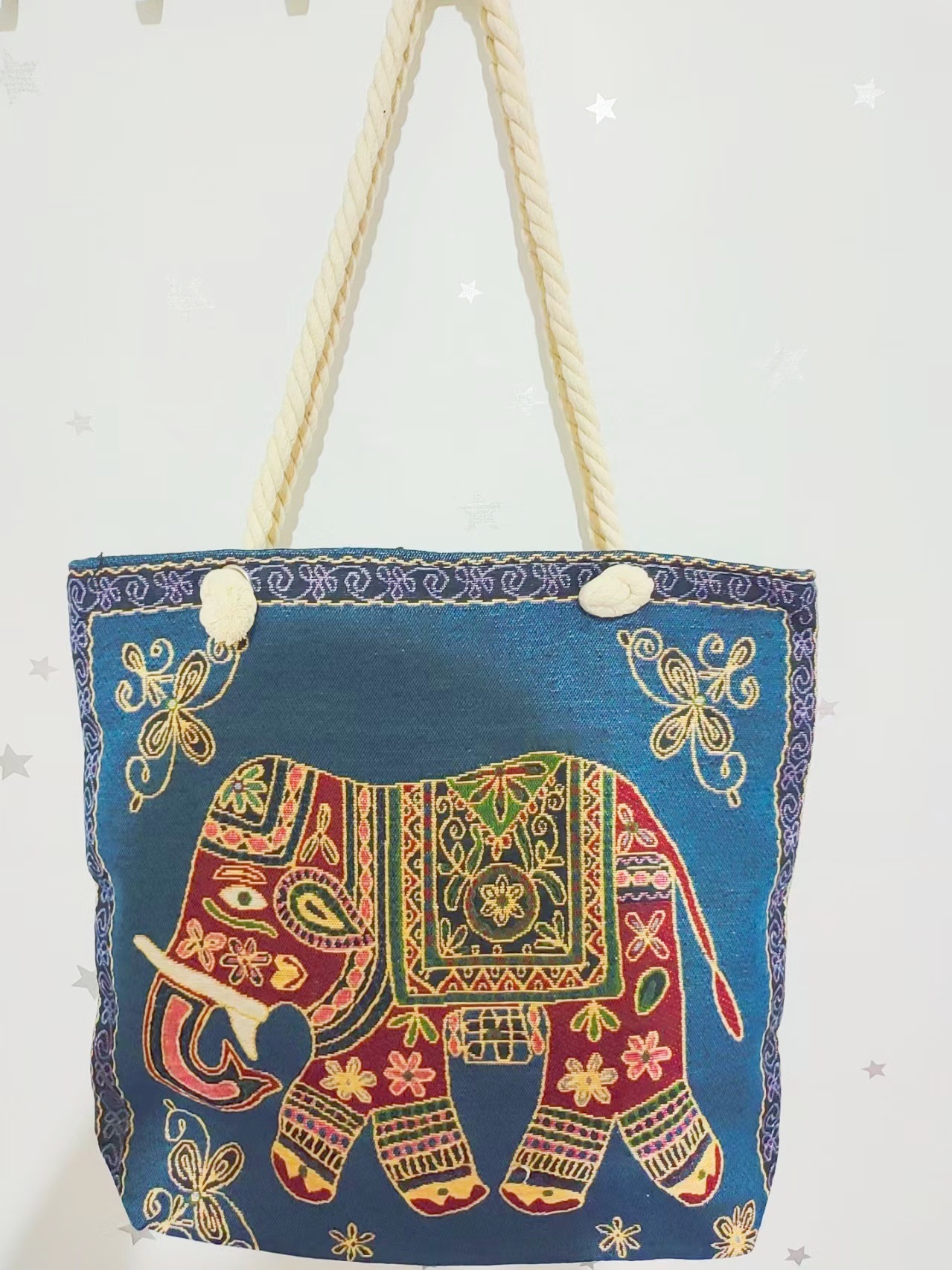 민족 스타일 중간 캔버스 가방 태국 양면 자수 코끼리 어깨 가방 여성 대용량 관광 명소 가방스토어 가기