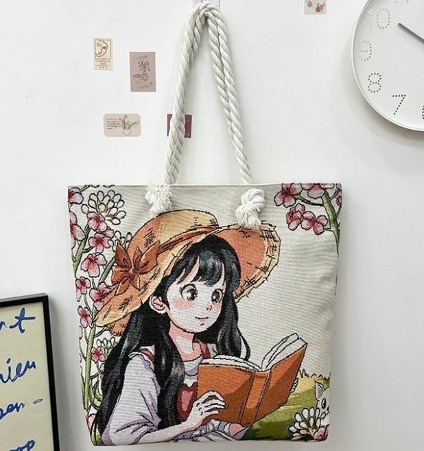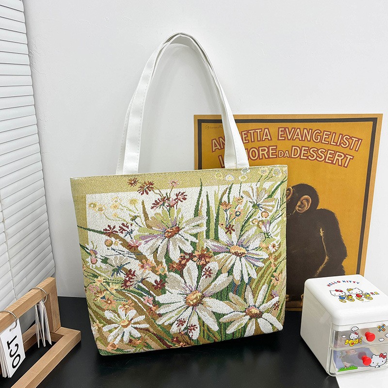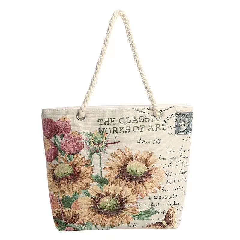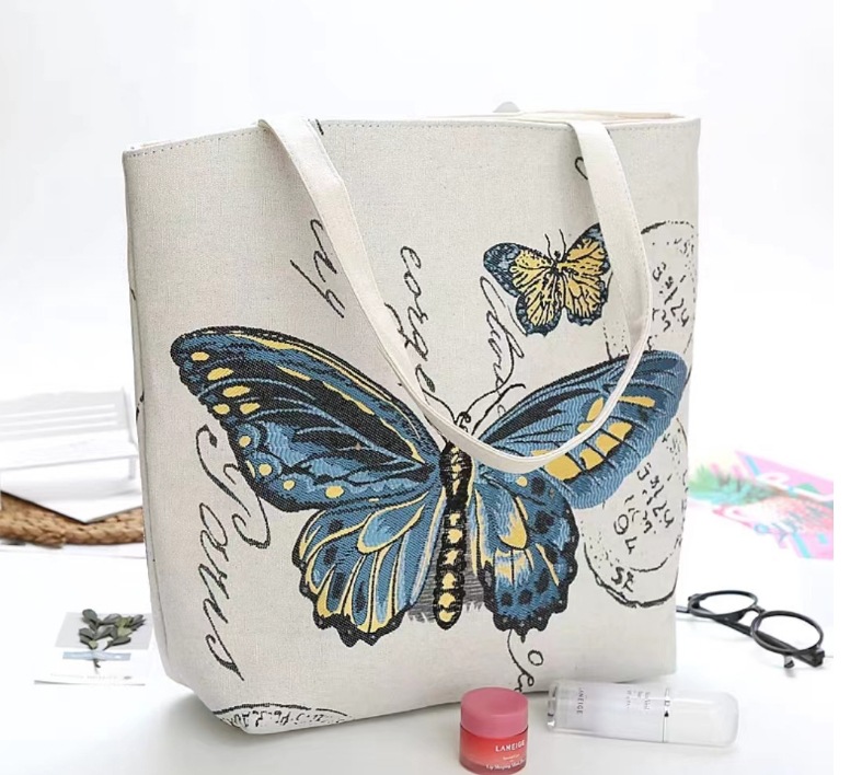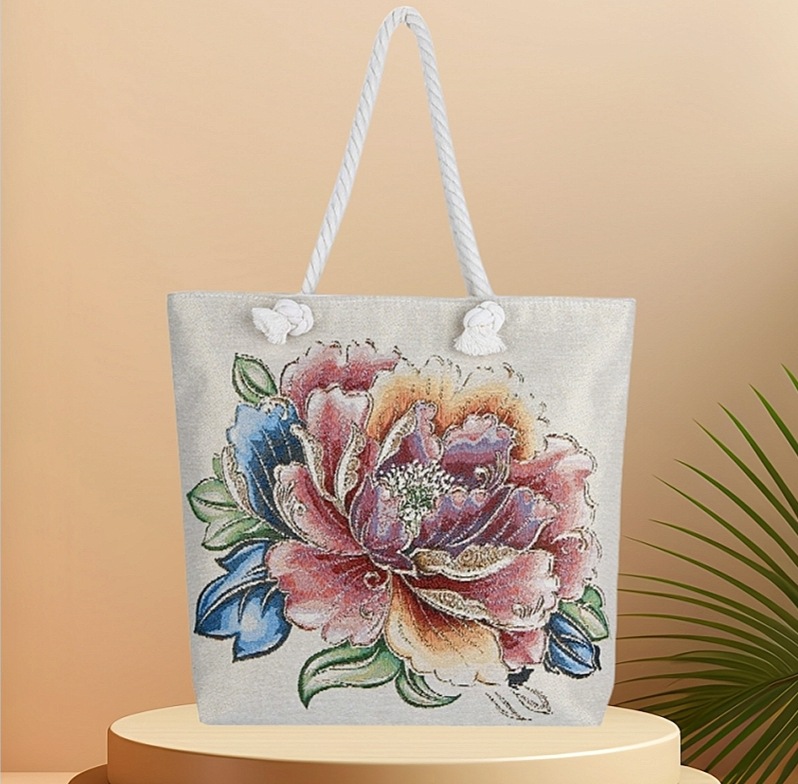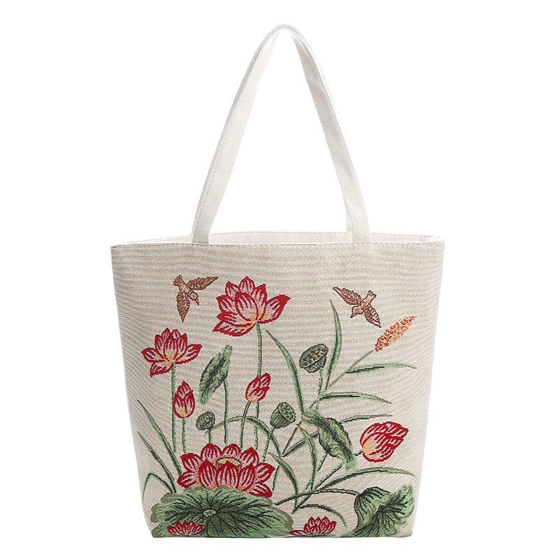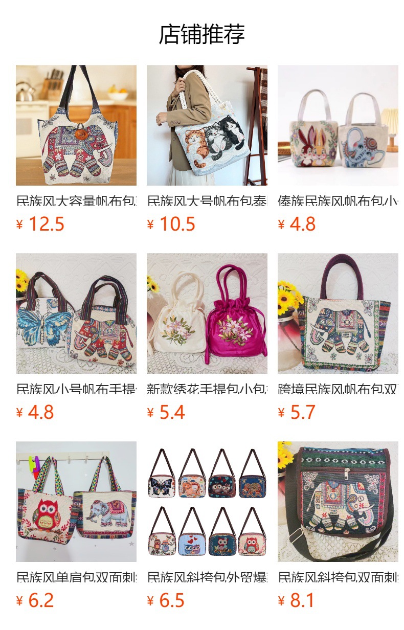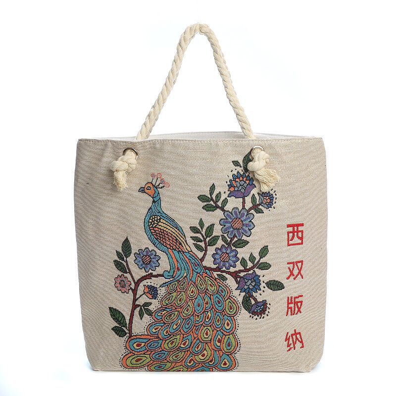 民族风中号帆布包,大容量双面刺绣单肩包