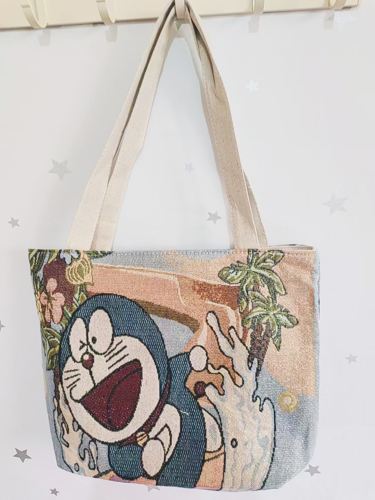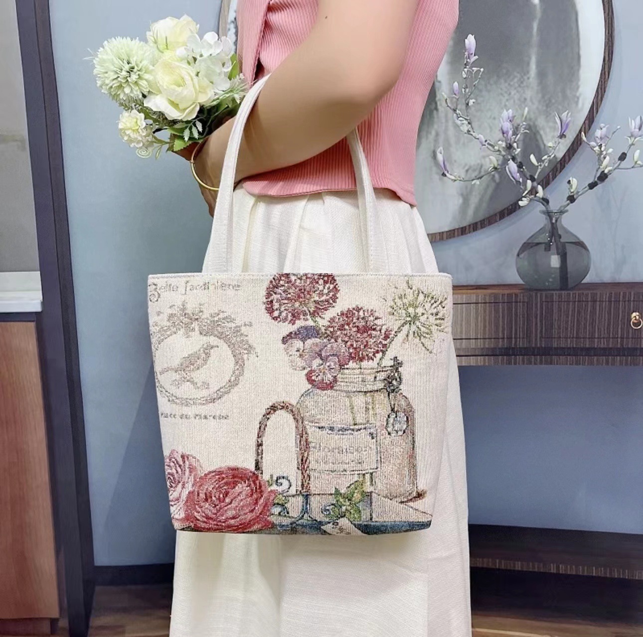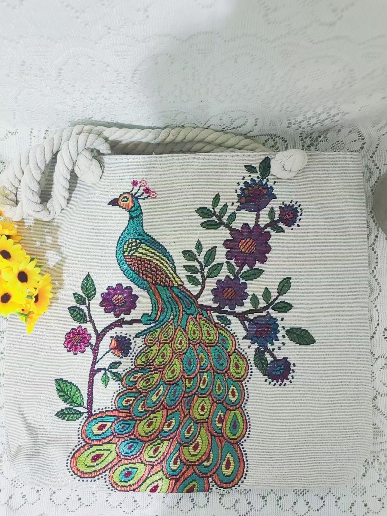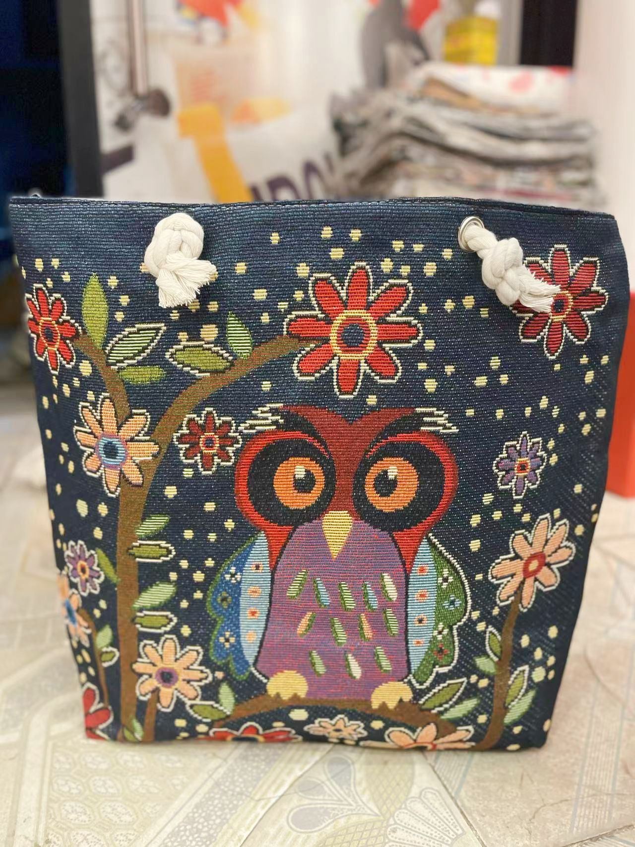 民族风中号帆布包,大容量双面刺绣单肩包
