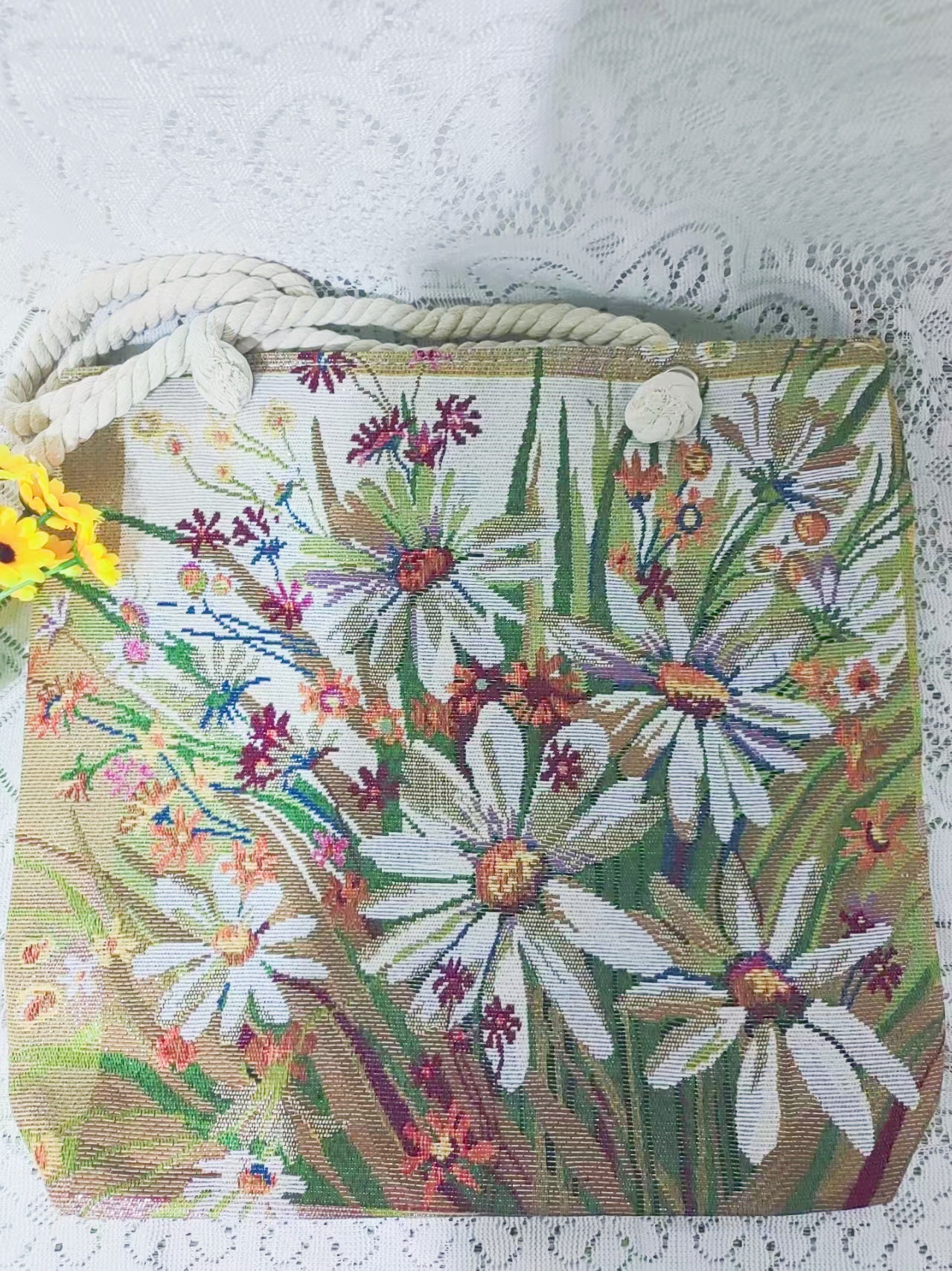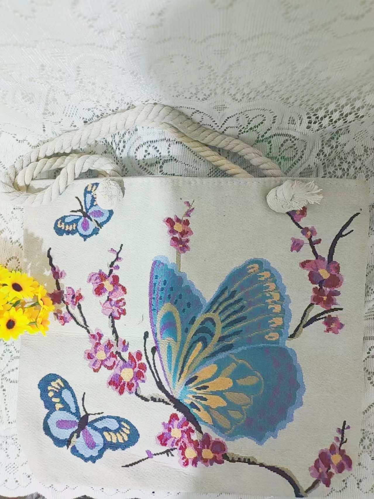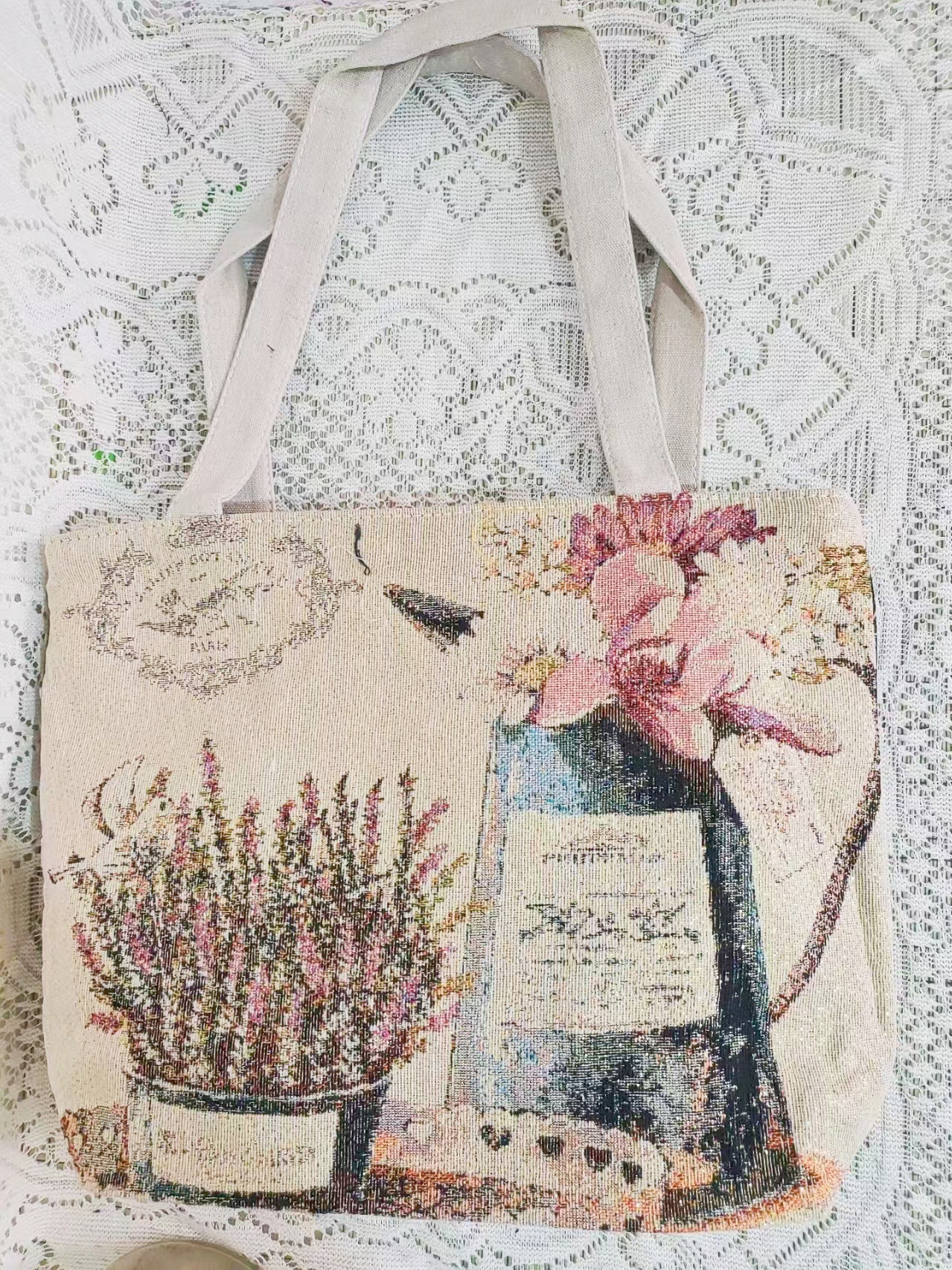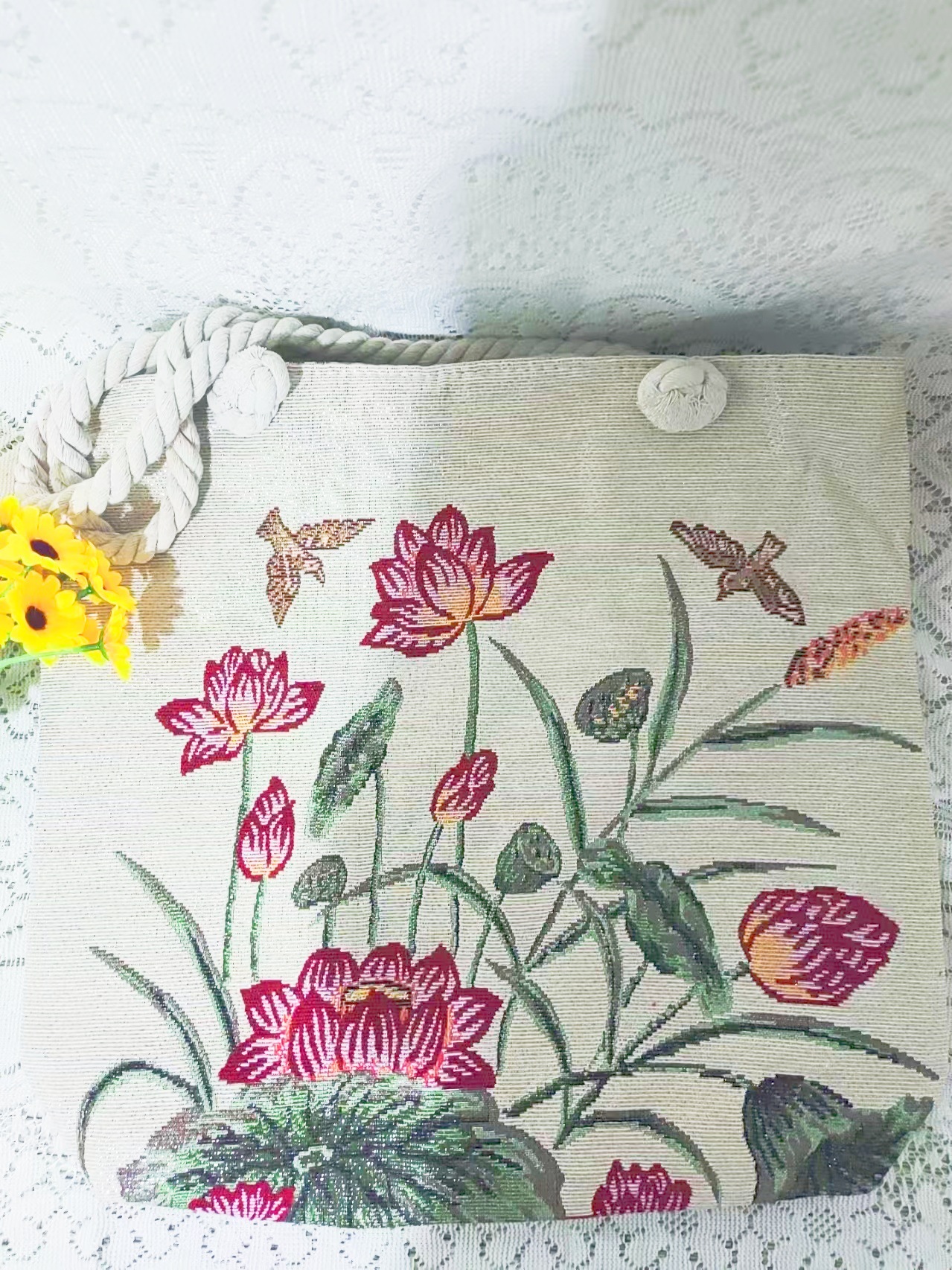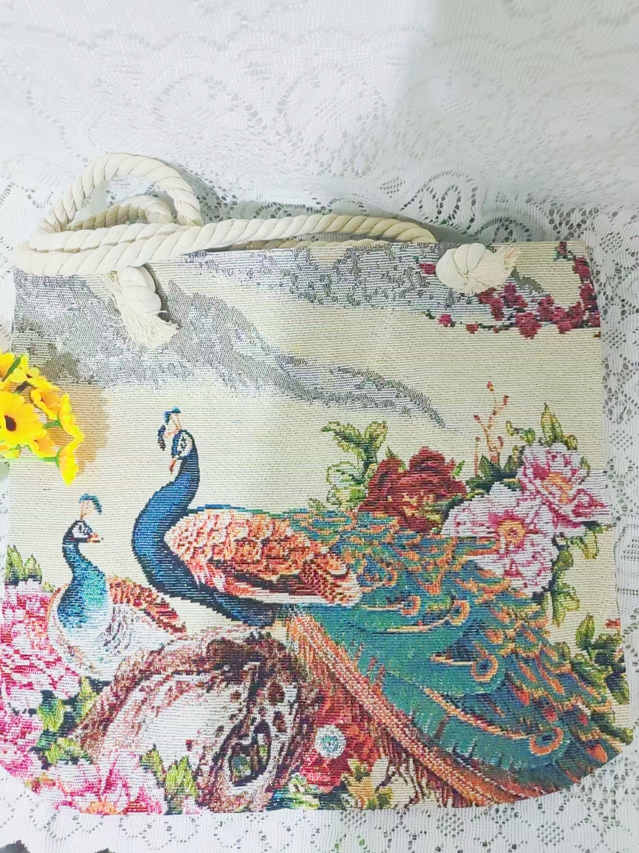 民族风中号帆布包,大容量双面刺绣单肩包