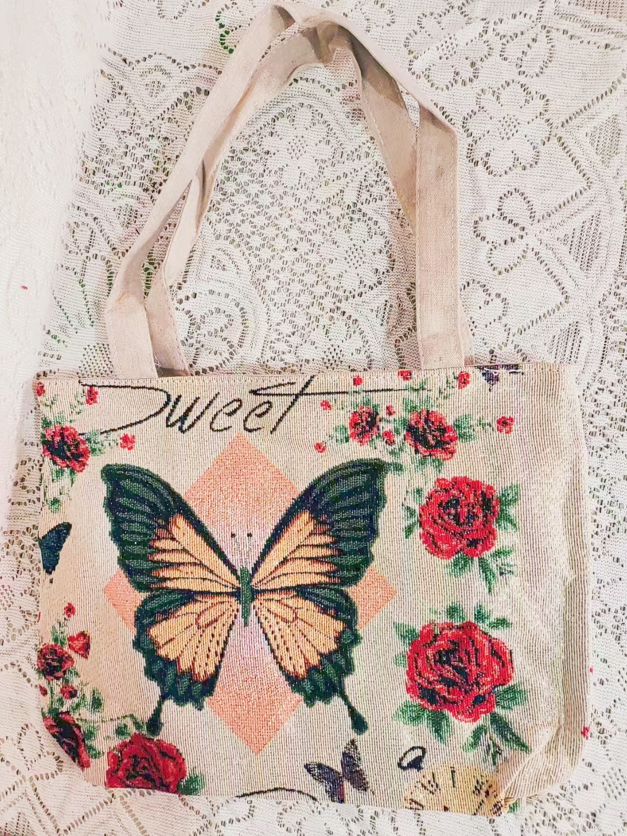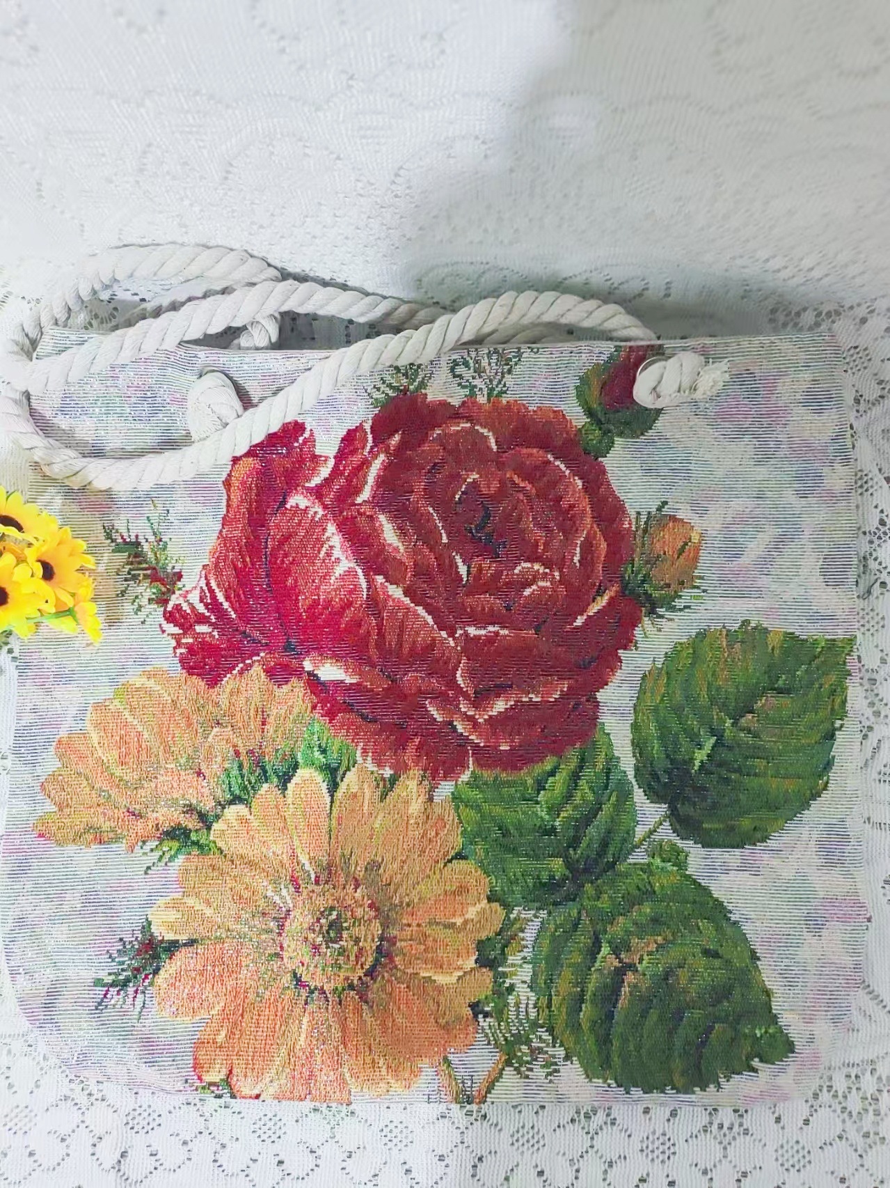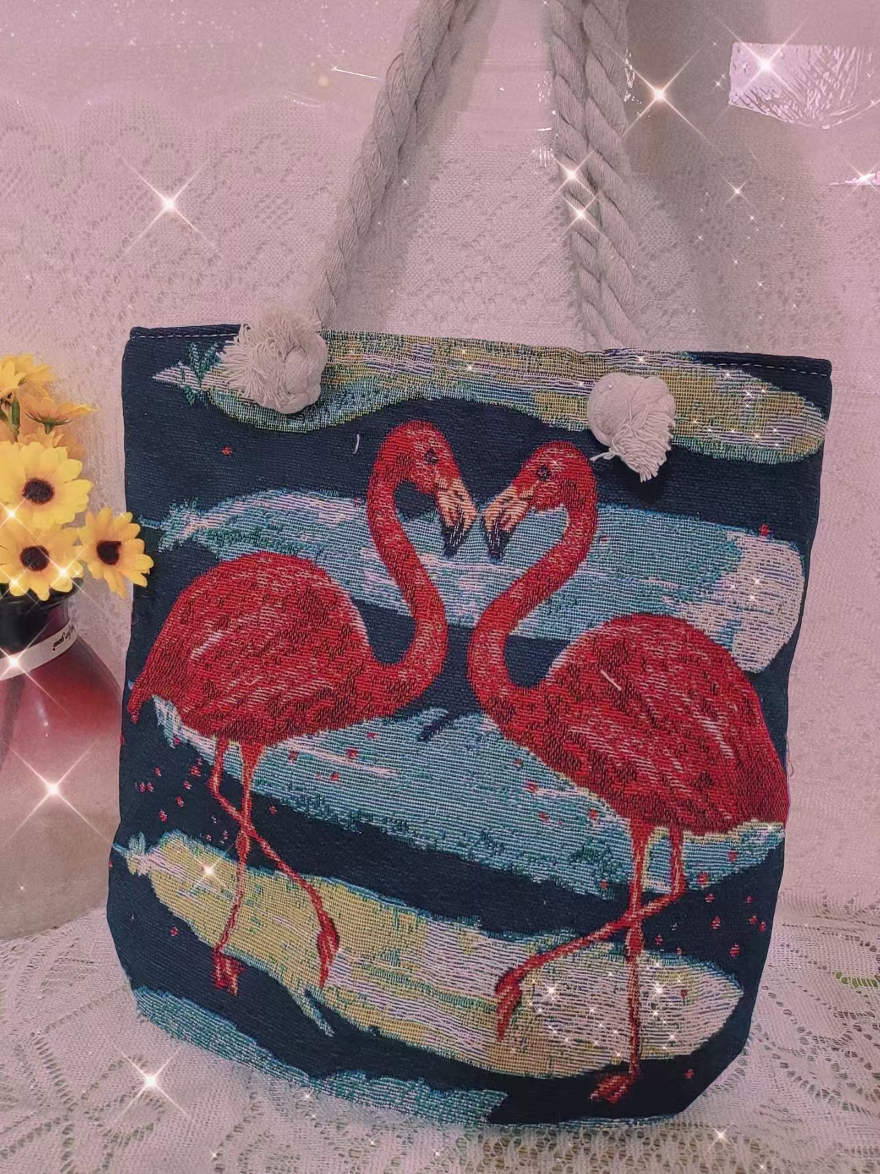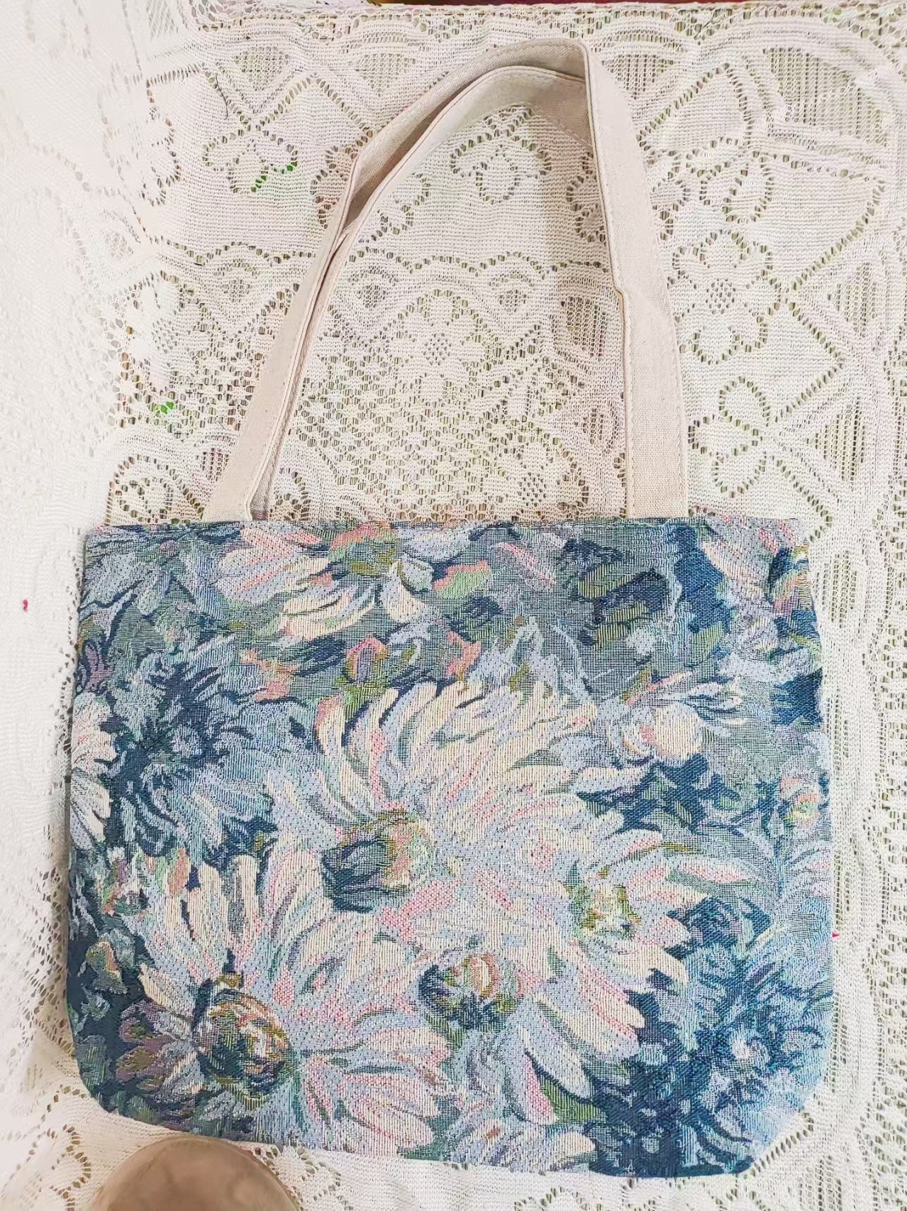 民族风中号帆布包,大容量双面刺绣单肩包