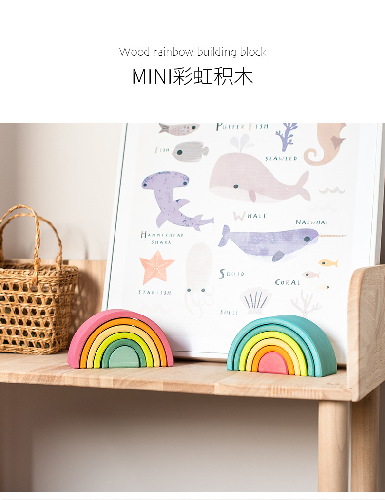 미니 작은 무지개 빌딩 블록 어린이 조기 교육 퍼즐 쌓기 음악 장난감 단단한 나무 어린이 방 장식 머리카락 세대스토어 가기