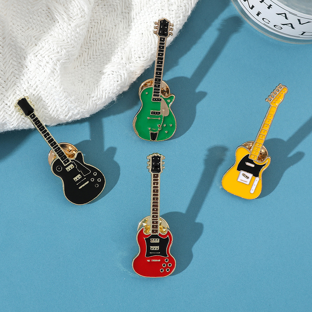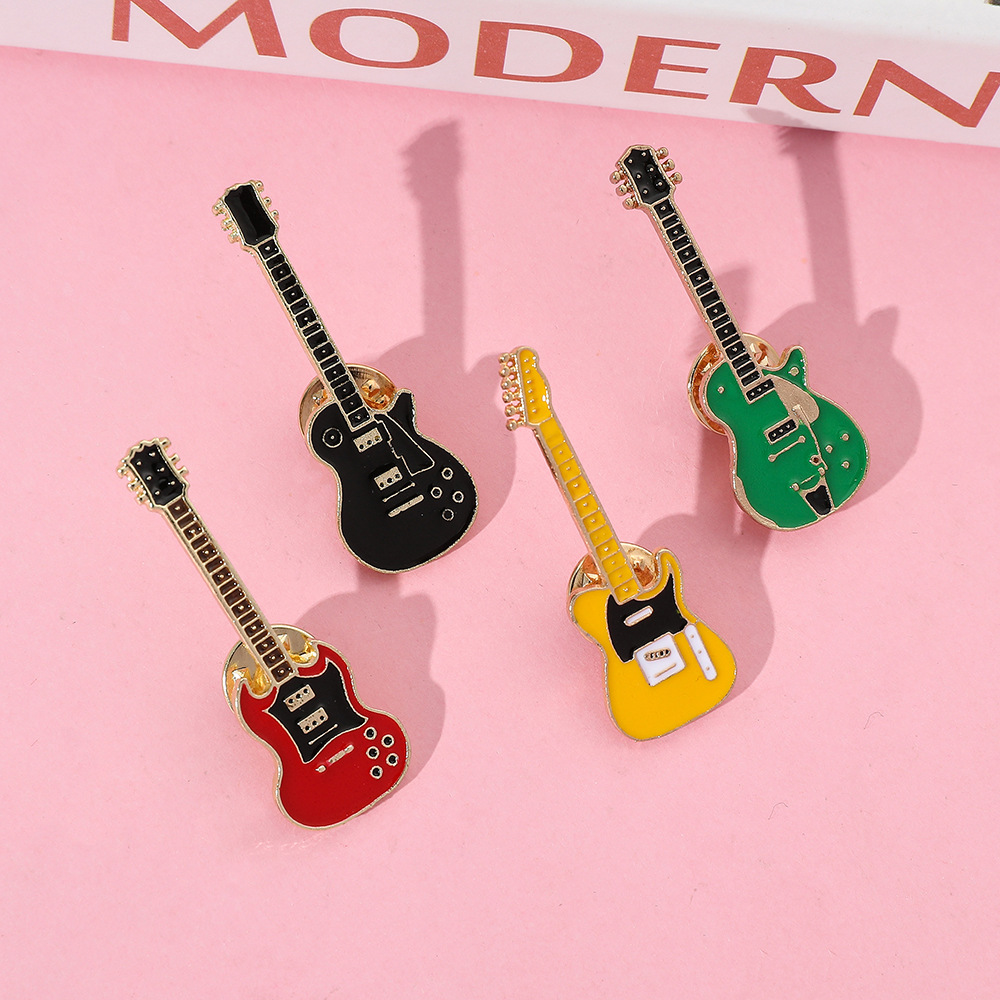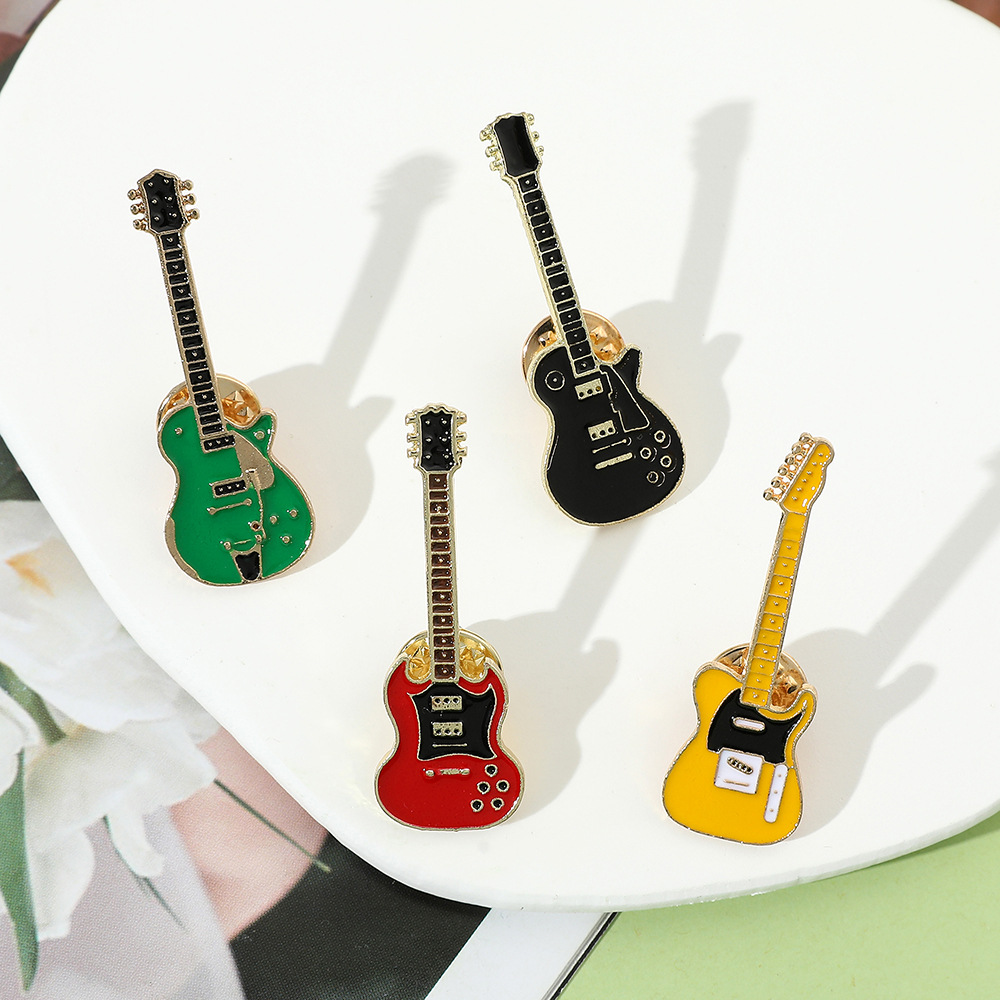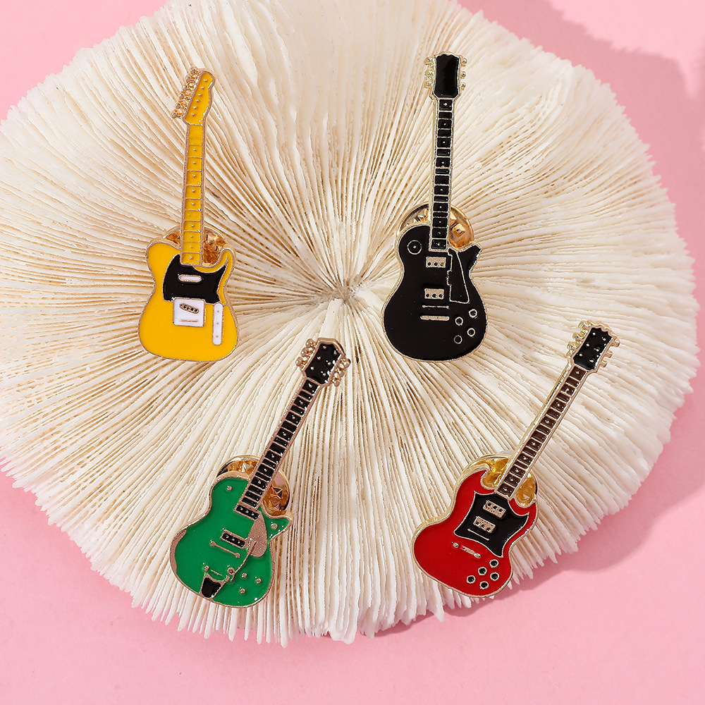 귀여운 복고풍 성격 기타 브로치 일렉트릭 기타 패션 악기 금속 배지 합금 장식 액세서리 핀