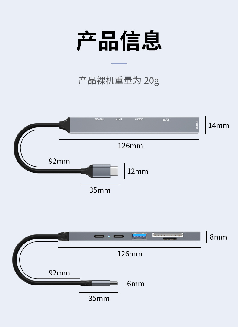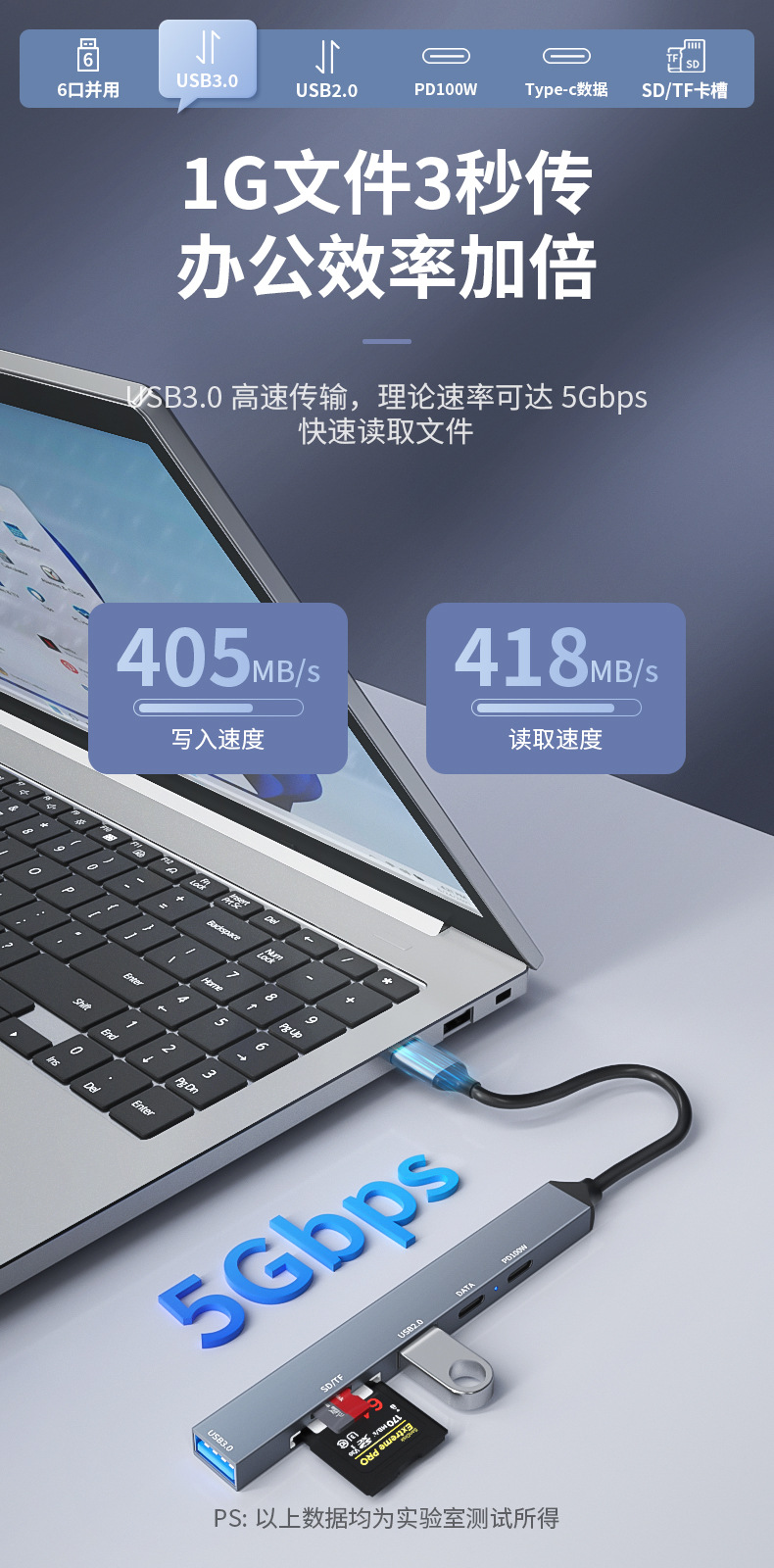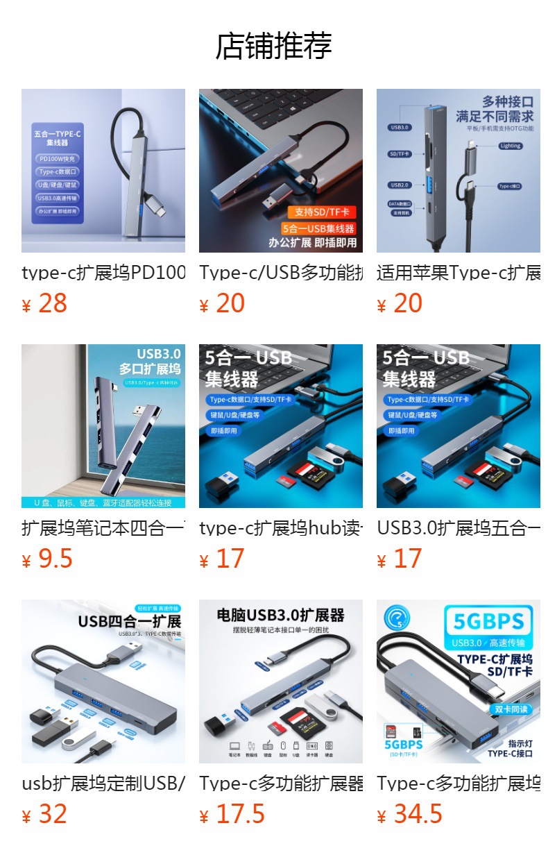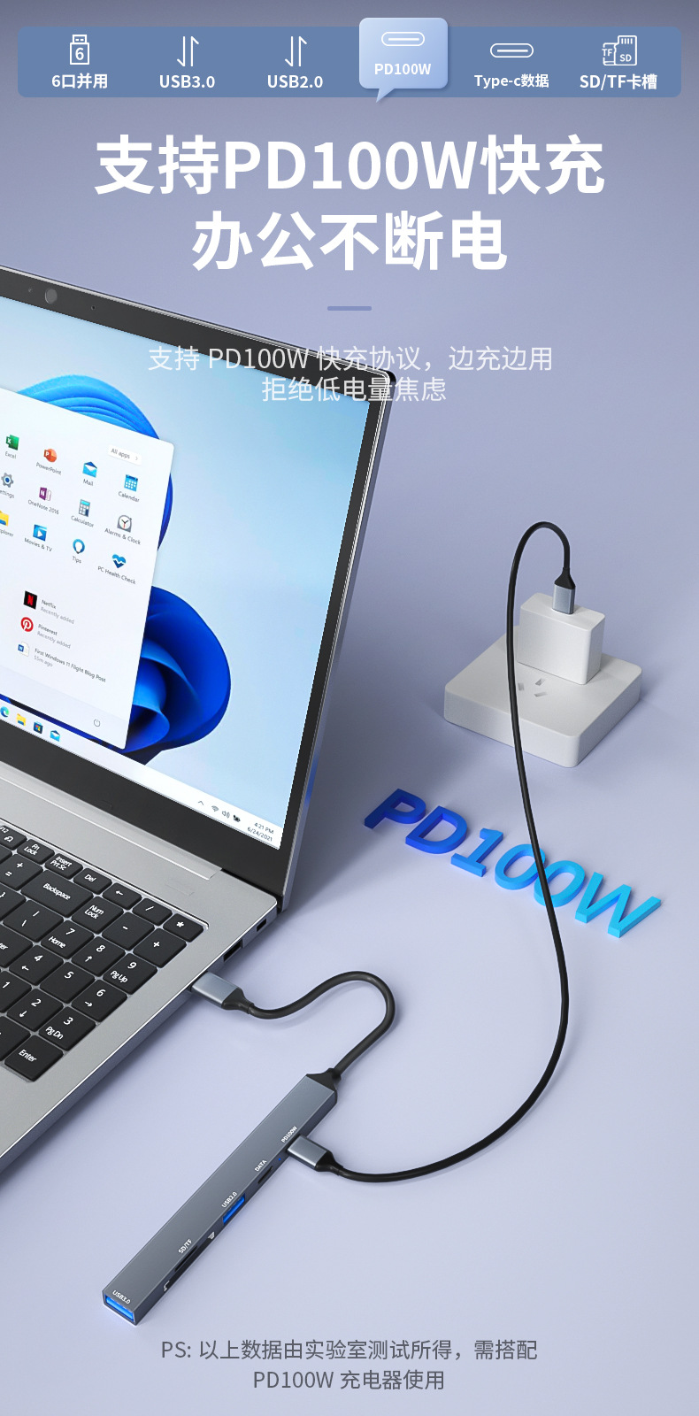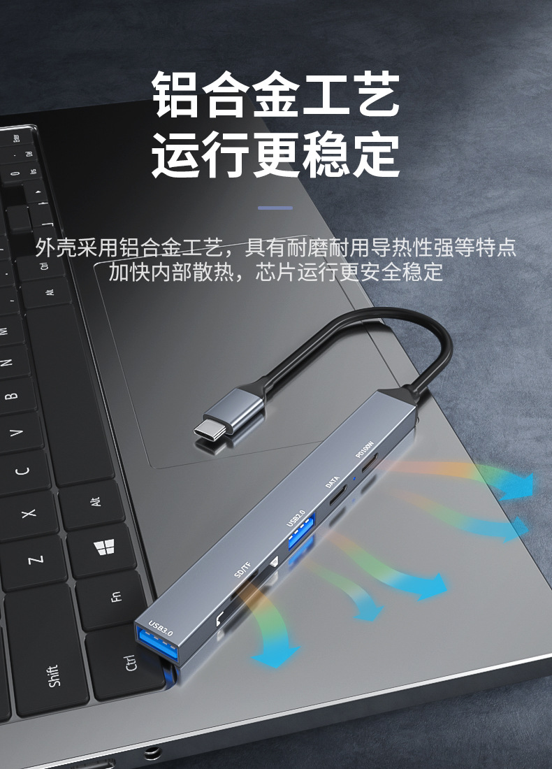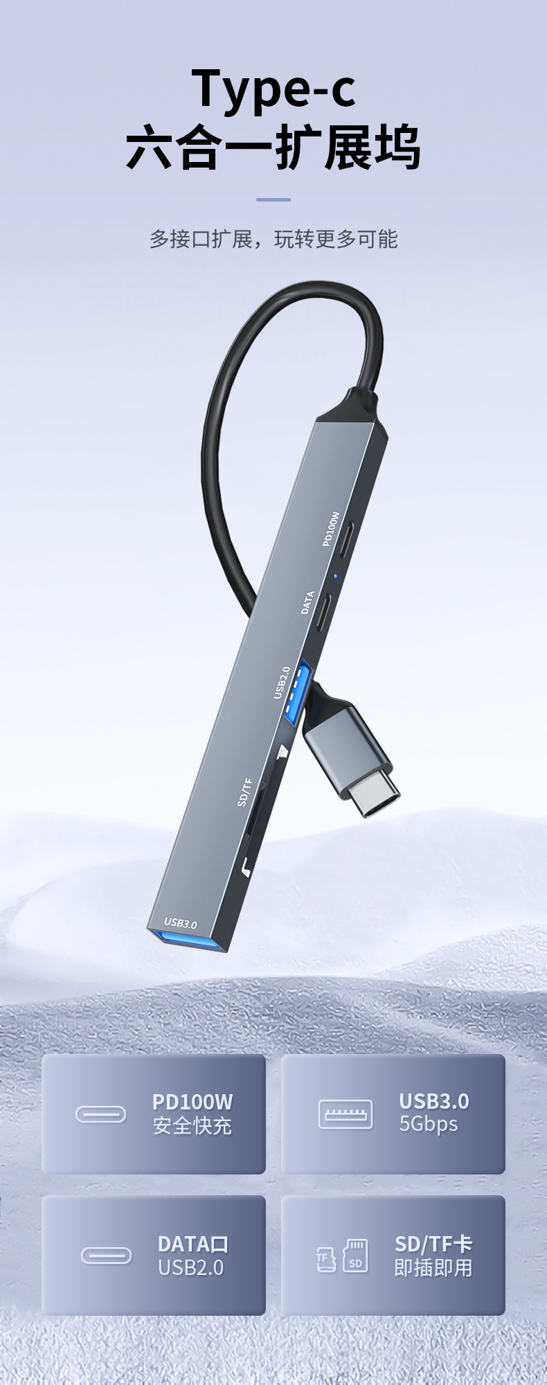 • USB2.0 + USB3.0 + Type-c 포트 + PD 고속 충전 + SD + TF [TYPE-C 식스 인 원]