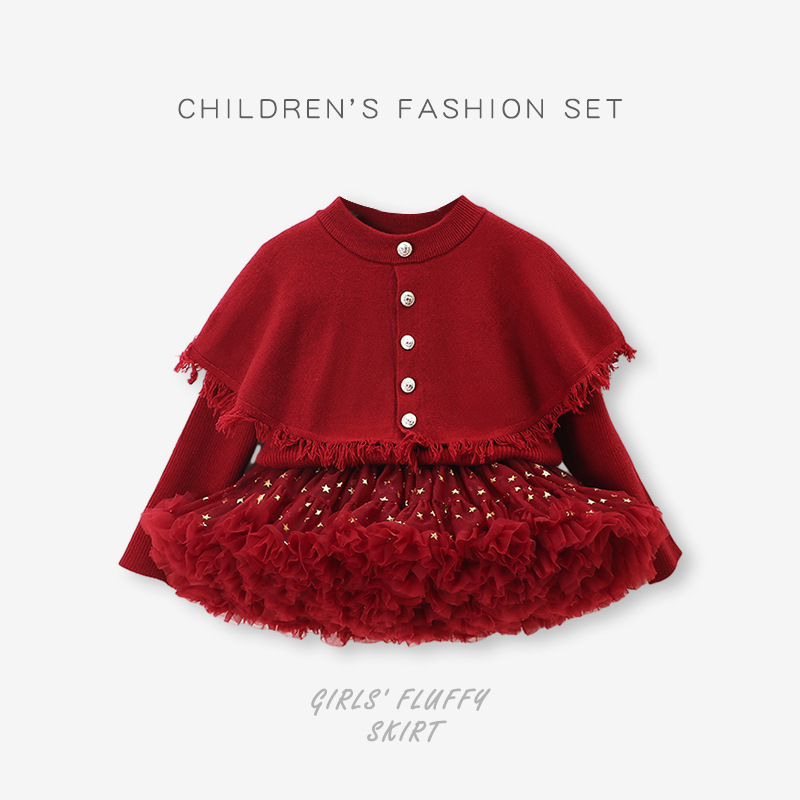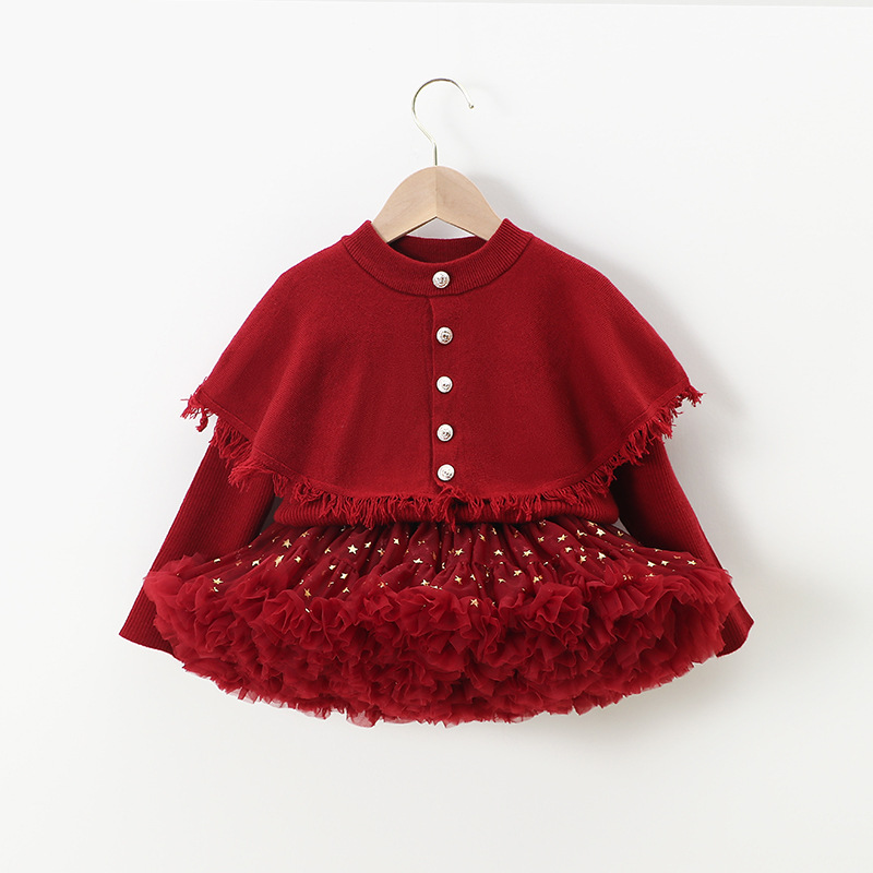 소녀 니트웨어 국경 핫 크리스마스 폭발 어린이 투투 원피스 공주 원피스 세트 베이비 스웨터 코트