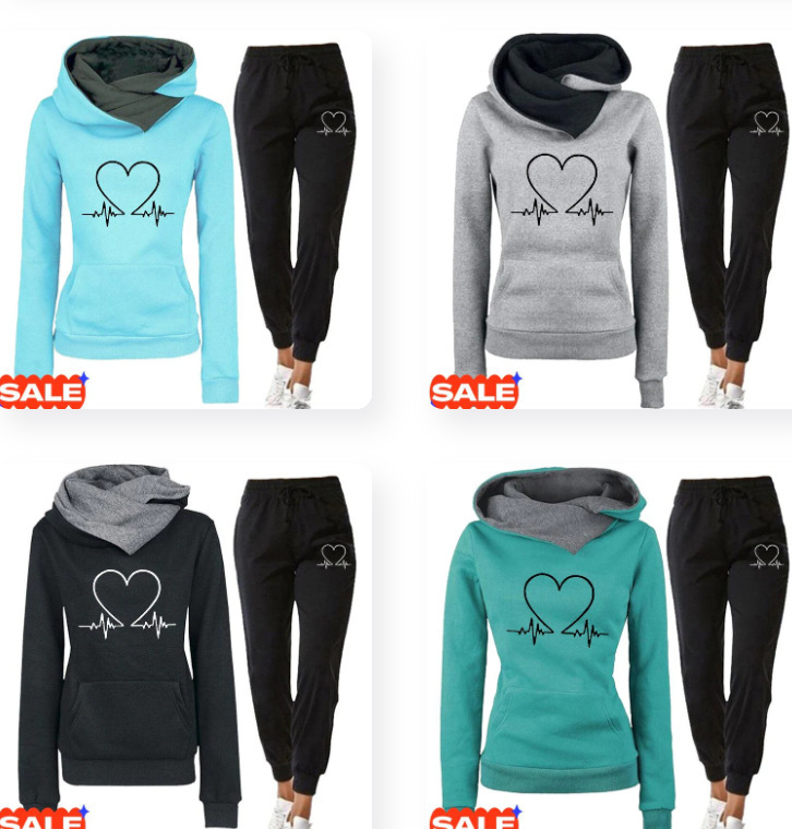 2023 크로스 보더 남성과 여성의 인쇄 스웨터 세트 가을과 겨울 풀오버 후드 스포츠 세트 레저 조깅