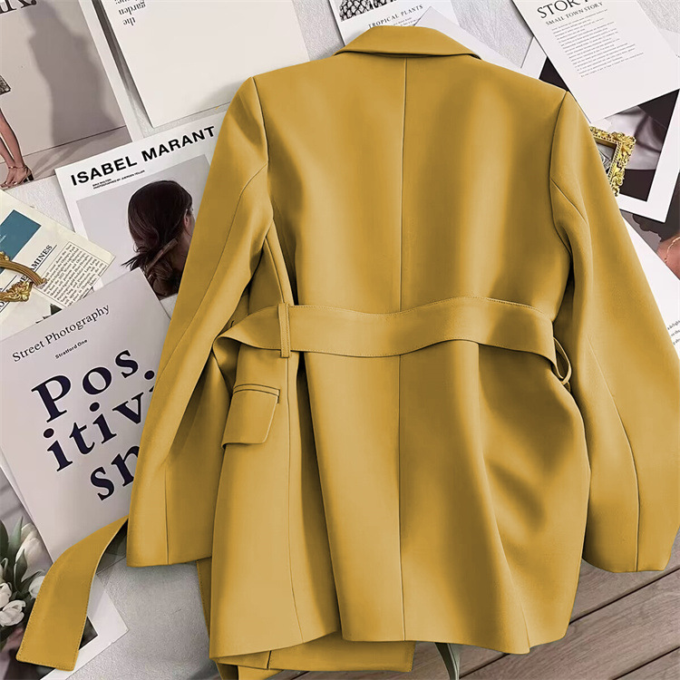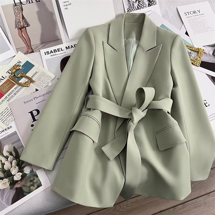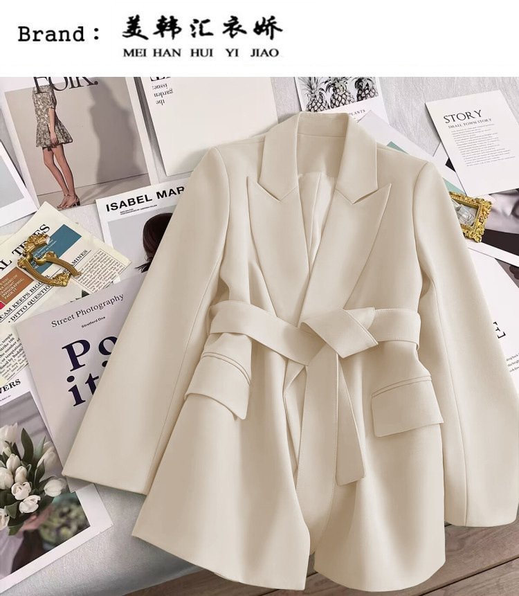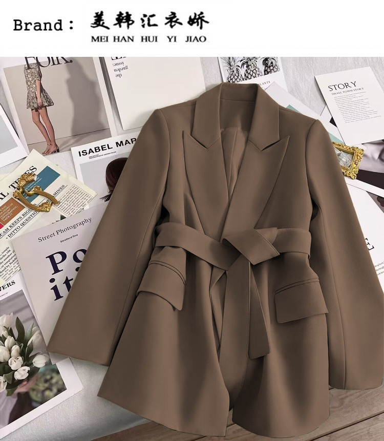 2026 봄 가을 신상 한국 스타일 여성용 블레이저, 커피색, 허리끈 디자인, 슬림핏, 우아하고 세련된 패션, 작은 사이즈의 정장 재킷스토어 가기