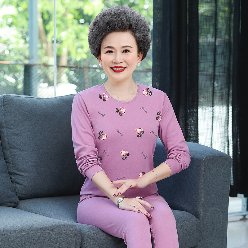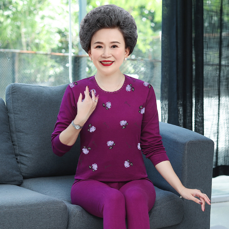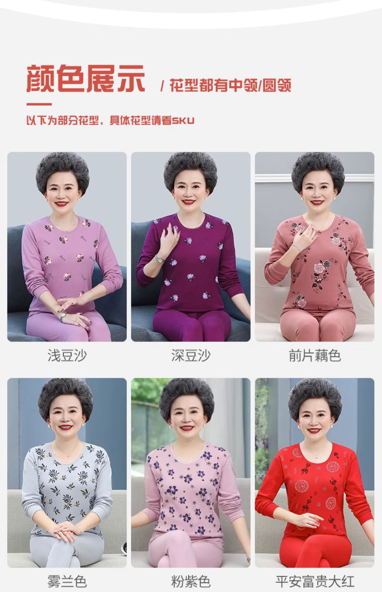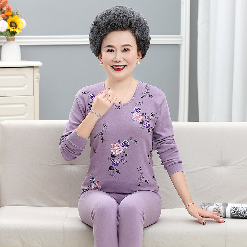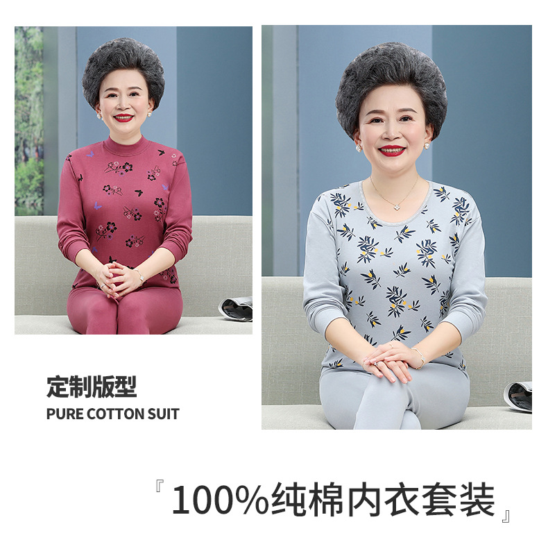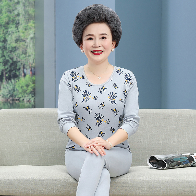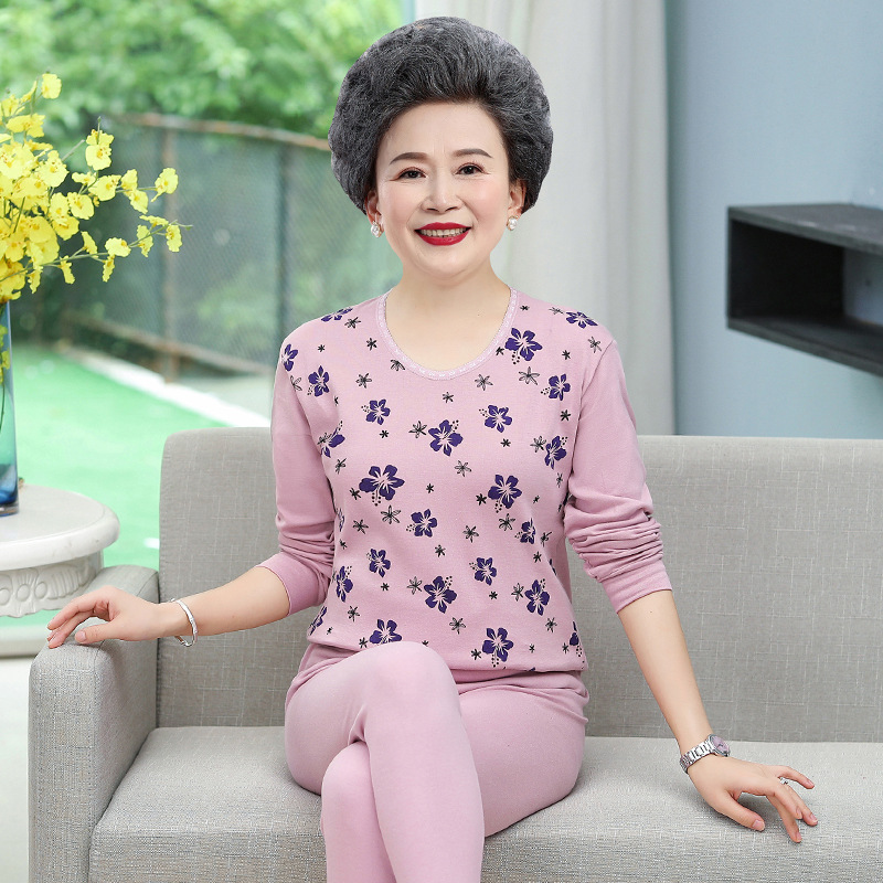 중년 및 고령자의 가을 옷과 바지 순면 세트 여성 하의 면 스웨터 어머니 노인의 순면 열 속옷스토어 가기