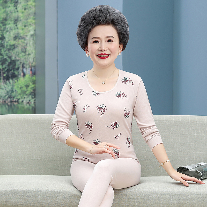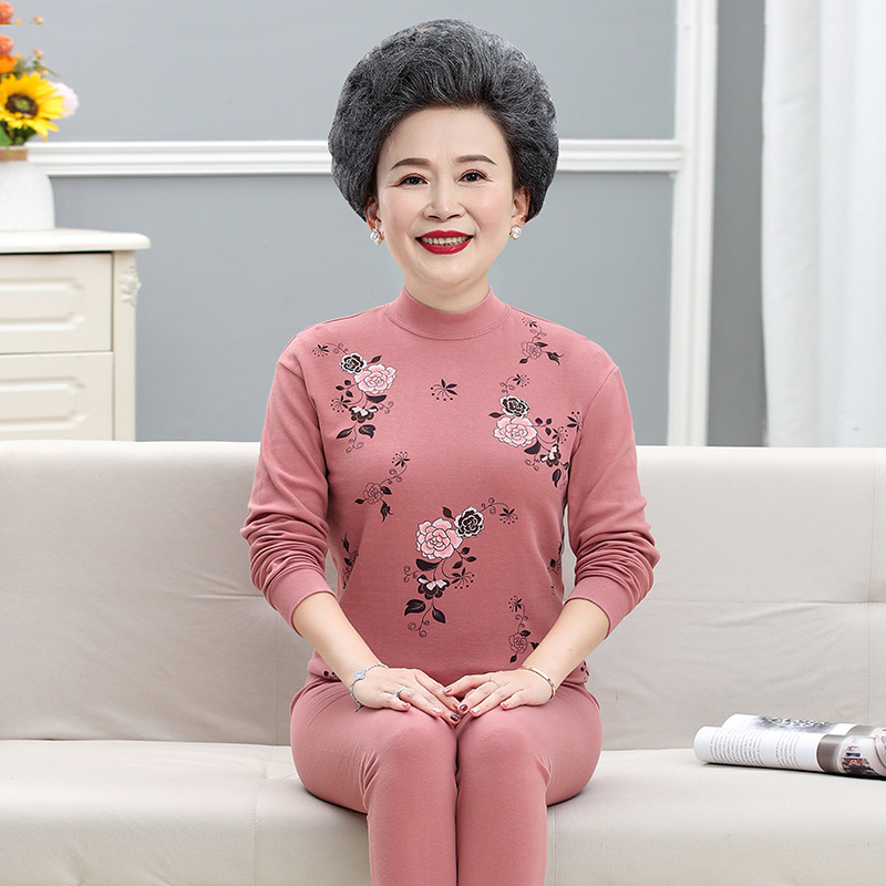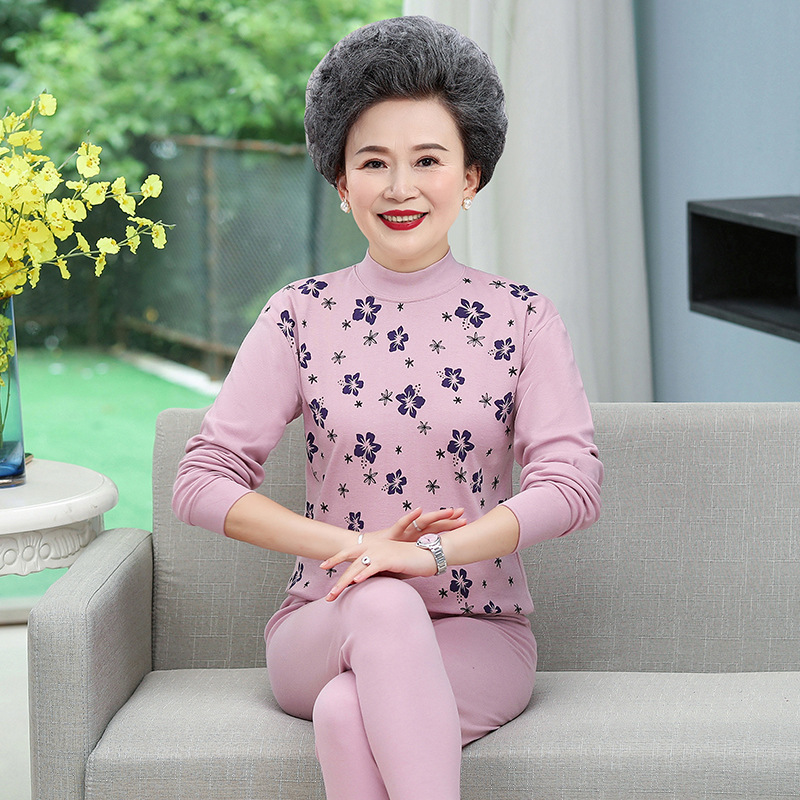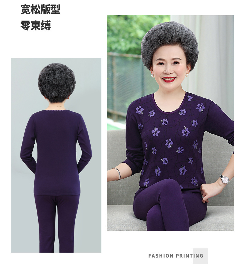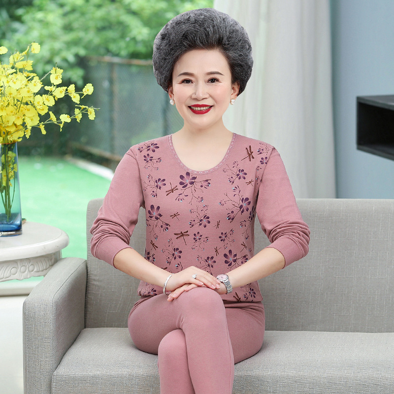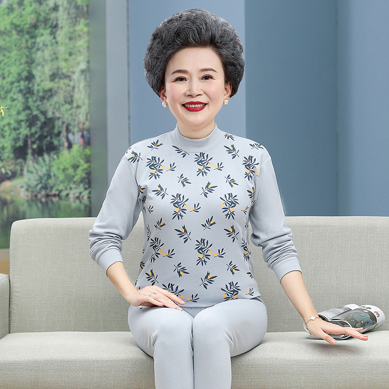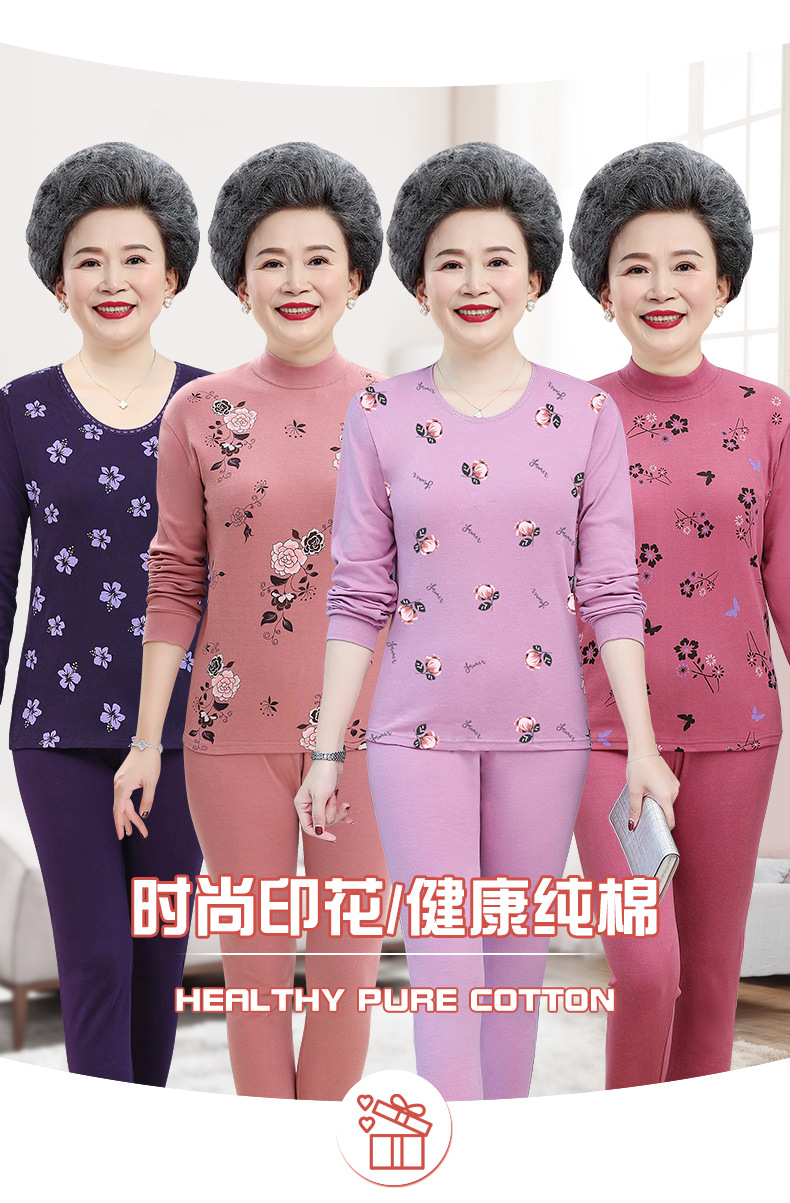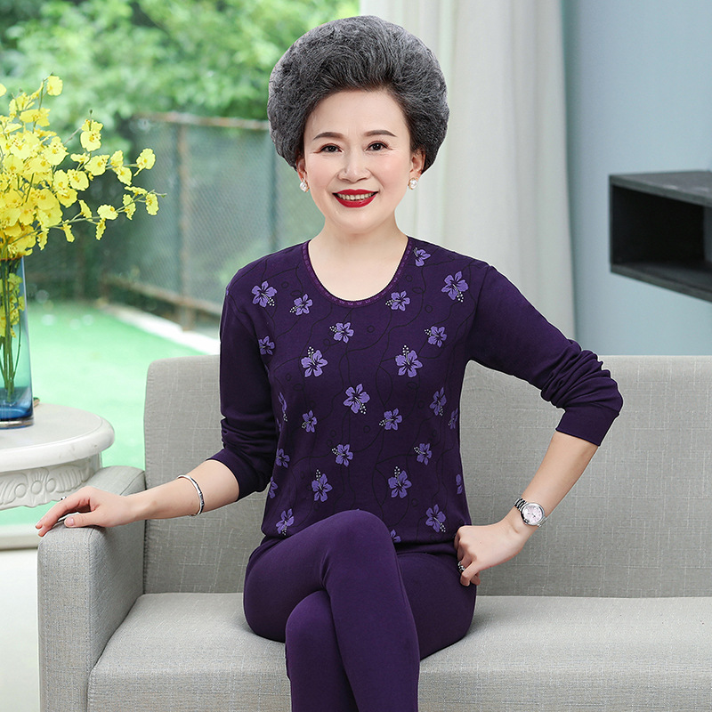 중년 및 고령자의 가을 옷과 바지 순면 세트 여성 하의 면 스웨터 어머니 노인의 순면 열 속옷스토어 가기
