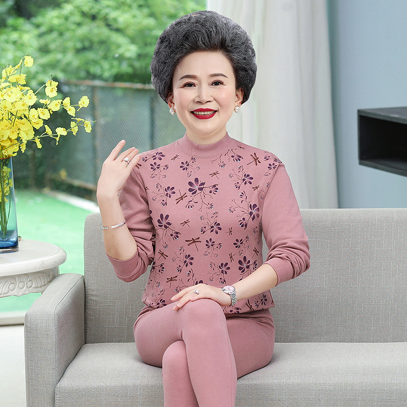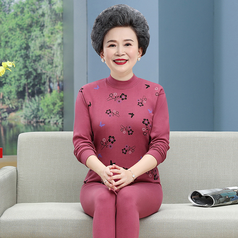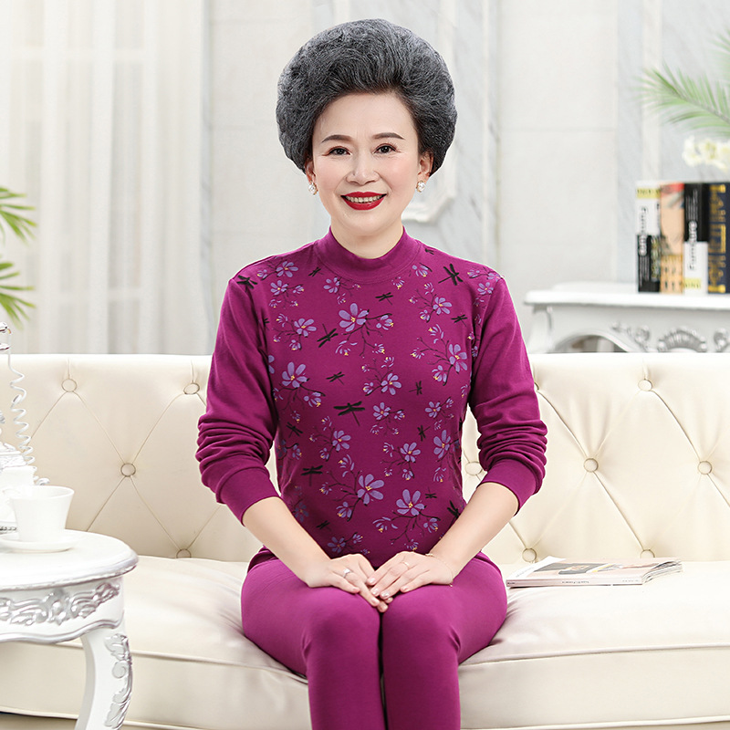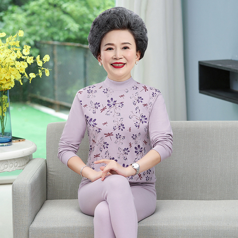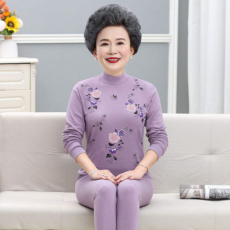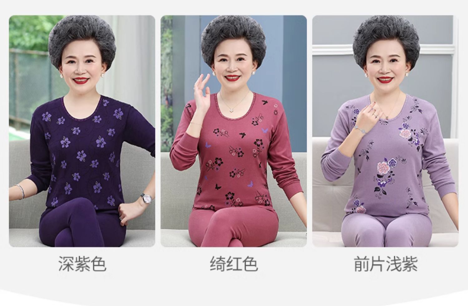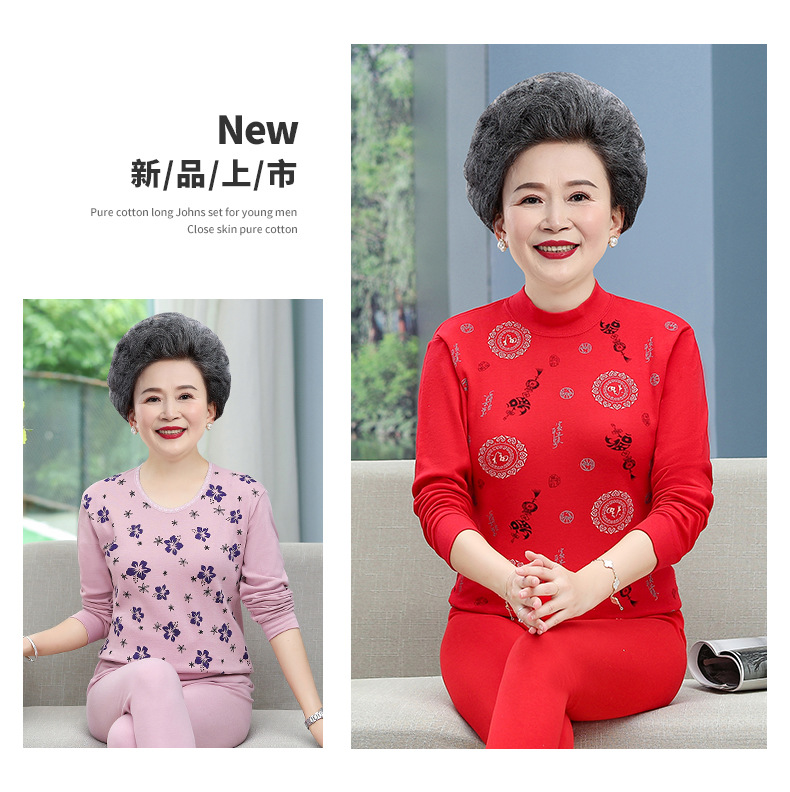 중년 및 고령자의 가을 옷과 바지 순면 세트 여성 하의 면 스웨터 어머니 노인의 순면 열 속옷스토어 가기