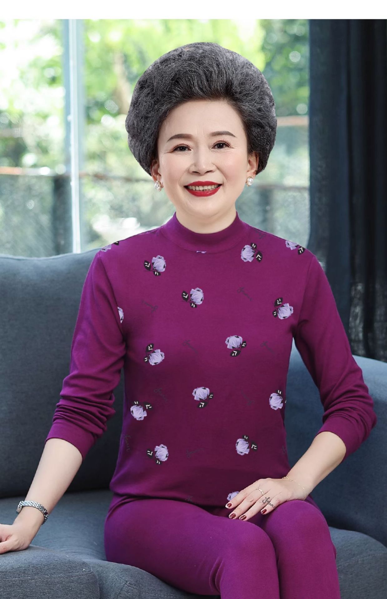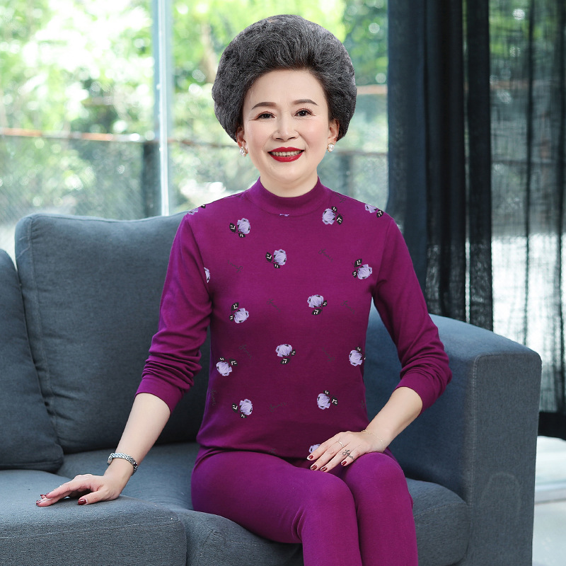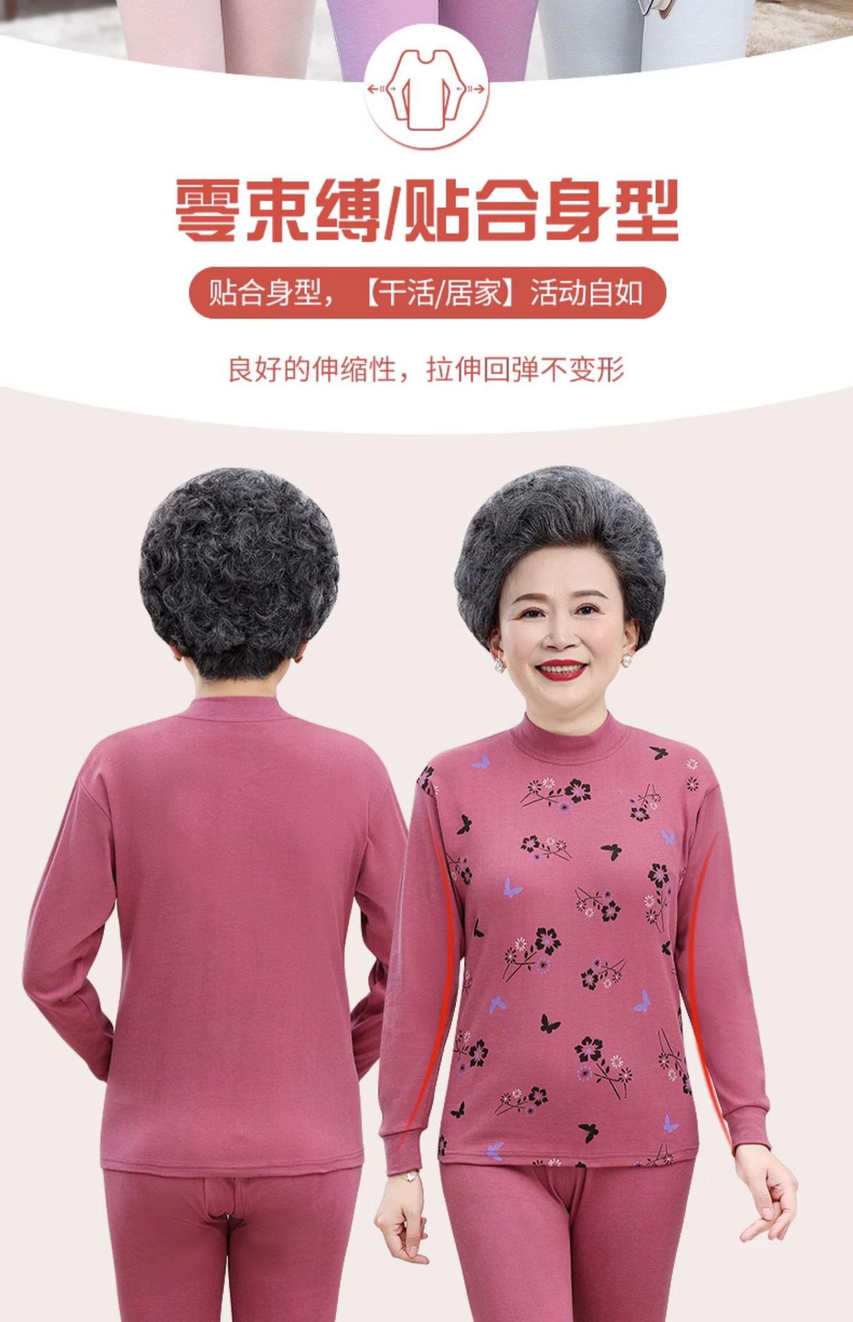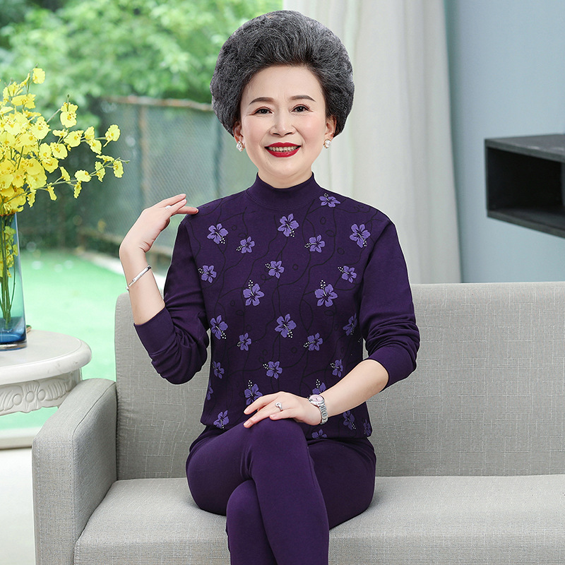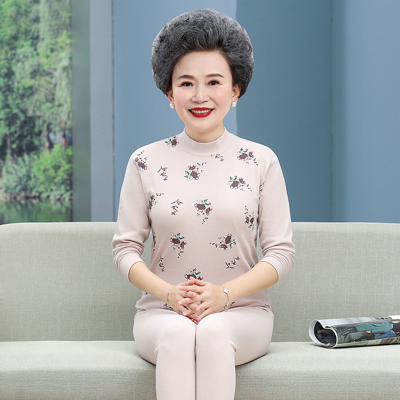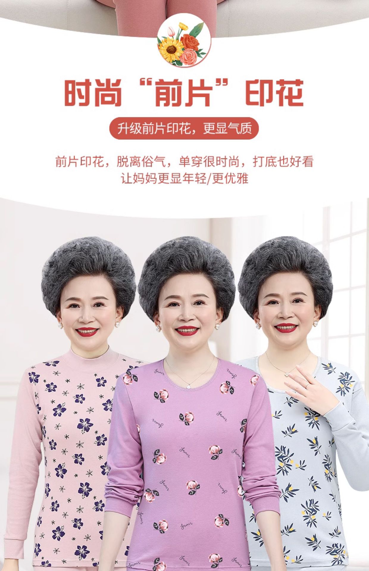 중년 및 고령자의 가을 옷과 바지 순면 세트 여성 하의 면 스웨터 어머니 노인의 순면 열 속옷스토어 가기