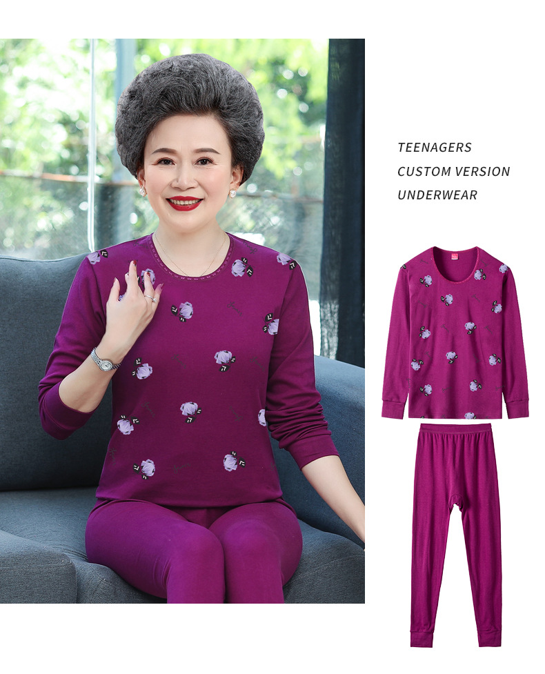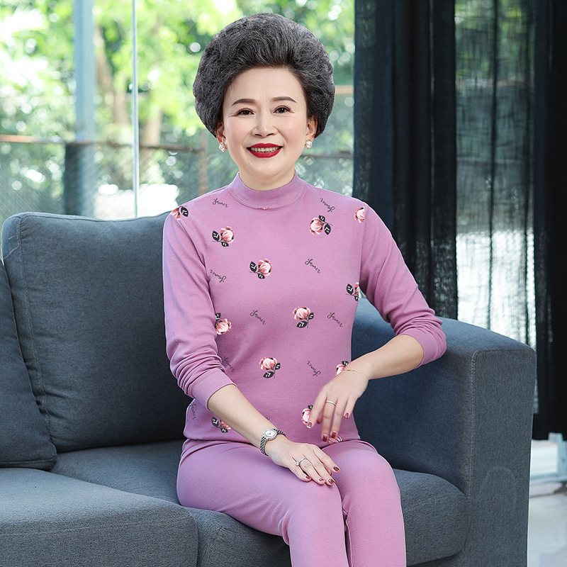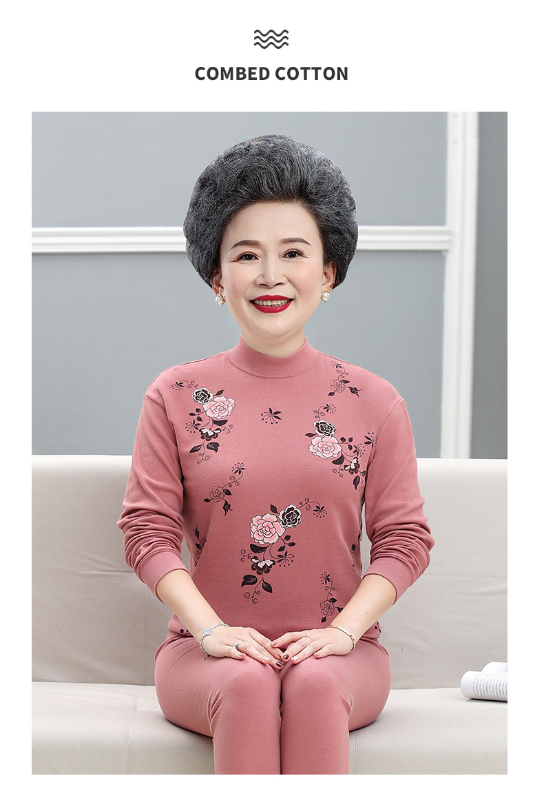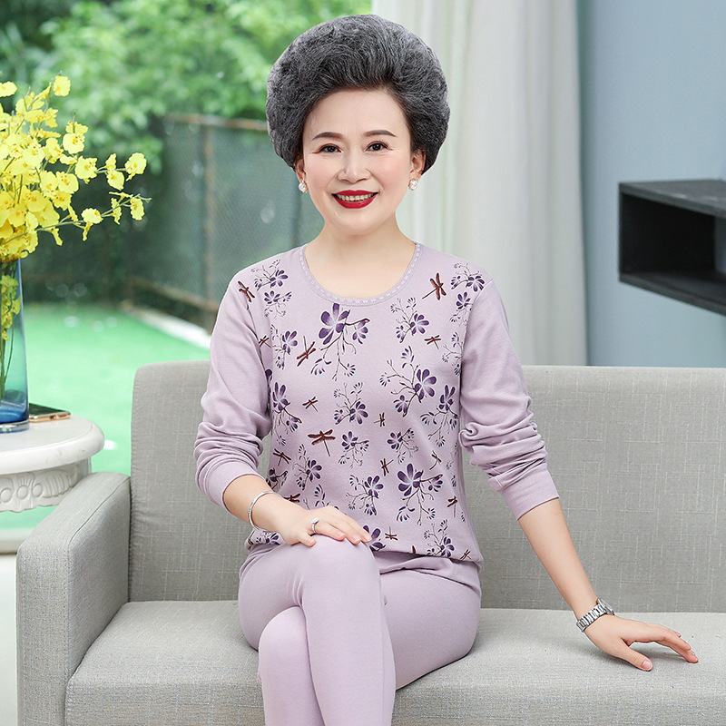 중년 및 고령자의 가을 옷과 바지 순면 세트 여성 하의 면 스웨터 어머니 노인의 순면 열 속옷