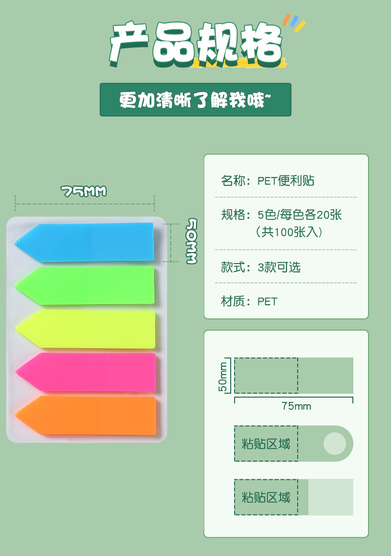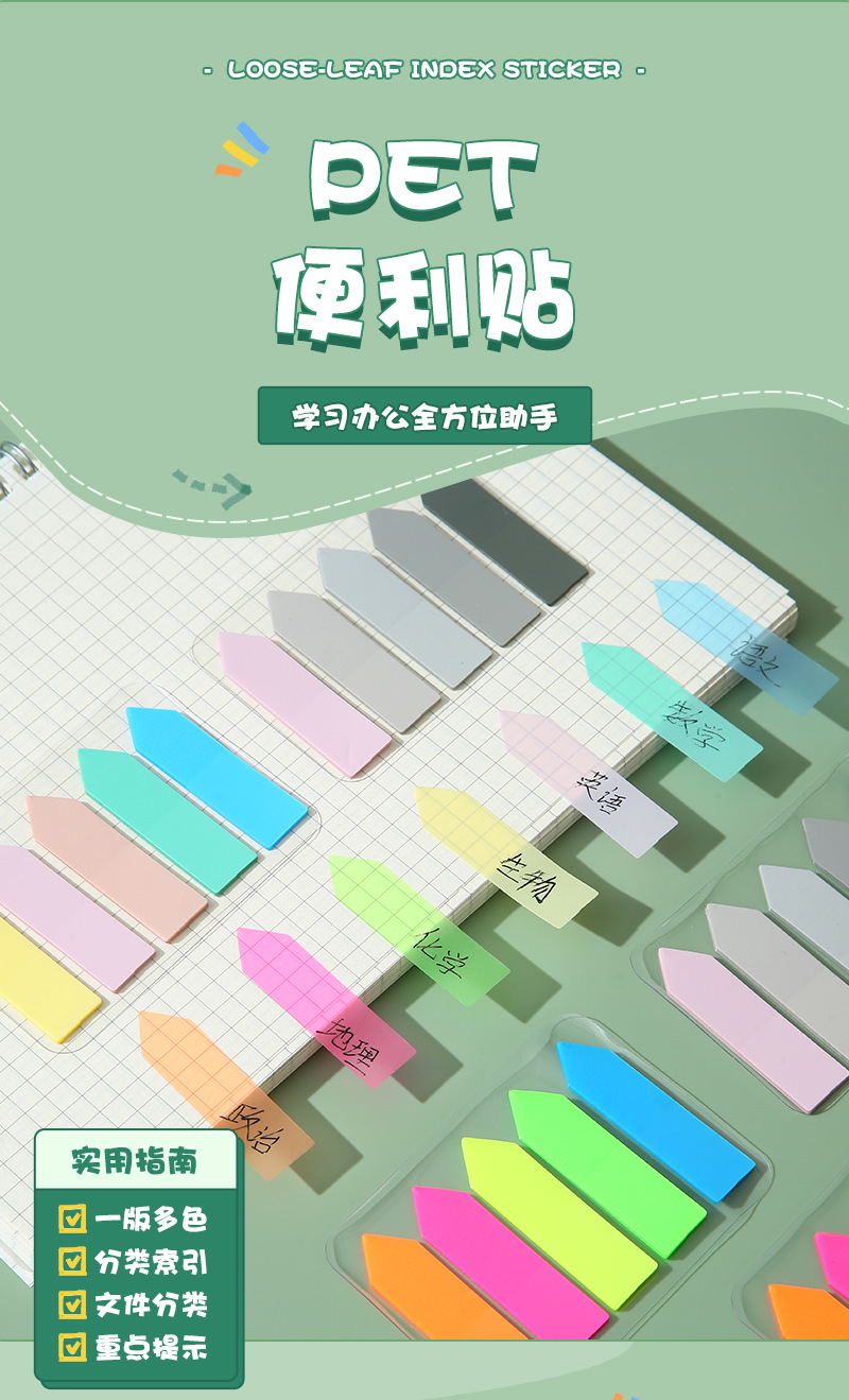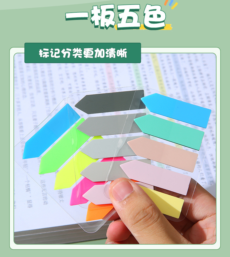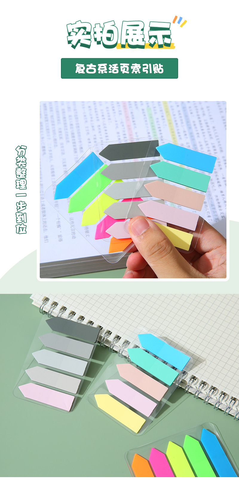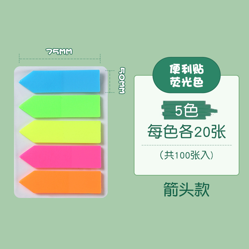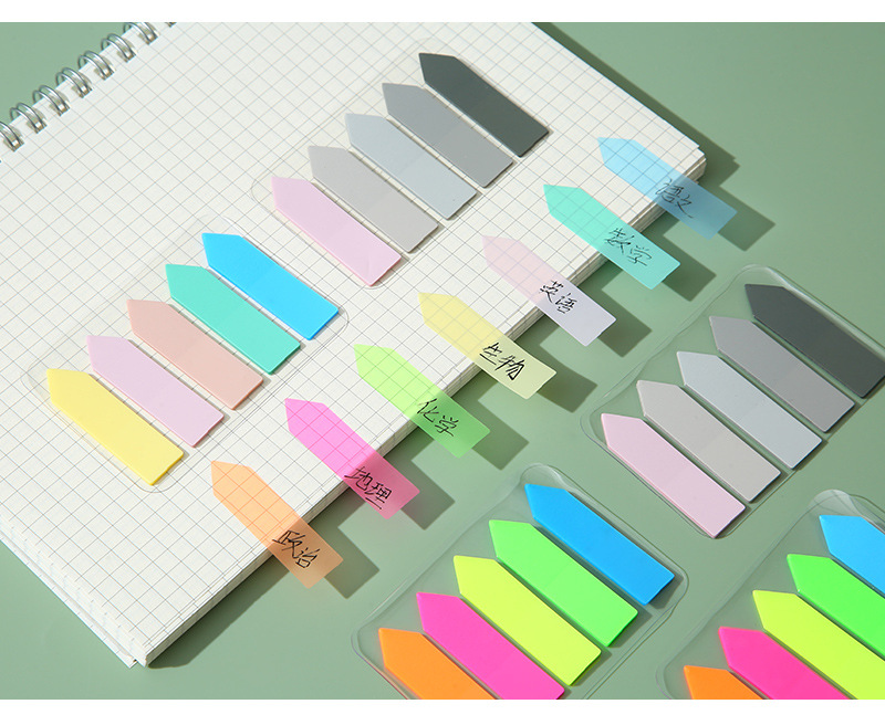 크리에이티브 PET 형광 화살표 포스트 잇 노트 학생 키 마크 방수 인덱스 스틱 소형 책갈피 편리한 스티커스토어 가기
