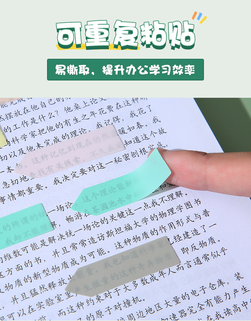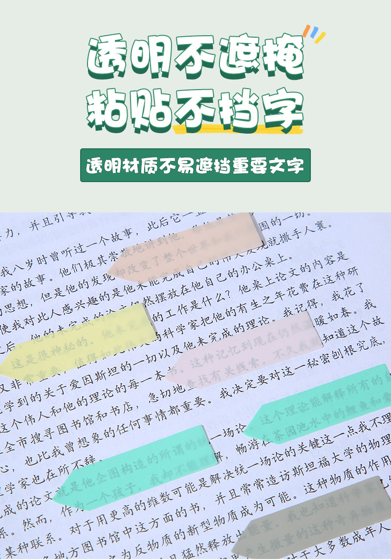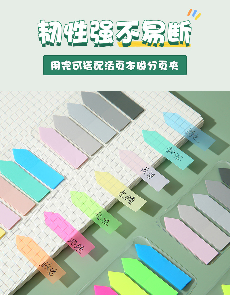 크리에이티브 PET 형광 화살표 포스트 잇 노트 학생 키 마크 방수 인덱스 스틱 소형 책갈피 편리한 스티커