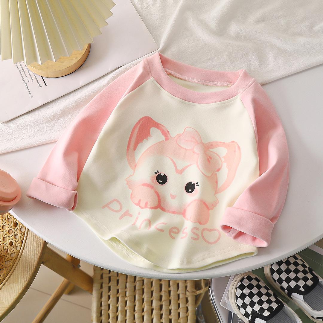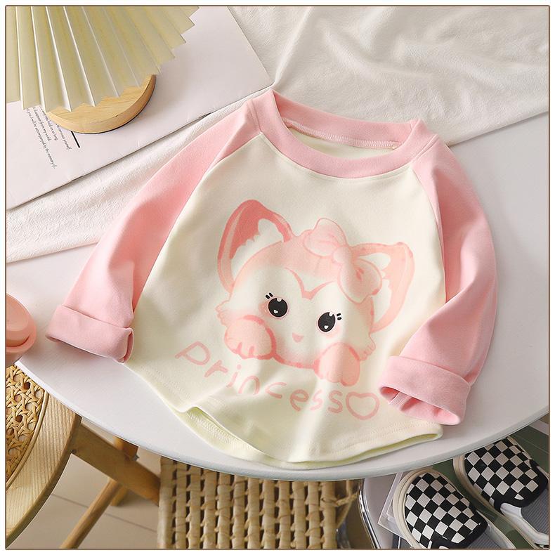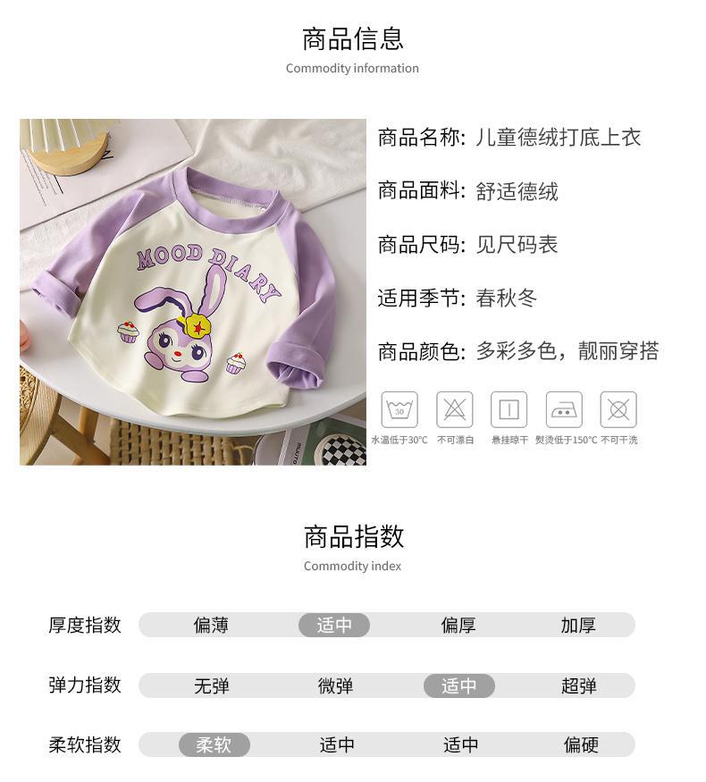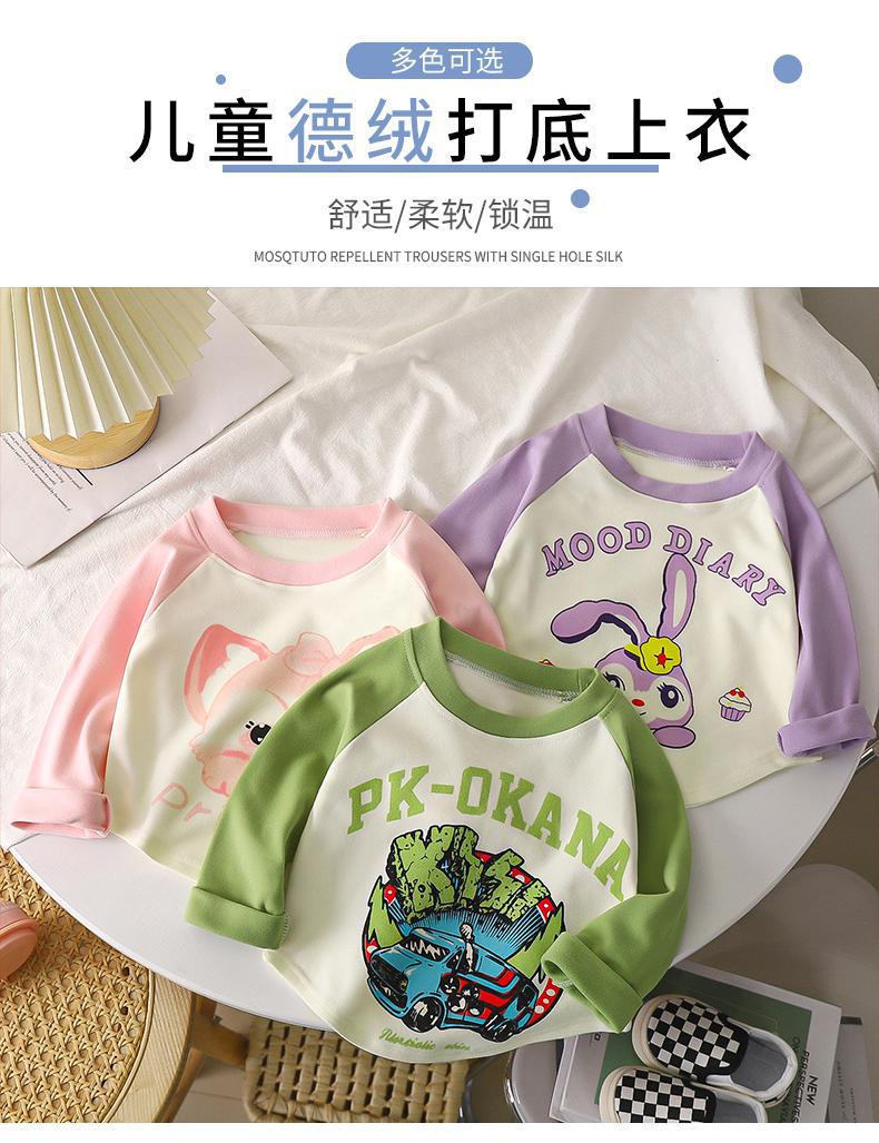 어린이 벨벳 긴팔 티셔츠 가을과 겨울 새로운 스타일 만화 컬러 매칭 라글란베이스 셔츠 탑
