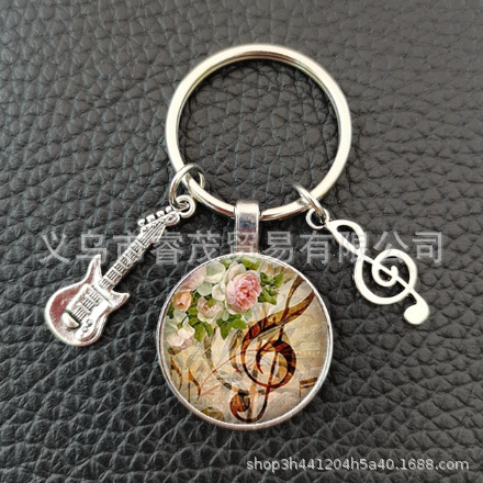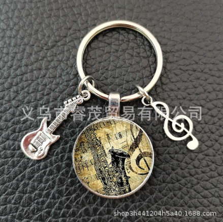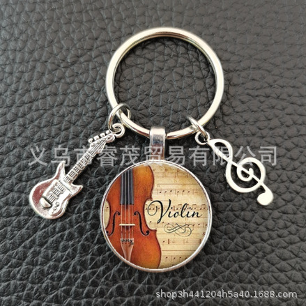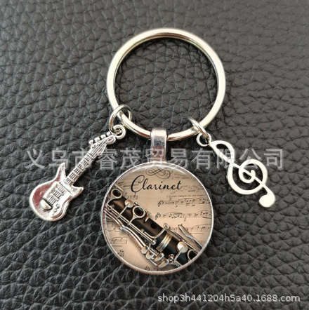 악기 클라리넷 기타 플루트 바이올린 음악 키 체인 펜던트 음악 노트 키 체인