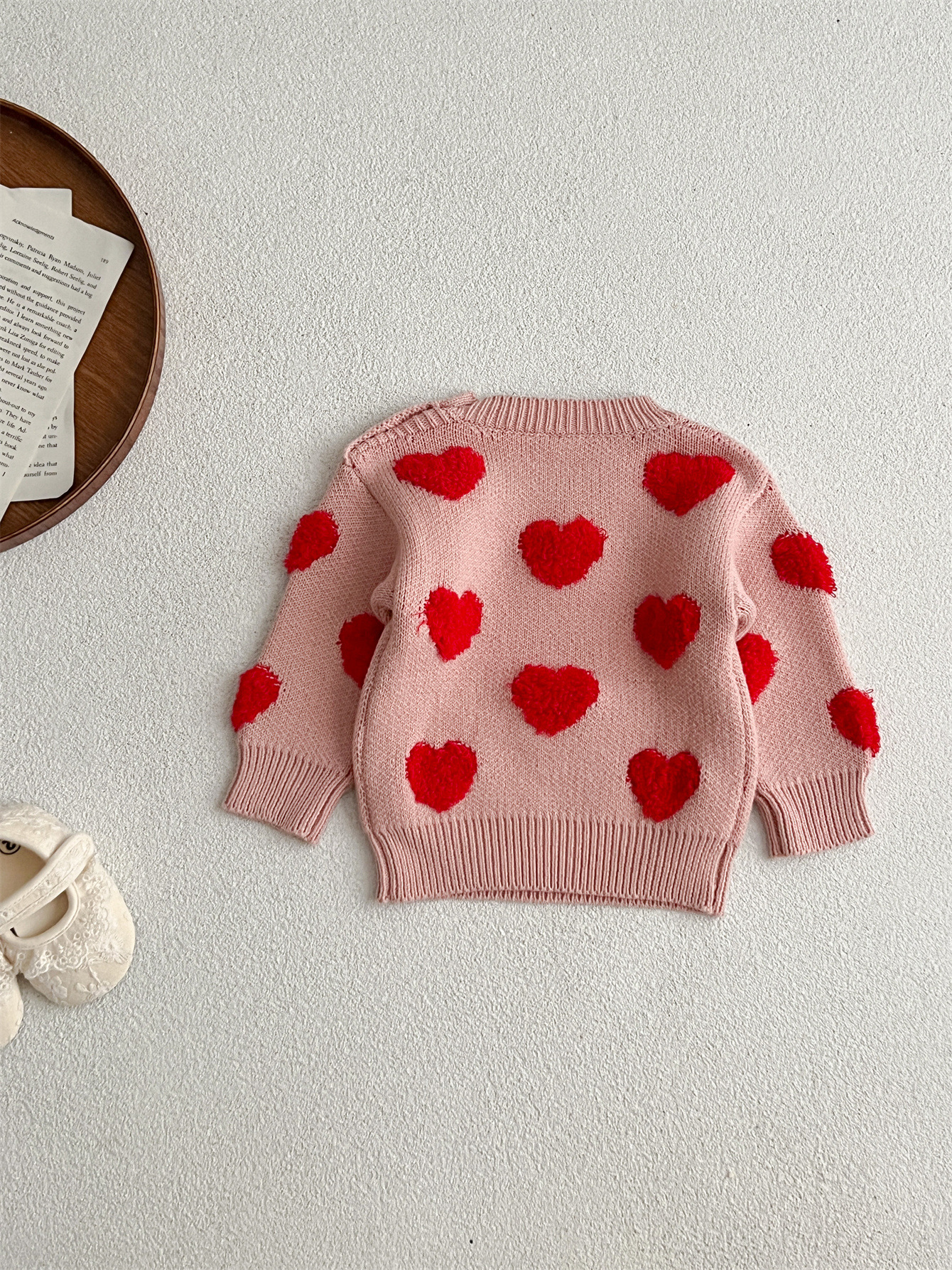 INS 가을 새로운 아기 니트 가디건 아기 소녀 입체 사랑 수건 자카드 스웨터 코트 탑