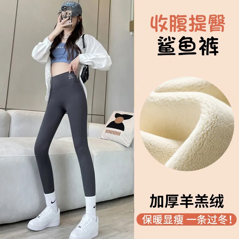 가을 겨울 여성용 벨벳 샤크 팬츠, 두껍고 따뜻한 레깅스, 하이웨이스트 슬리밍 요가 바비 팬츠스토어 가기