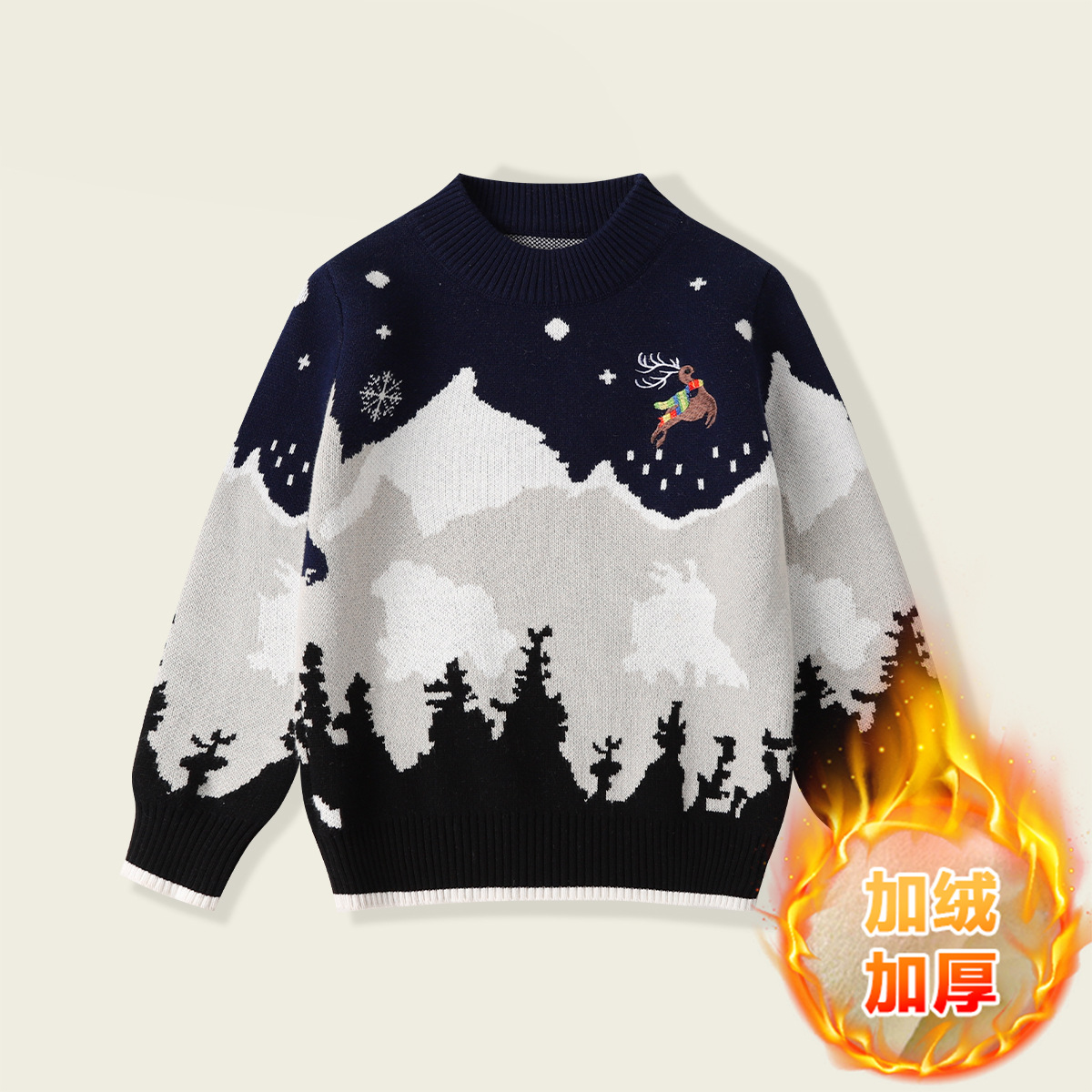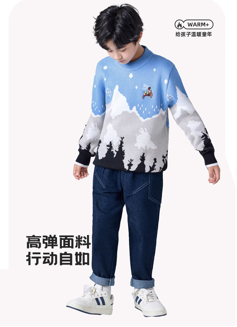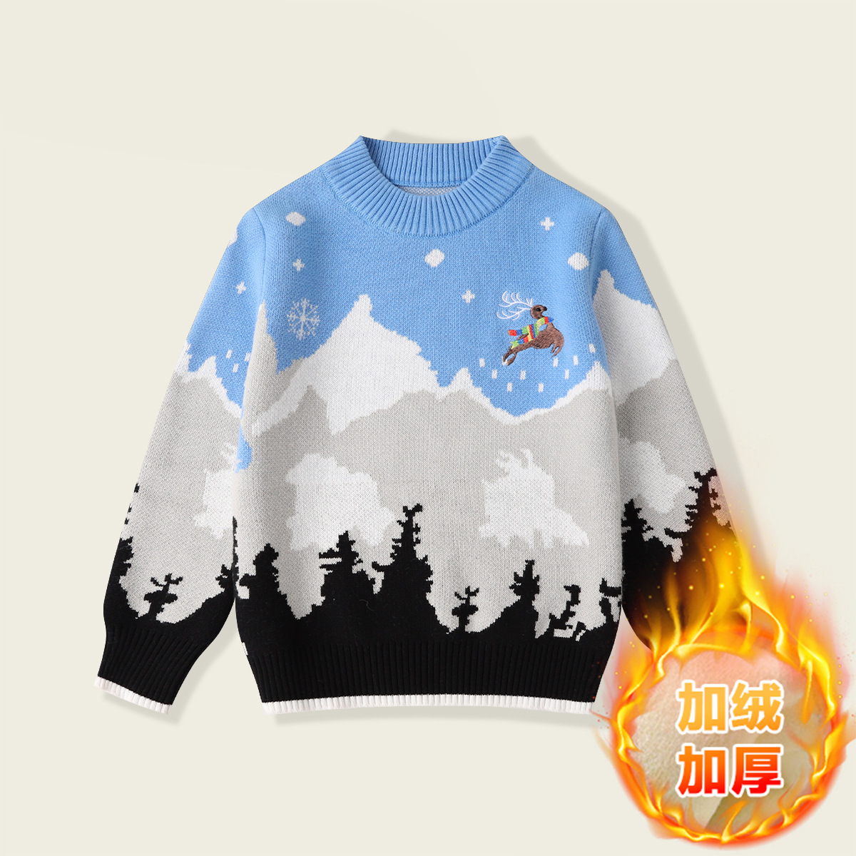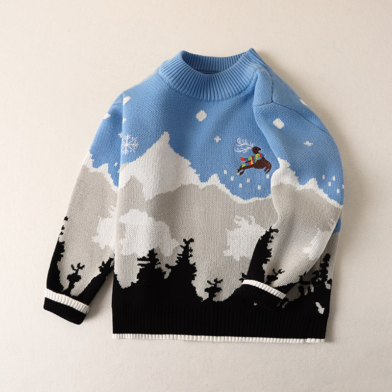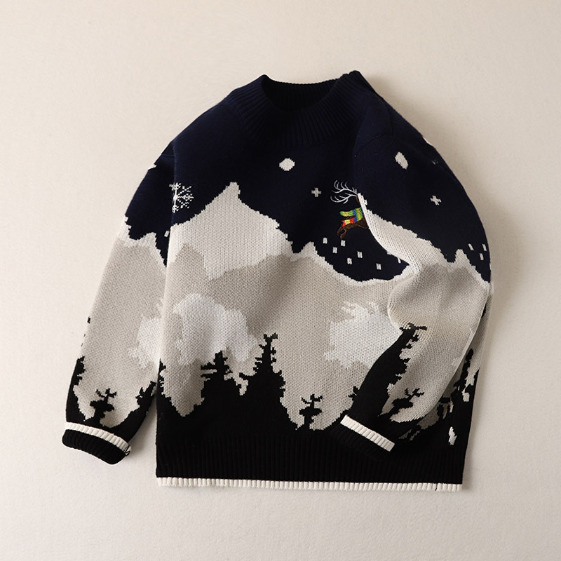 남아용 스웨터 순면 2025년 크리스마스 엘크 풀오버 중대형 어린이용 플러스 벨벳 두꺼운 만화 어린이 상의