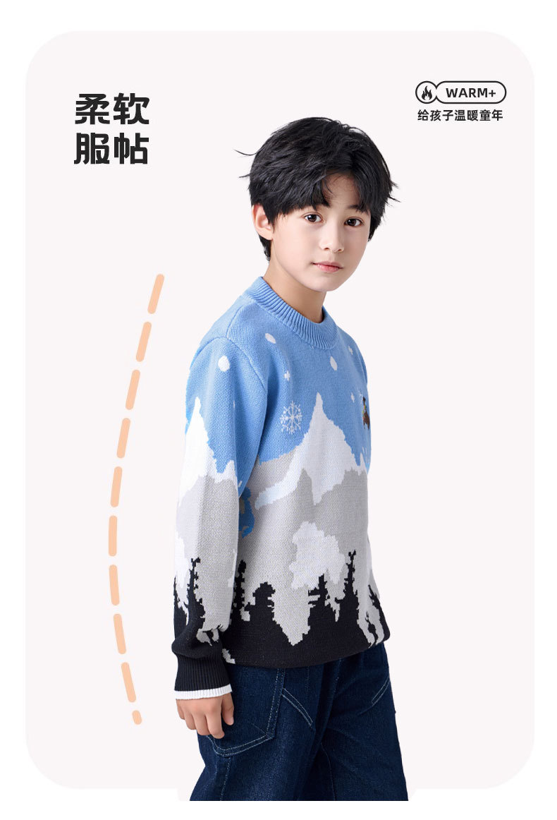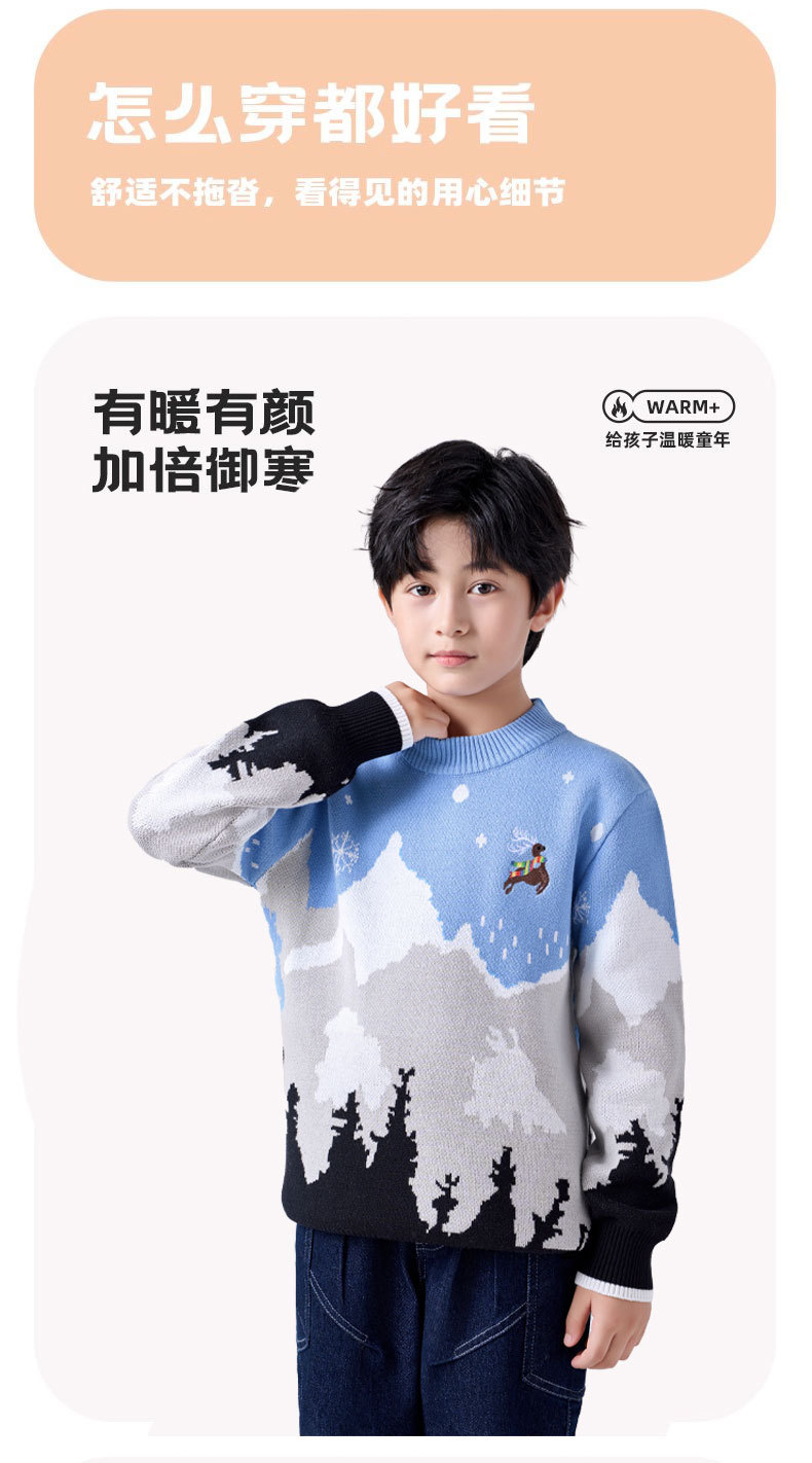 남아용 스웨터 순면 2025년 크리스마스 엘크 풀오버 중대형 어린이용 플러스 벨벳 두꺼운 만화 어린이 상의스토어 가기