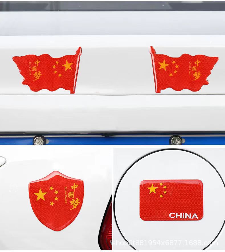 국기 반사 자동차 스티커 5 성 붉은 깃발 차체 로고 자동차 3D 입체 스티커 흠집을 막는 중국 장식 스티커