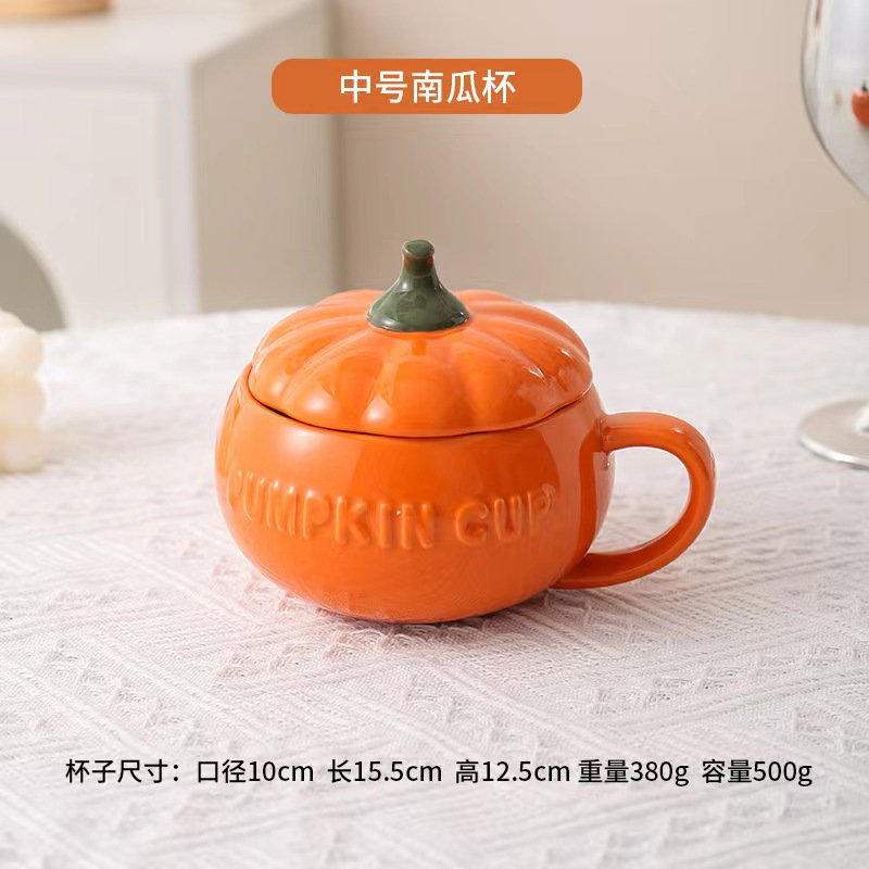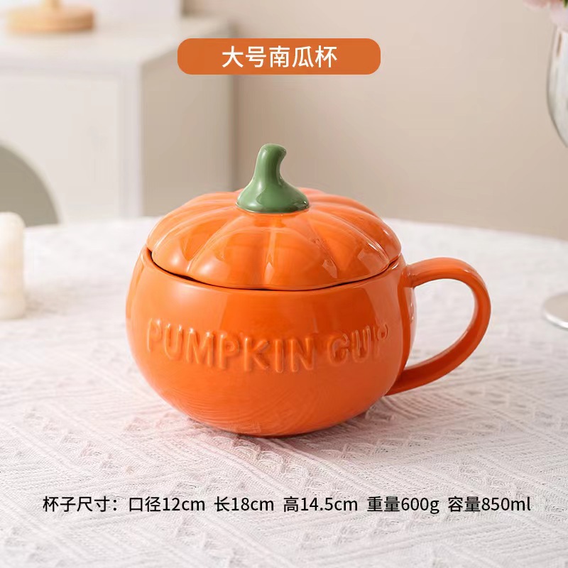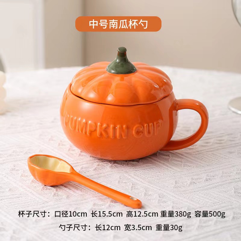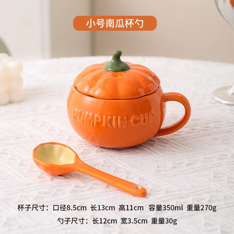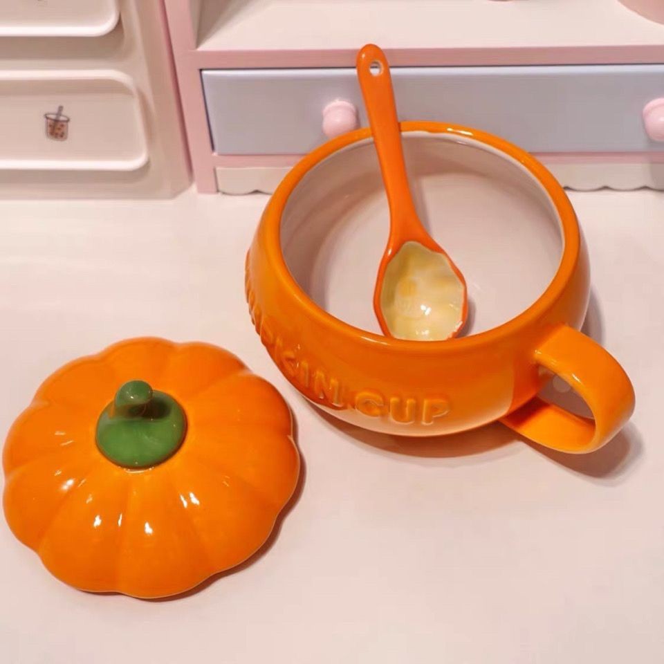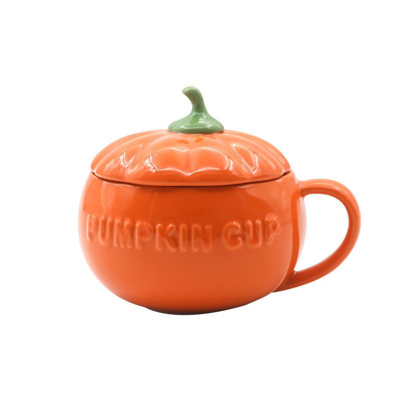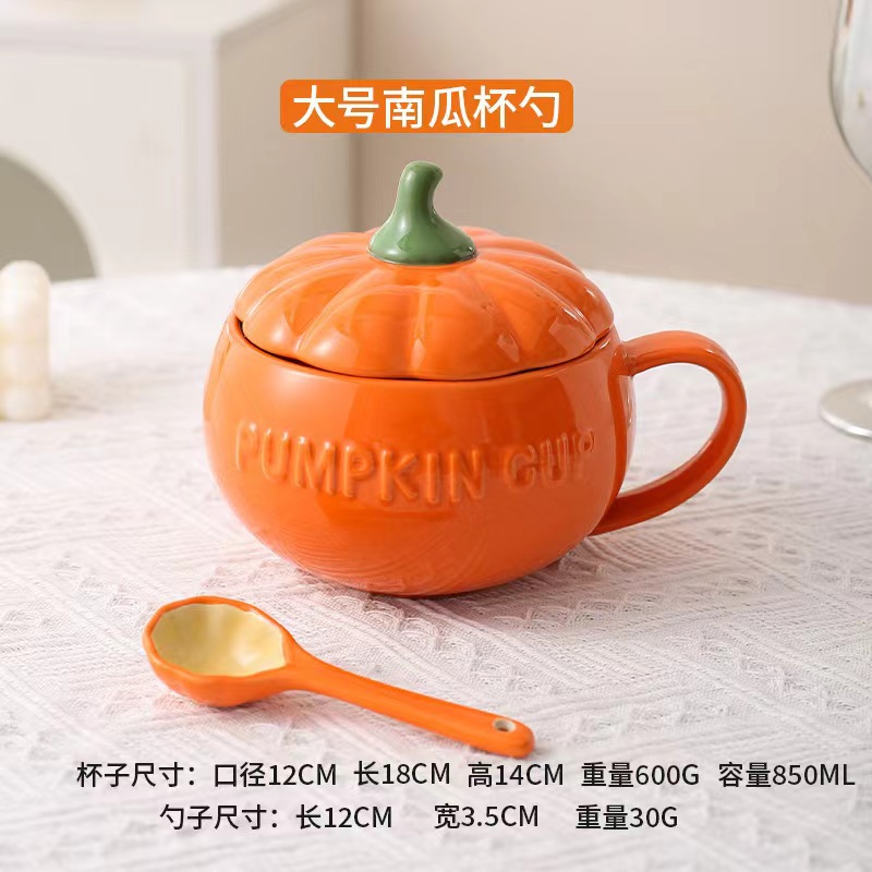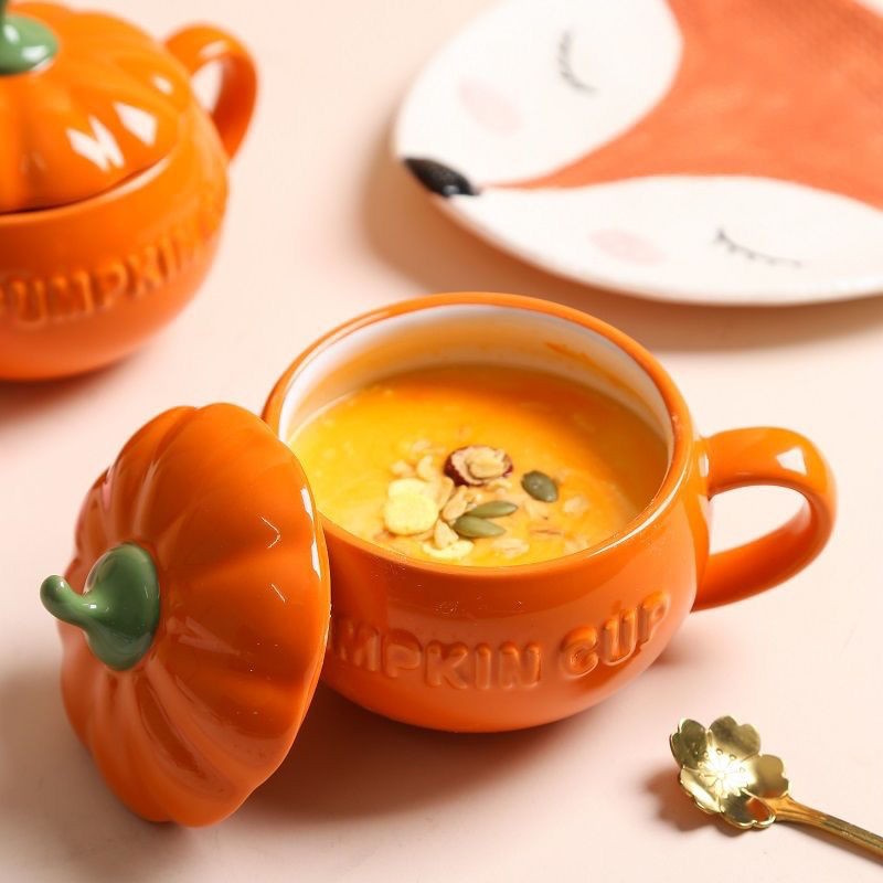 할로윈 세라믹 호박 컵 어린이 고가 우유 귀리 아침 식사 컵 국수 뚜껑이있는 찐 계란 그릇