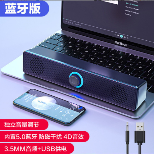 긴 데스크탑 발광 오디오 데스크탑 컴퓨터 노트북 멀티미디어 블루투스 유선 범용 듀얼 스피커