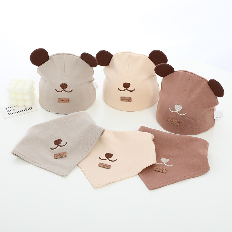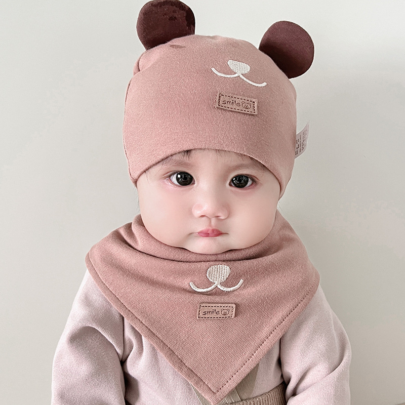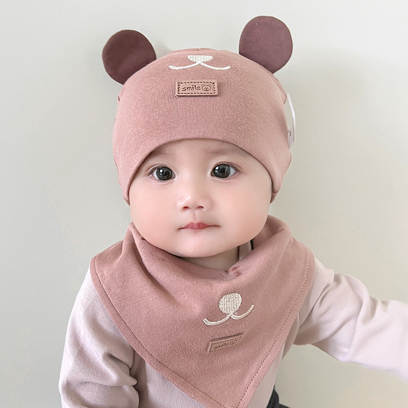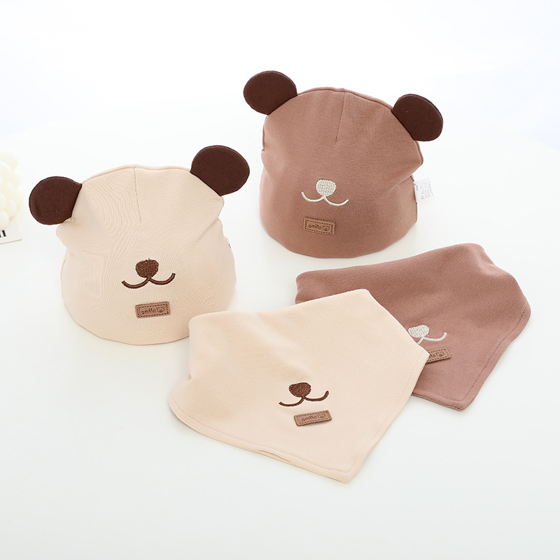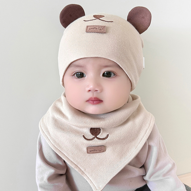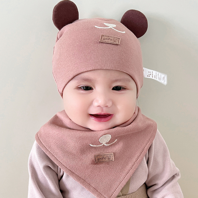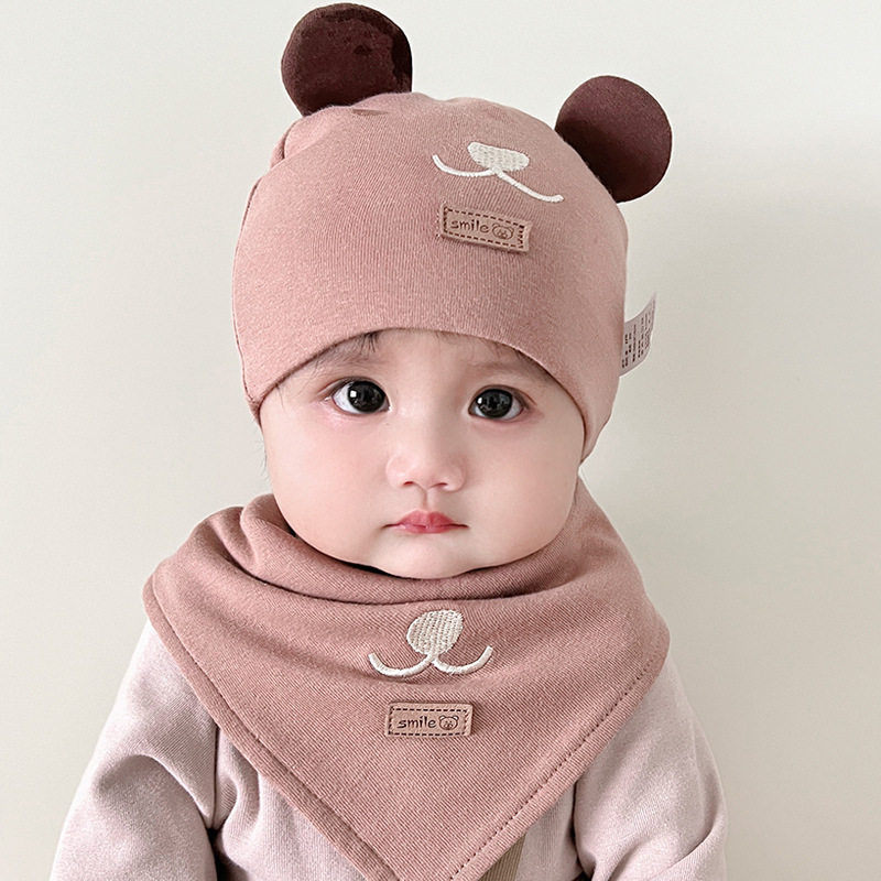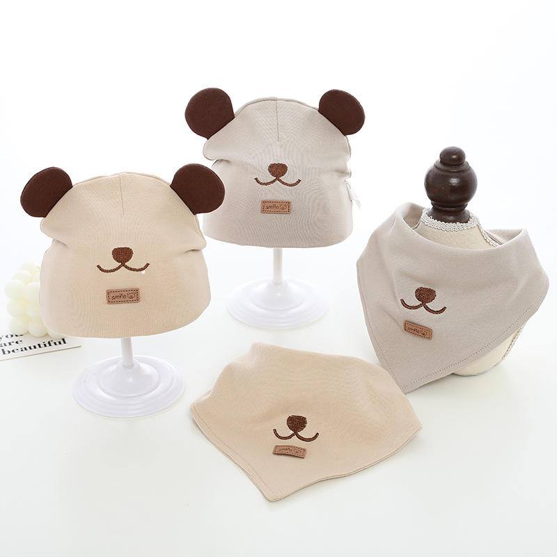 Cato Bear 2025 남성 및 여성 아기 모자 가죽 라벨 곰 신생아 태아 모자 아기 풀오버 모자 아기 모자 풀오버 모자