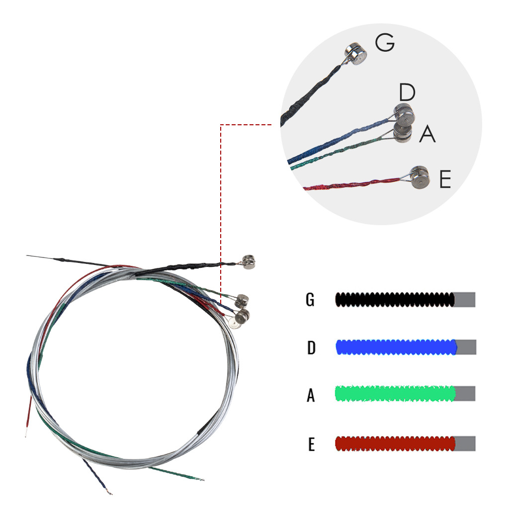 A D G弦(2th 3th 4th):钢芯,钢丝合金丝绕弦