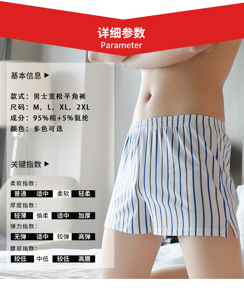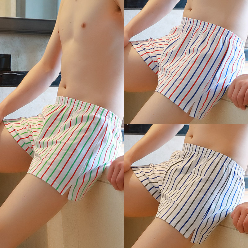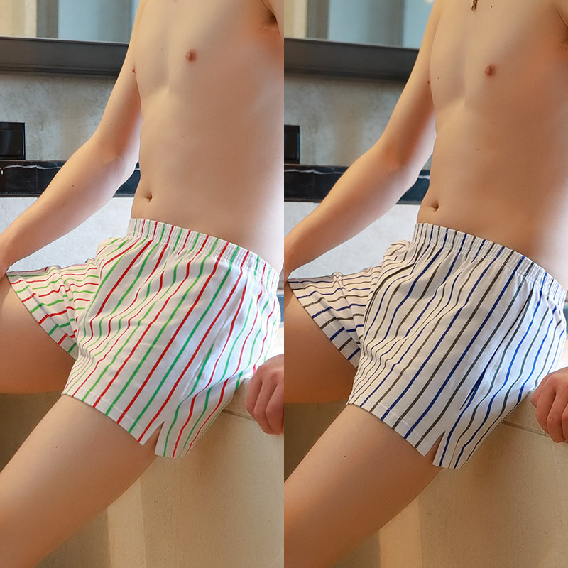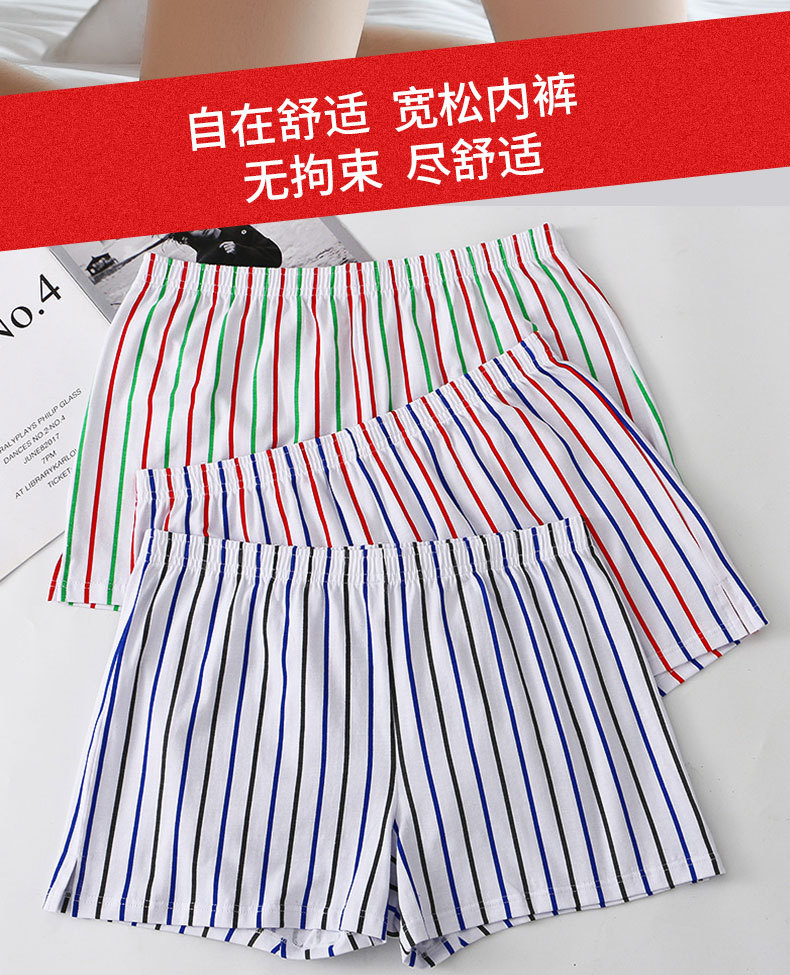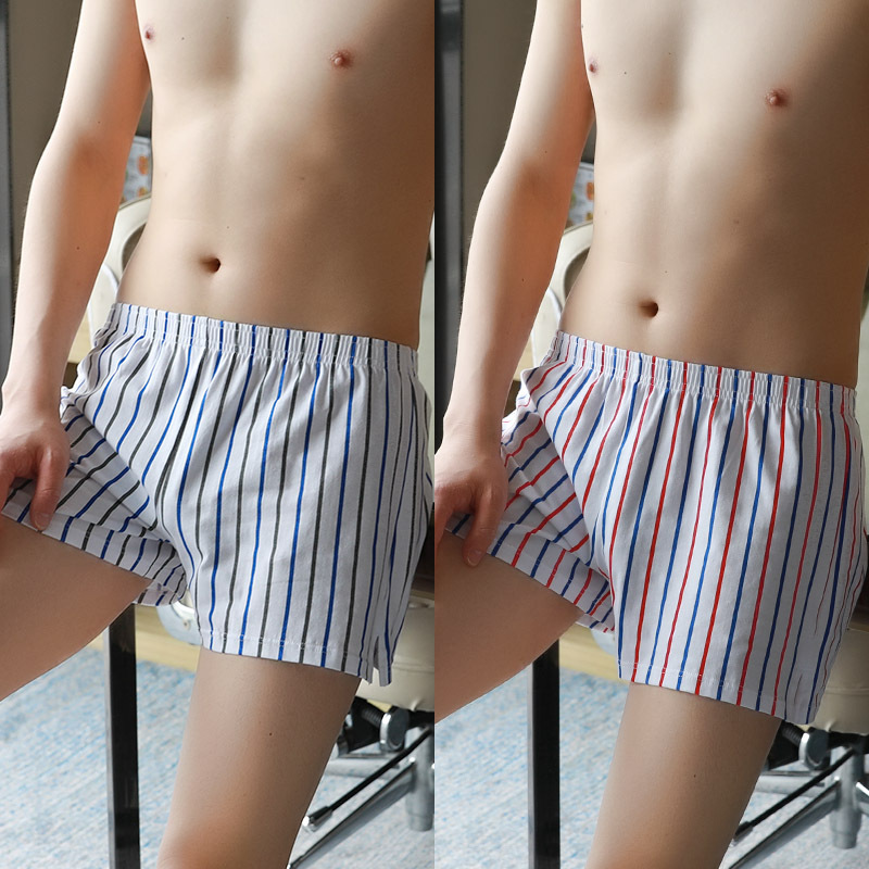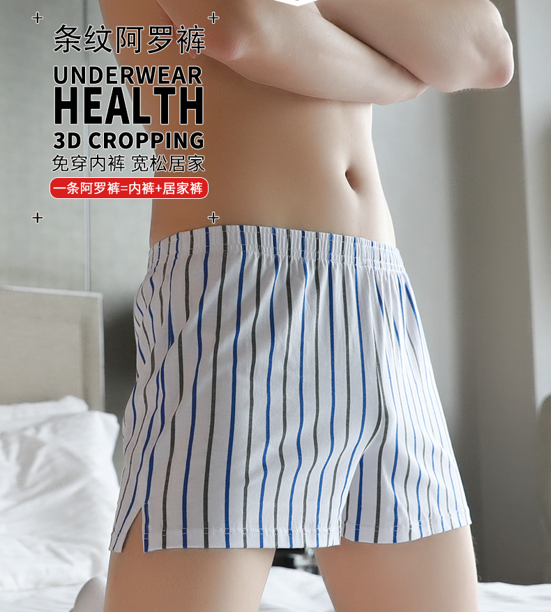 新款男士阿罗裤男款纯棉透气宽松四角内裤头青年条纹平角短裤衩