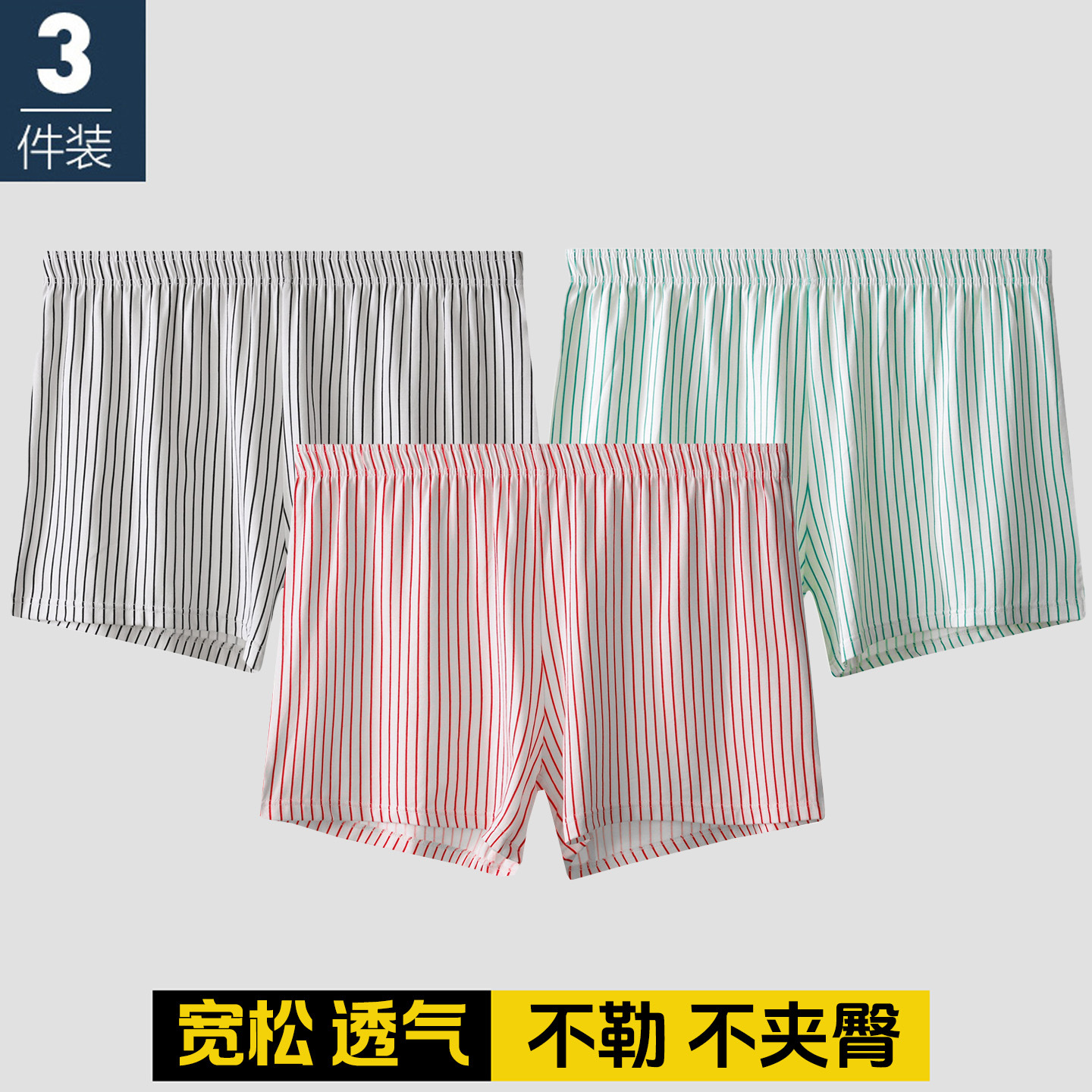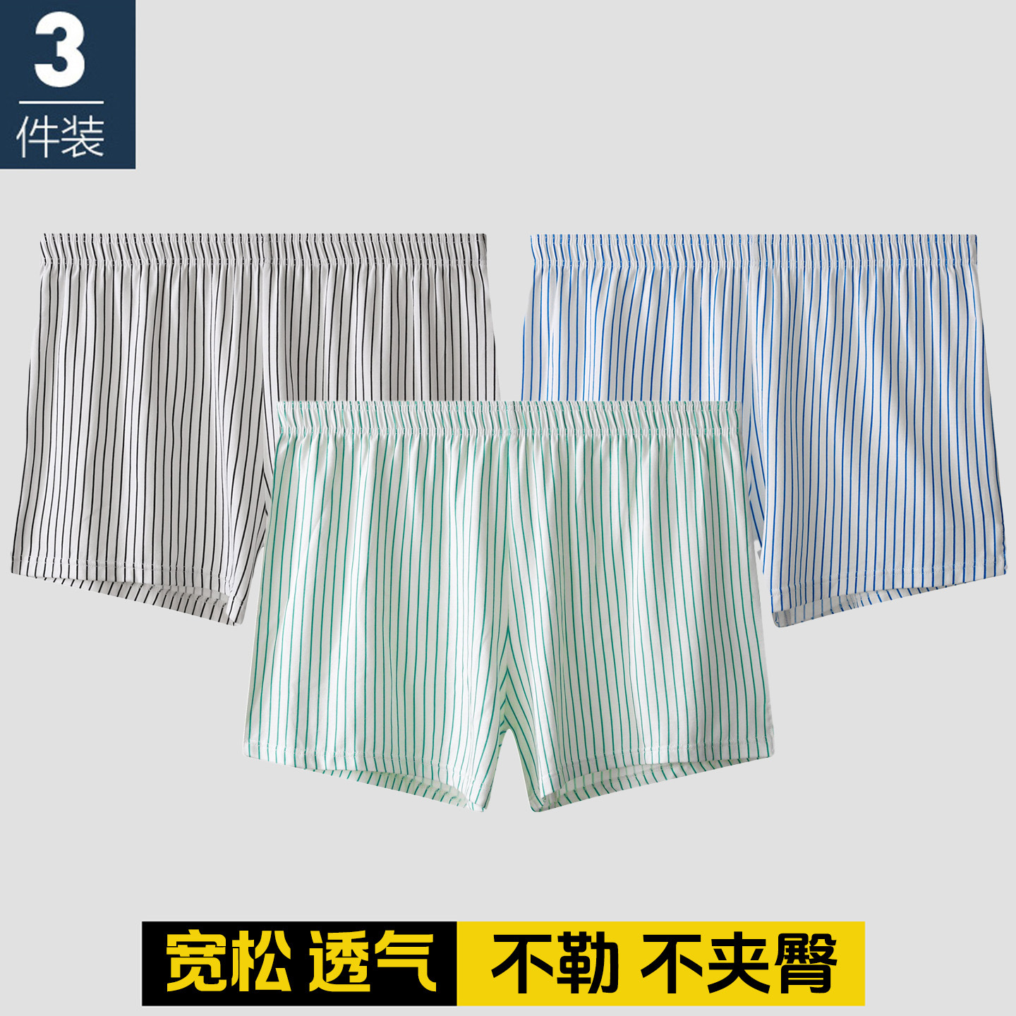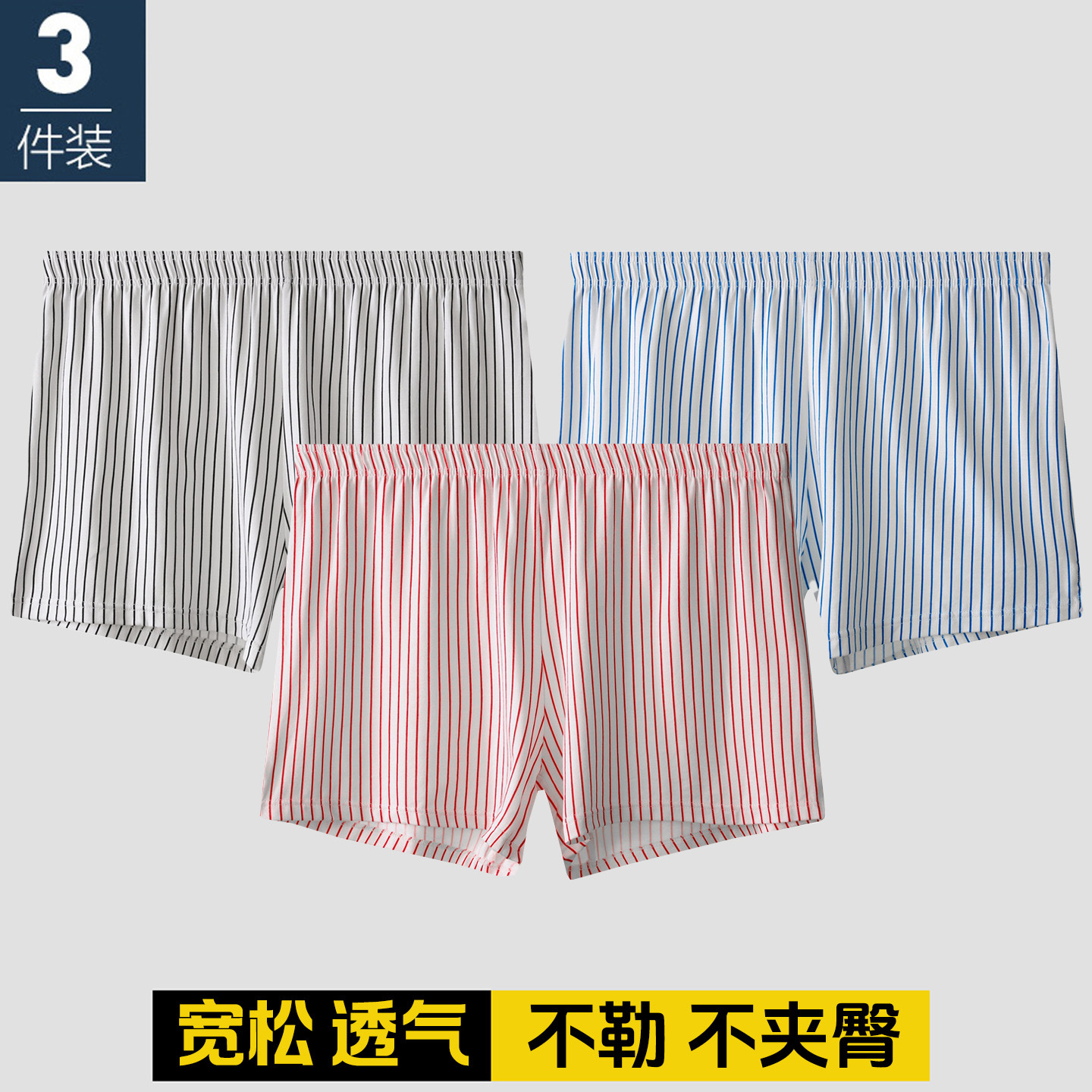 条纹内裤男士纯棉透气宽松阿罗裤男生大码运动四角休闲短裤头潮流