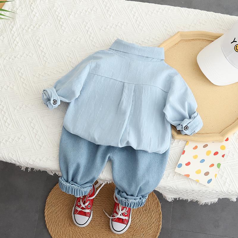 Doby 아동복 2022 가을 새 소년 셔츠 긴팔 세트 소년 캐주얼 데님 바지 투피스 세트스토어 가기