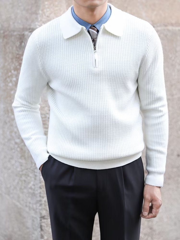 캐주얼 2023 스웨터 남자의 가을과 겨울 모든 경기 레트로 비즈니스 라펠베이스 스웨터 단색 슬림핏 지퍼 스웨터스토어 가기