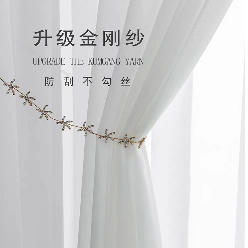 안티 후크 실크 킹 콩 원사 커튼 라이트 투명 반투명 빛 럭셔리 화이트 원사 커튼 베이 창 발코니 스크래치 방지 완성 된 창 스크린