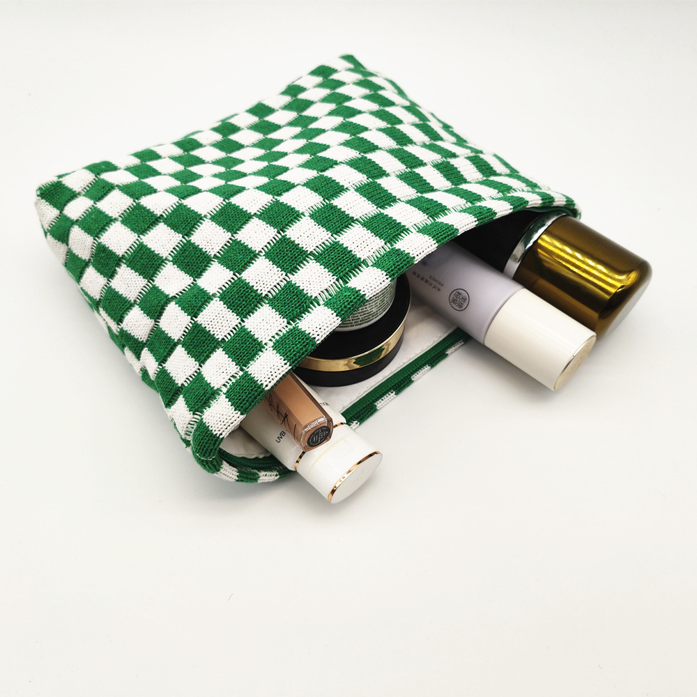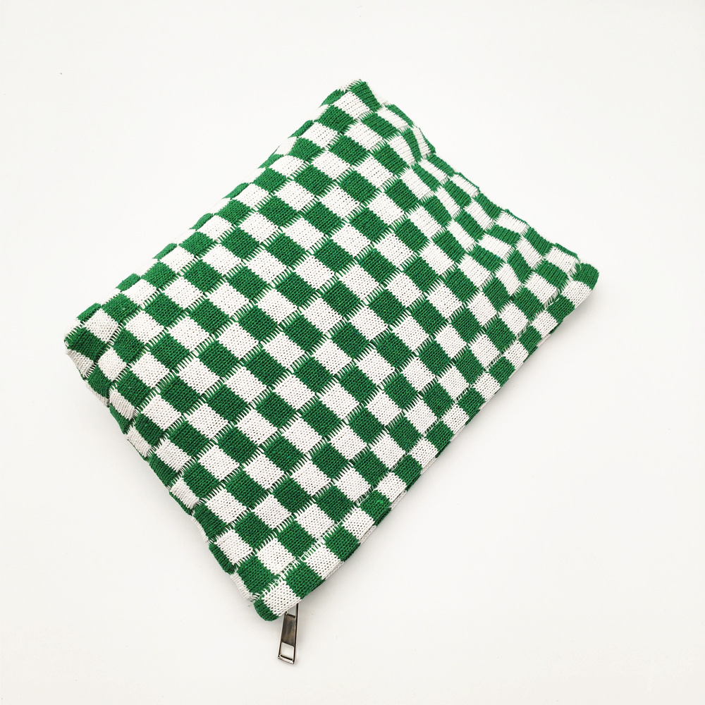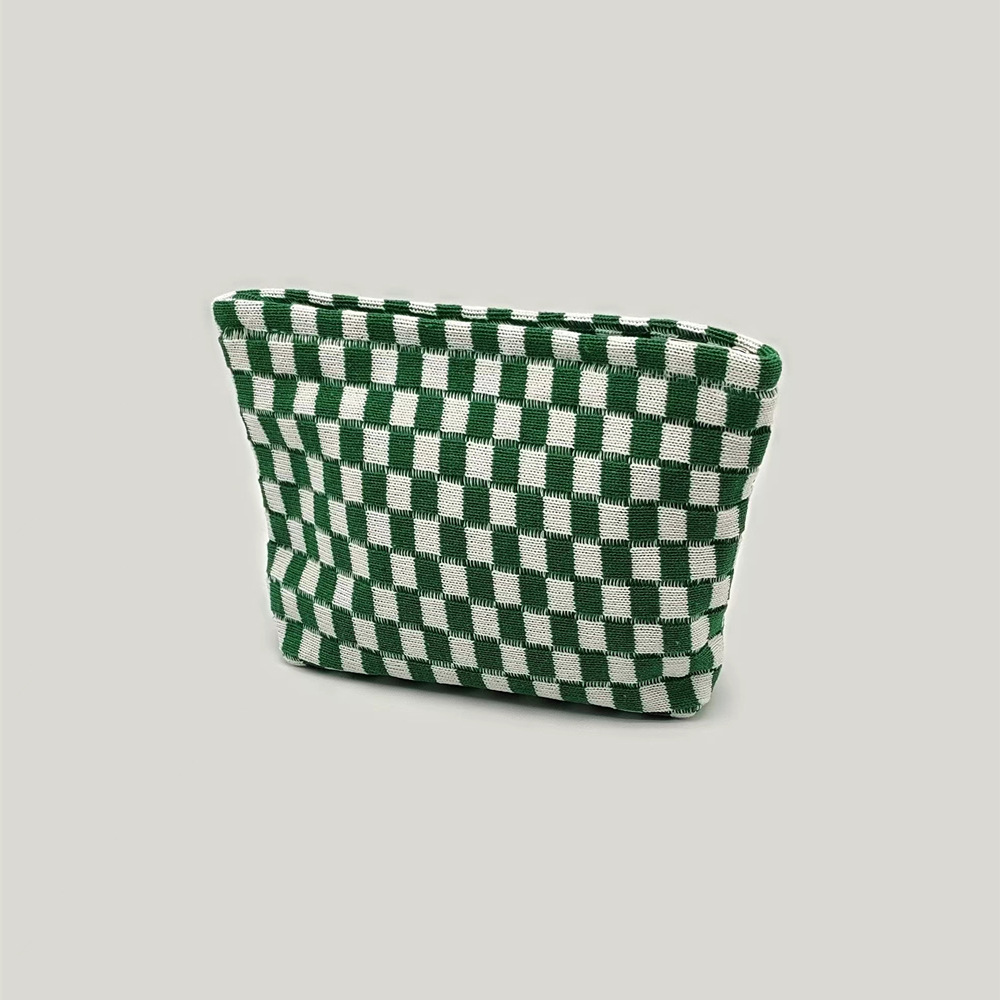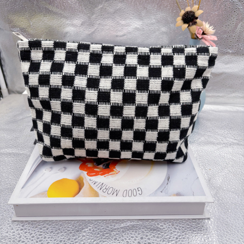 대형 울 바둑판 화장품 가방 대용량 필통 니트 보관 가방 격자 무늬 세면도구 가방 휴대용 크로스 보더스토어 가기