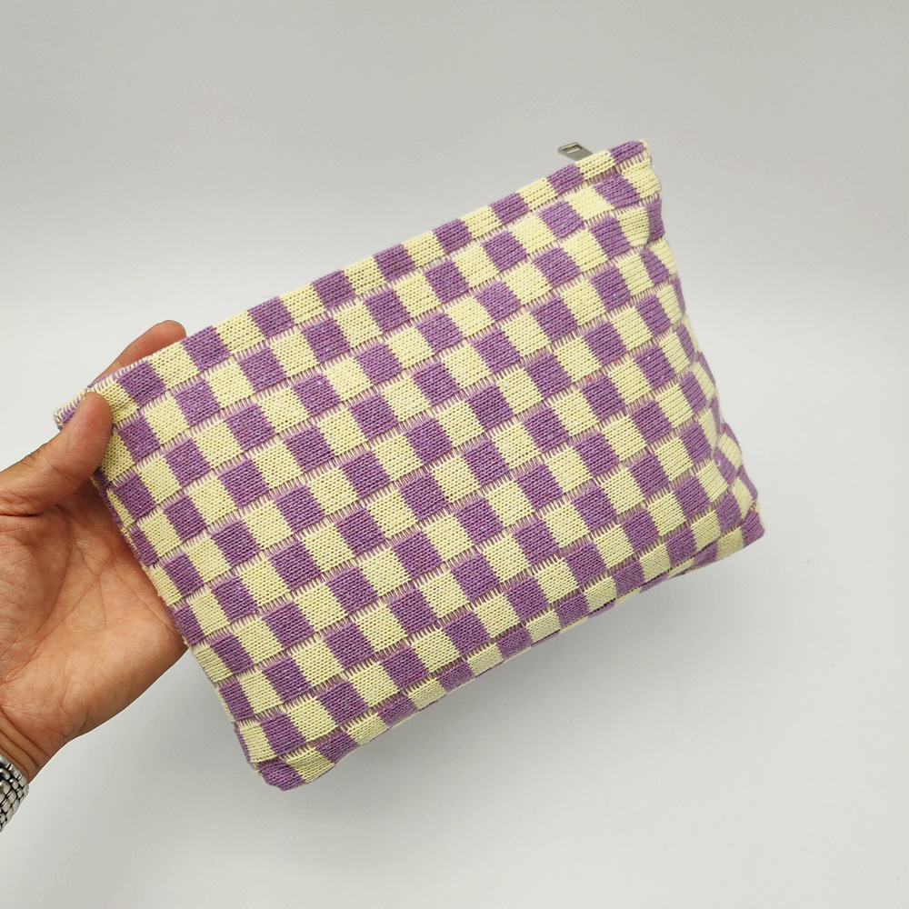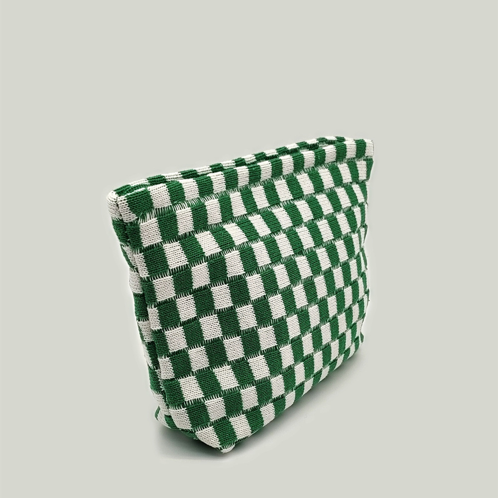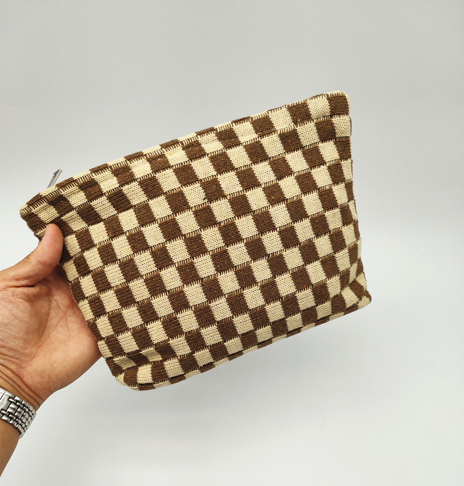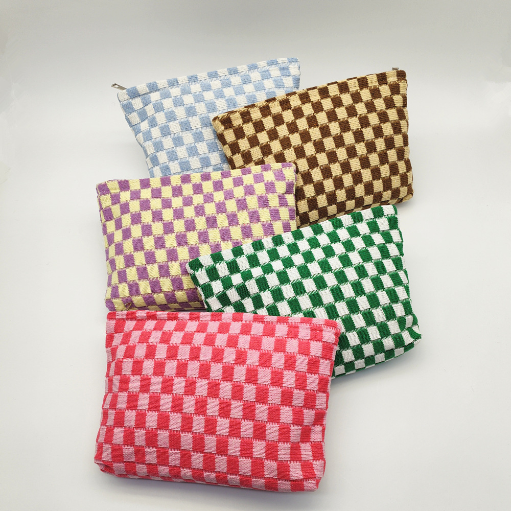 대형 울 바둑판 화장품 가방 대용량 필통 니트 보관 가방 격자 무늬 세면도구 가방 휴대용 크로스 보더스토어 가기