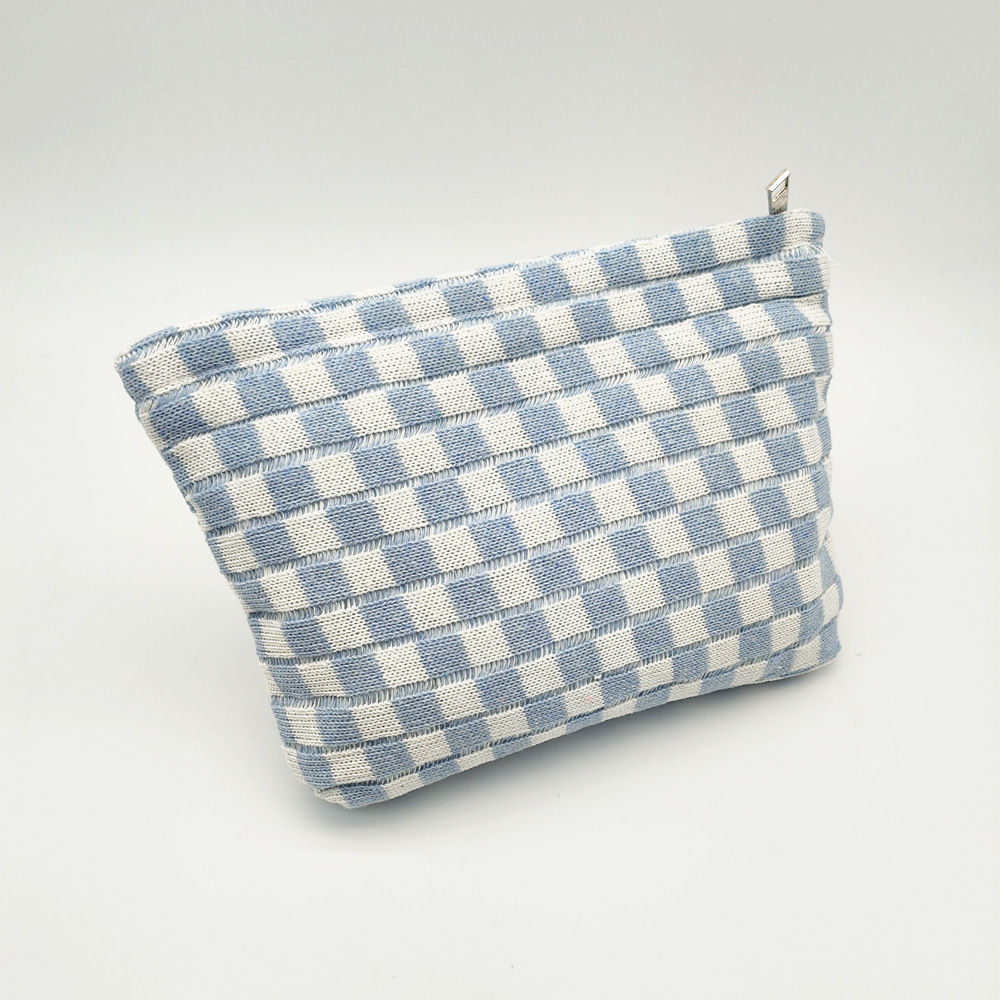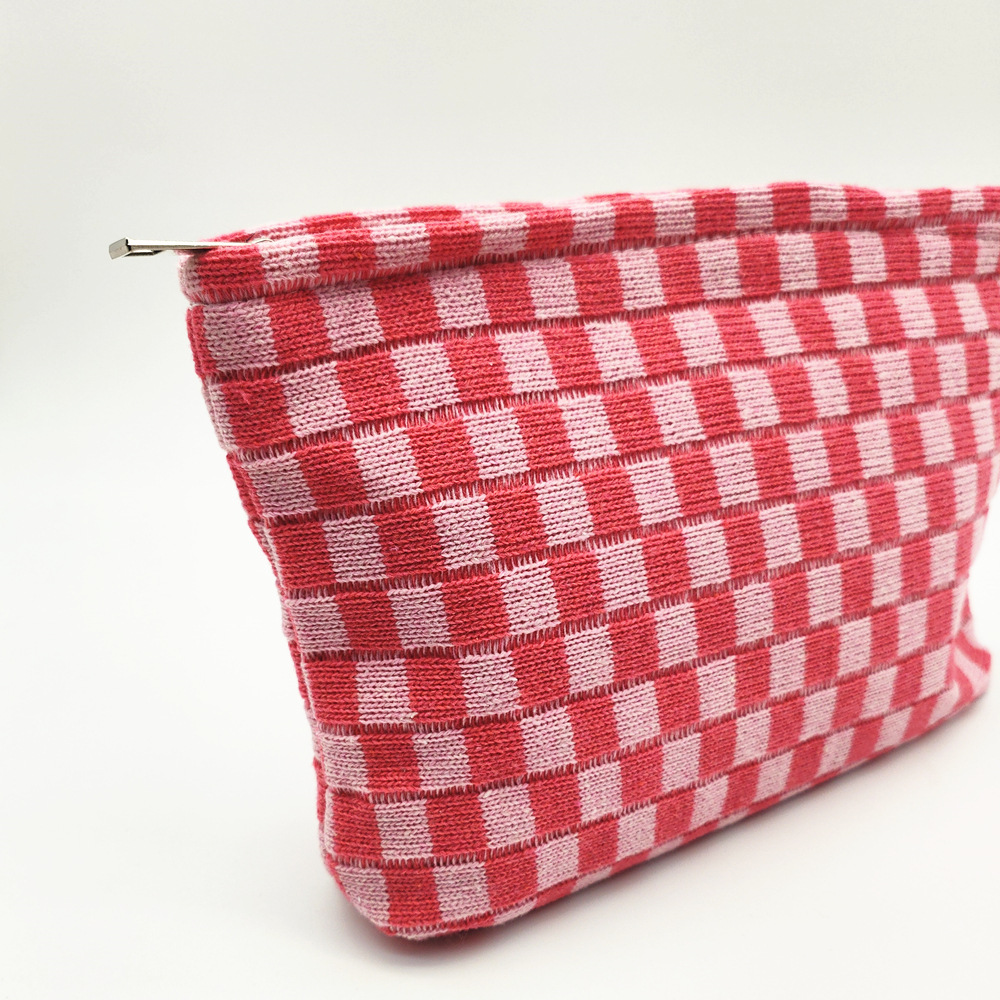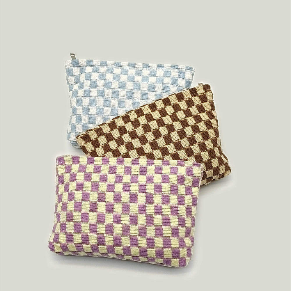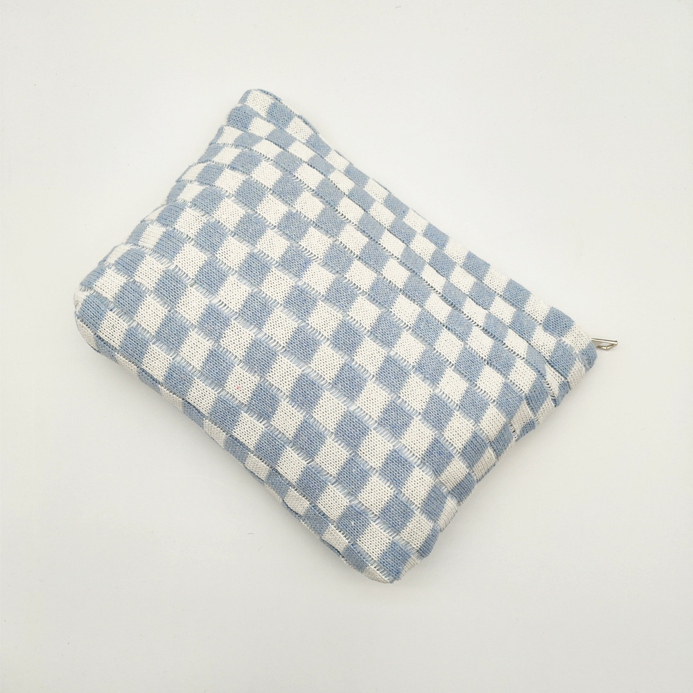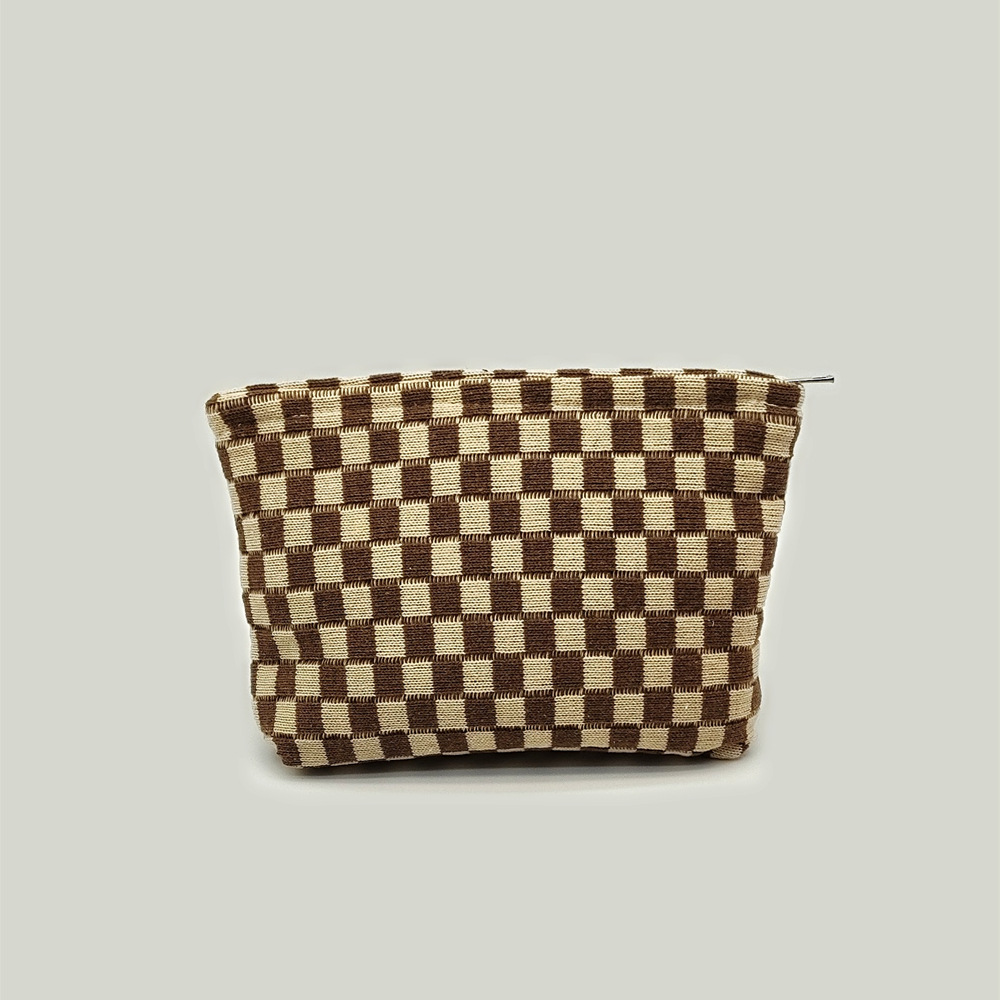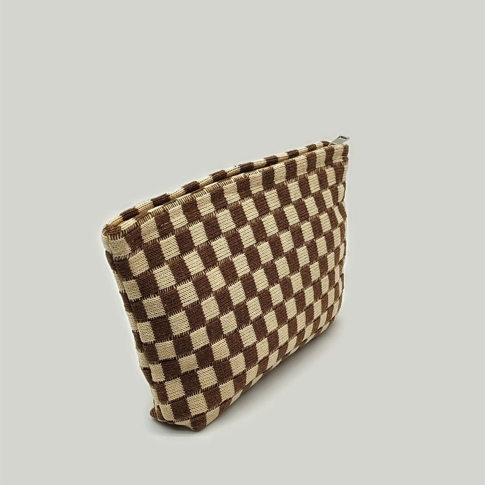 대형 울 바둑판 화장품 가방 대용량 필통 니트 보관 가방 격자 무늬 세면도구 가방 휴대용 크로스 보더