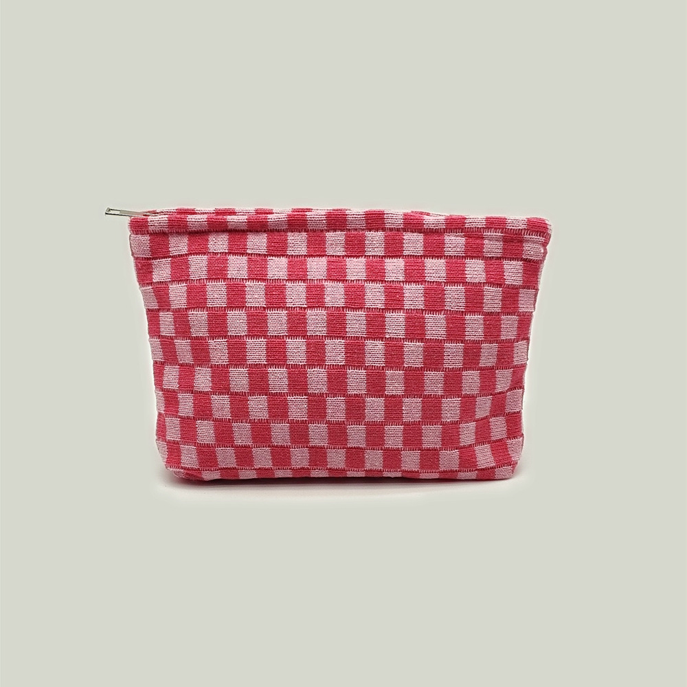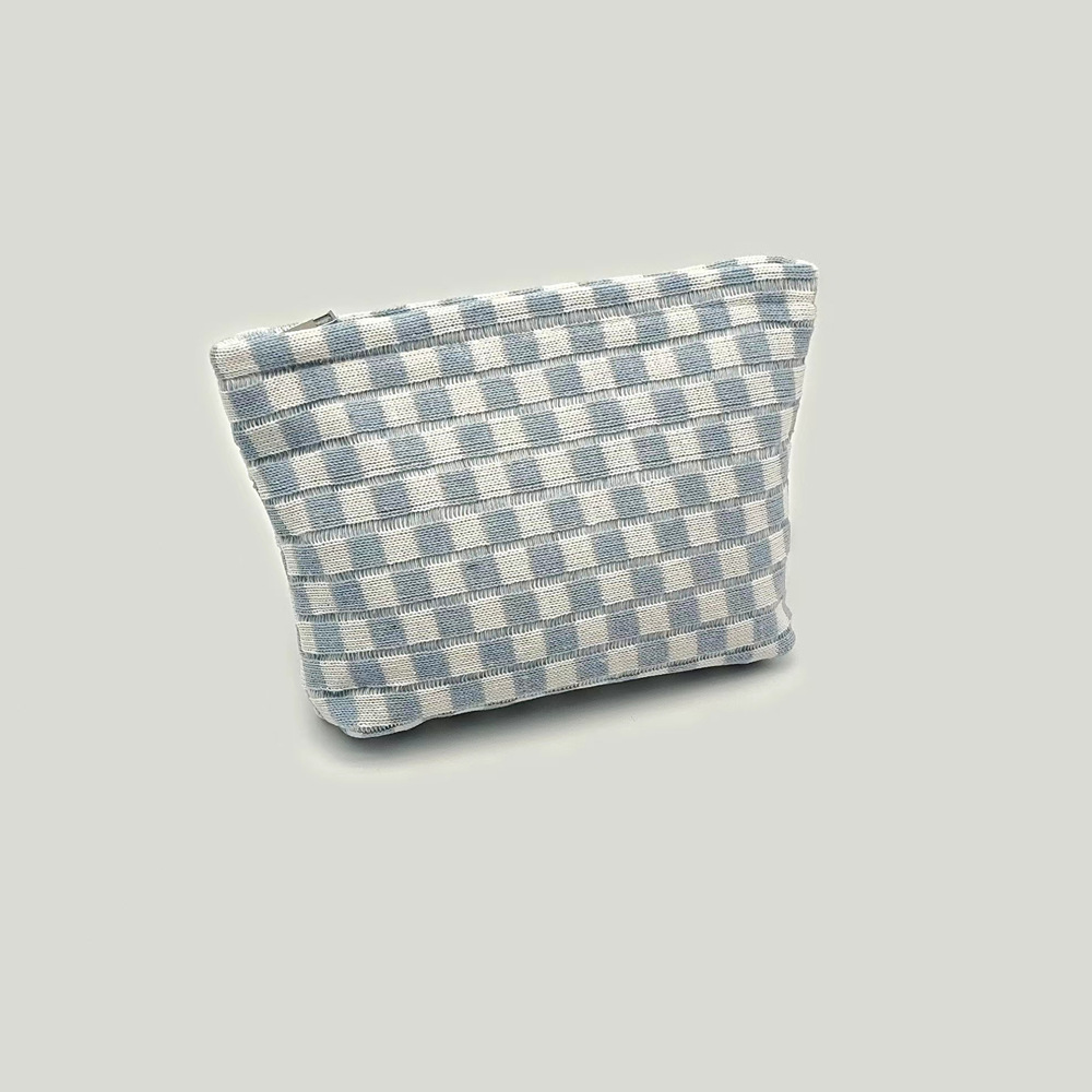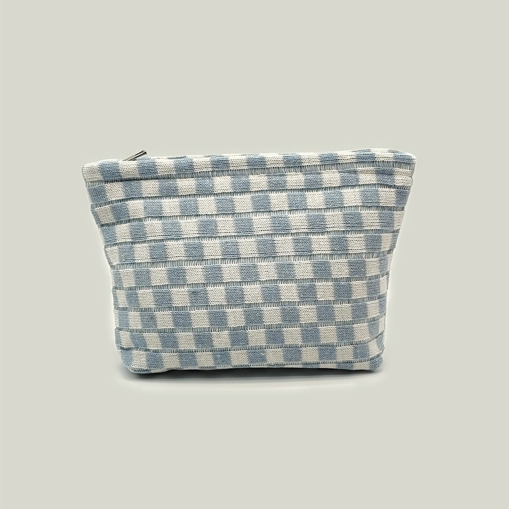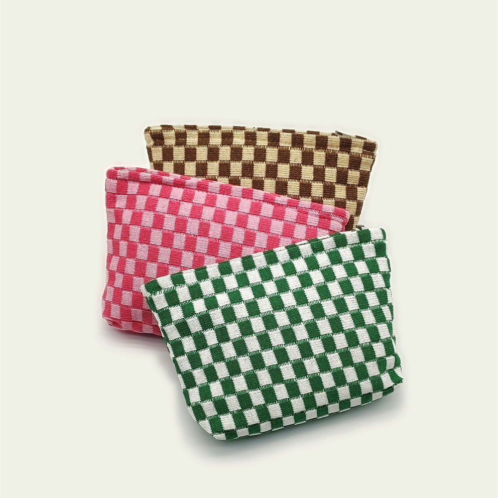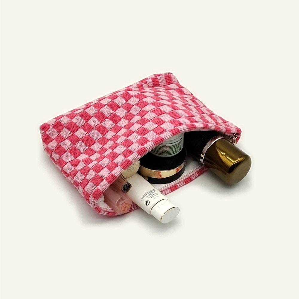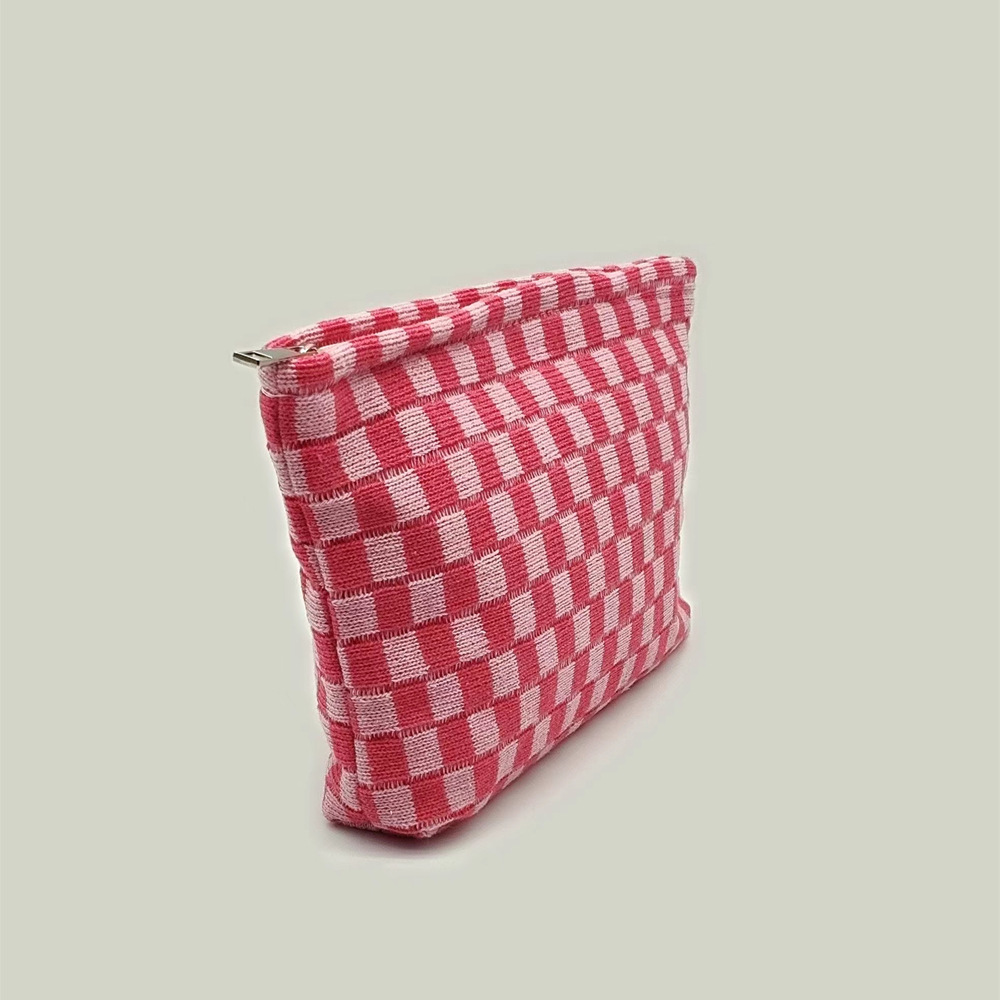 대형 울 바둑판 화장품 가방 대용량 필통 니트 보관 가방 격자 무늬 세면도구 가방 휴대용 크로스 보더